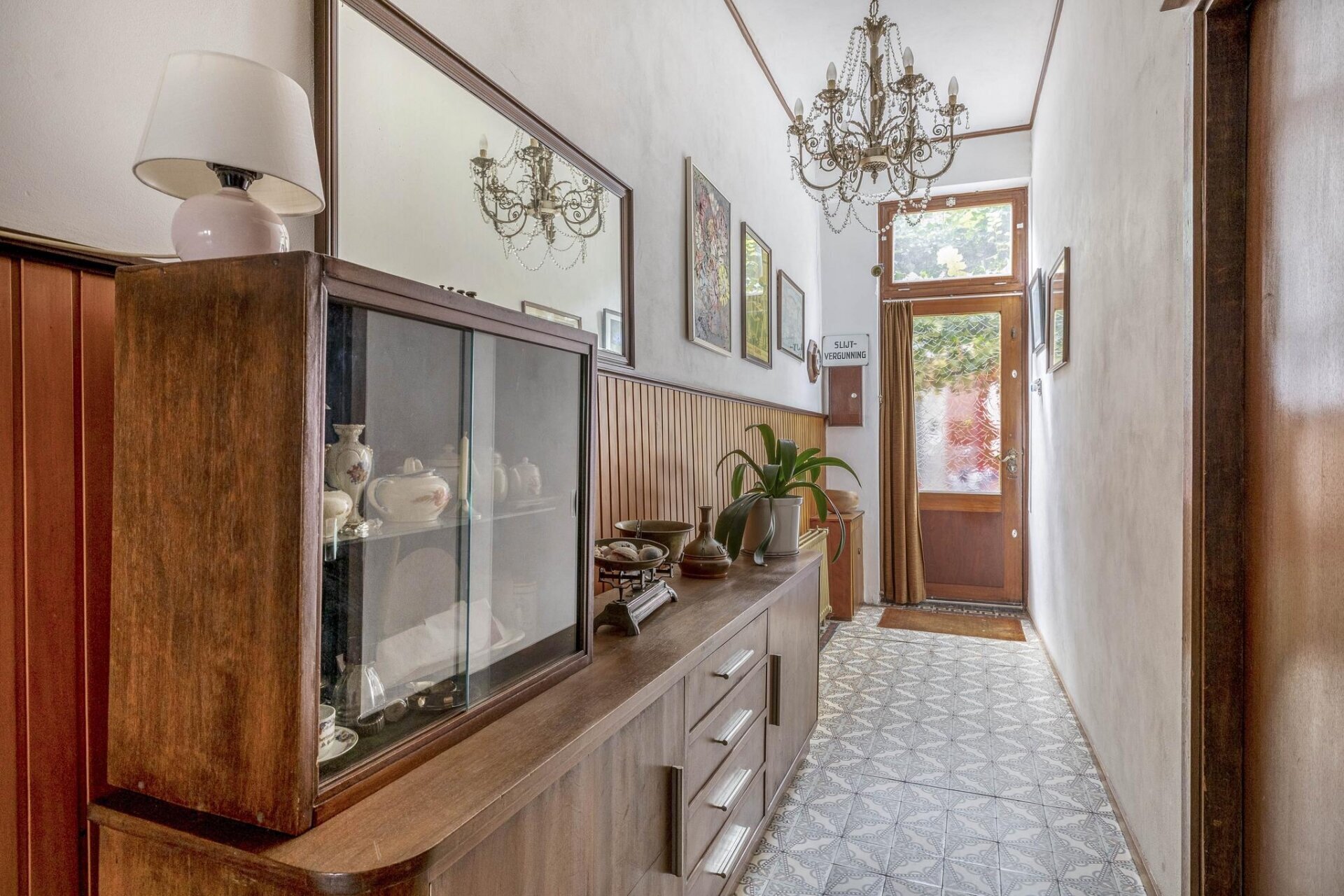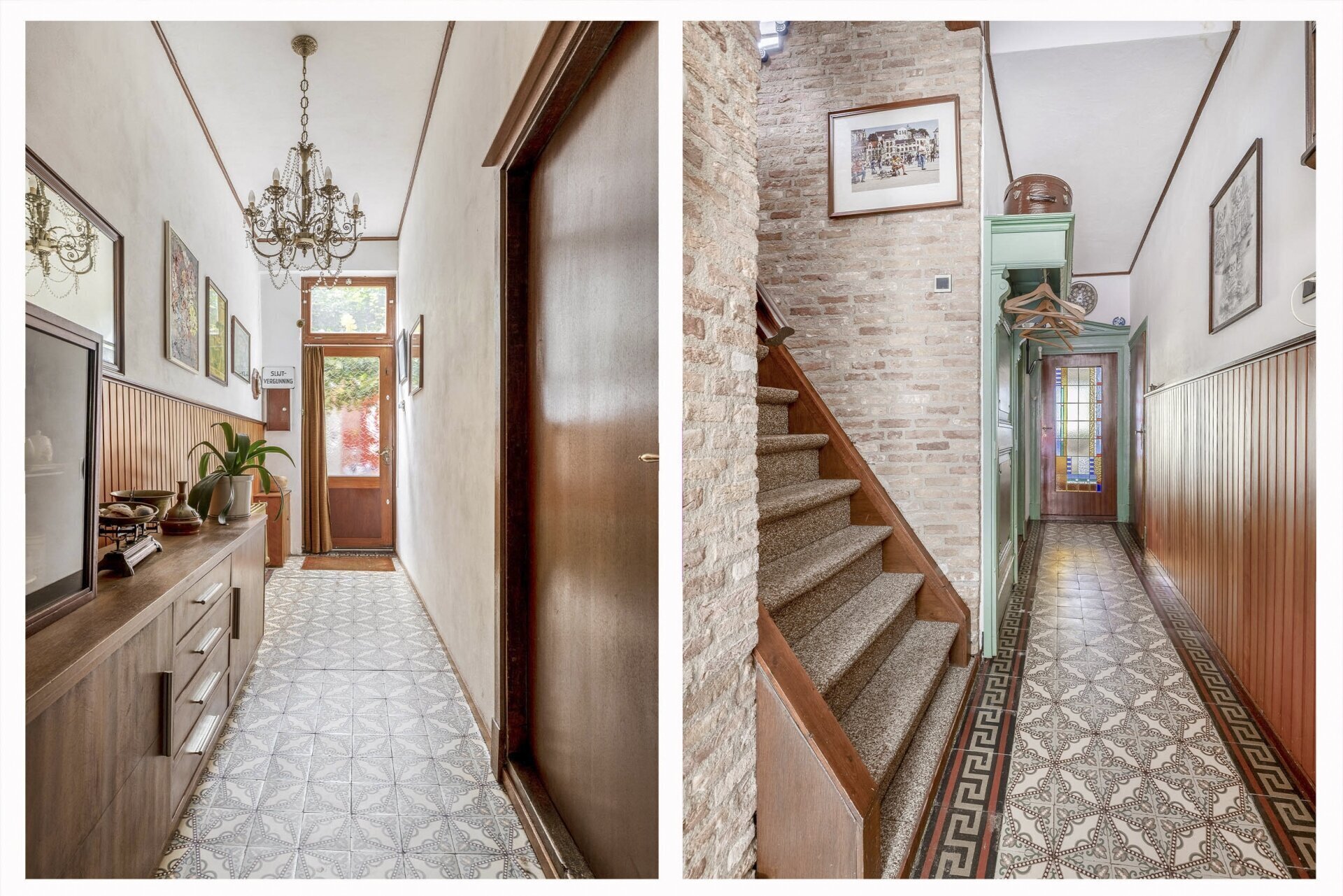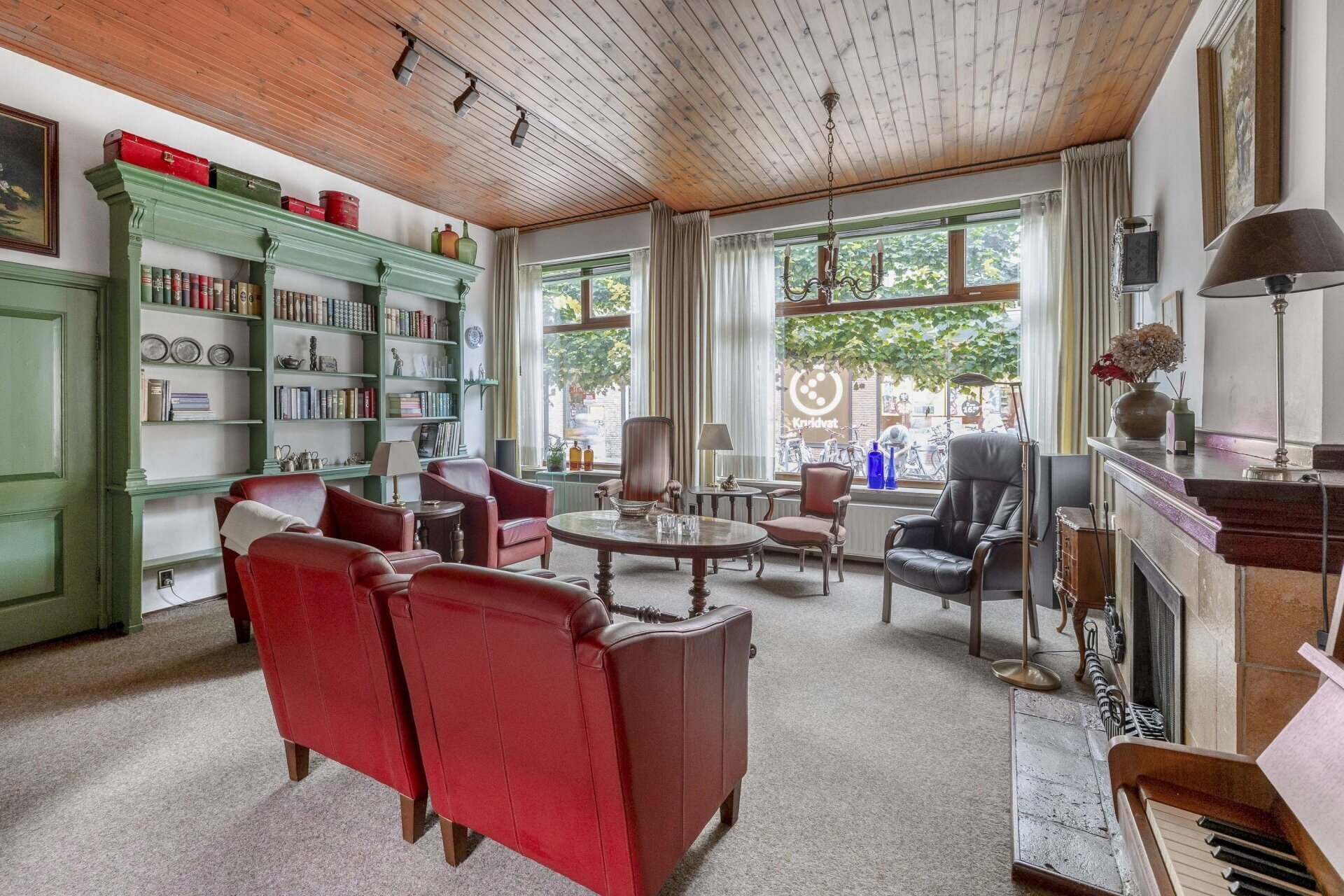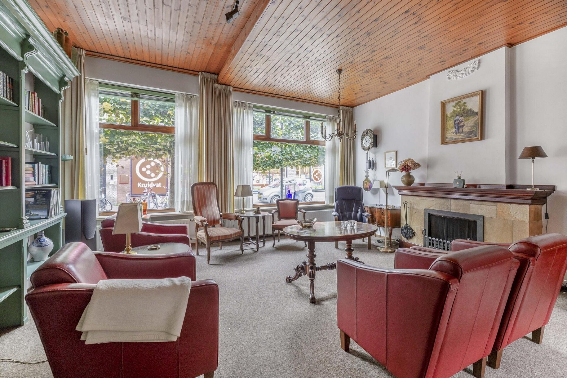 Via de charmante en karaktervolle hal van ruim negen meter lang stap je binnen in een huis dat direct indruk maakt. Aan de voorzijde ligt de sfeervolle woonkamer, voorzien van grote raampartijen die zorgen voor veel daglicht, authentieke vaste kasten en een klassieke open haard. De sfeer is warm en uitnodigend, precies wat je mag verwachten van een pand met zo’n rijke geschiedenis.