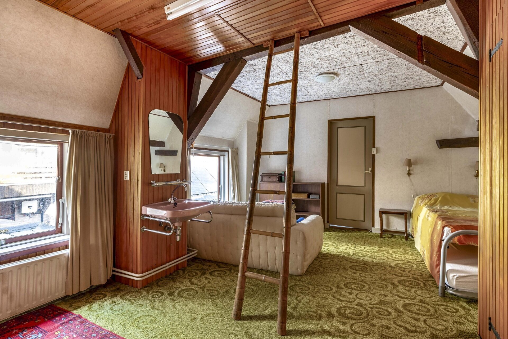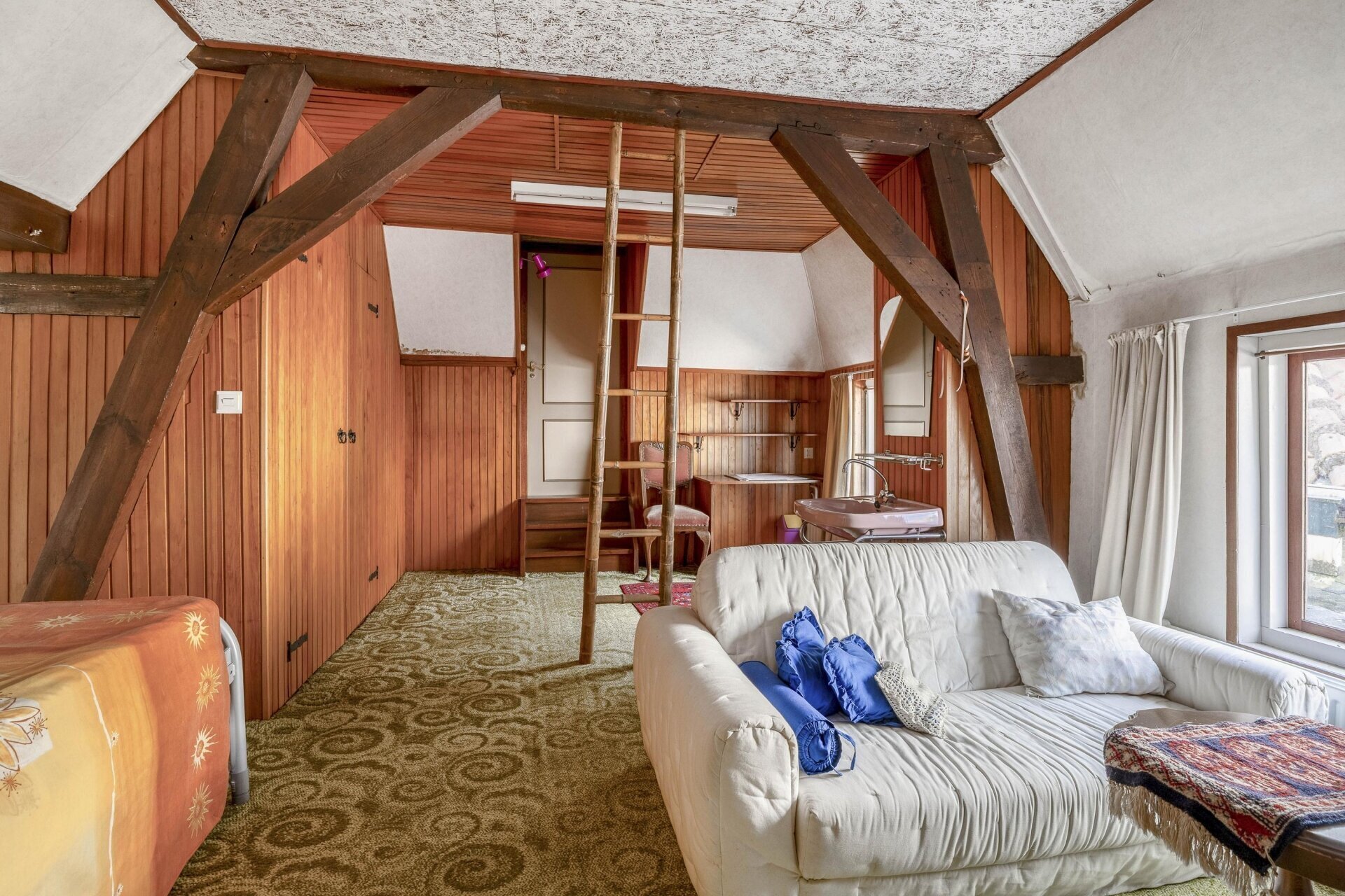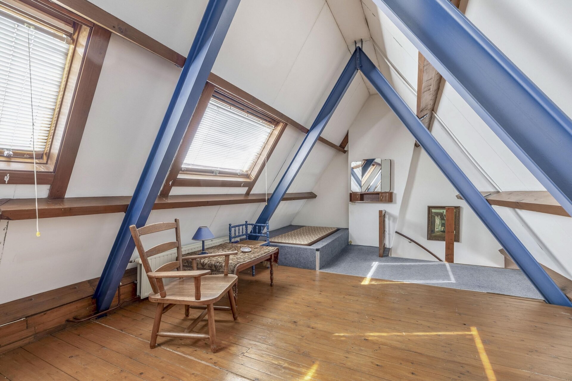De tweede verdieping is ingericht als open zolderruimte met dakramen en een gezellige slaapkamer.