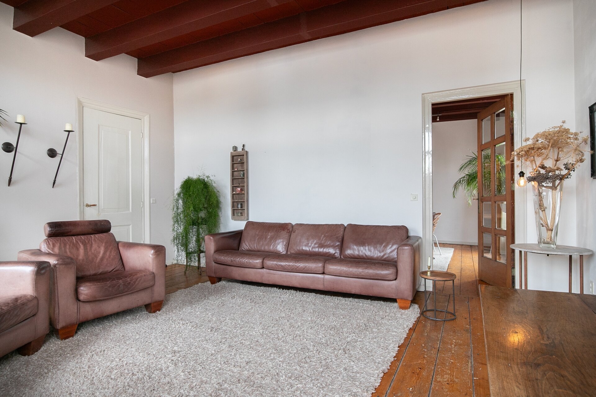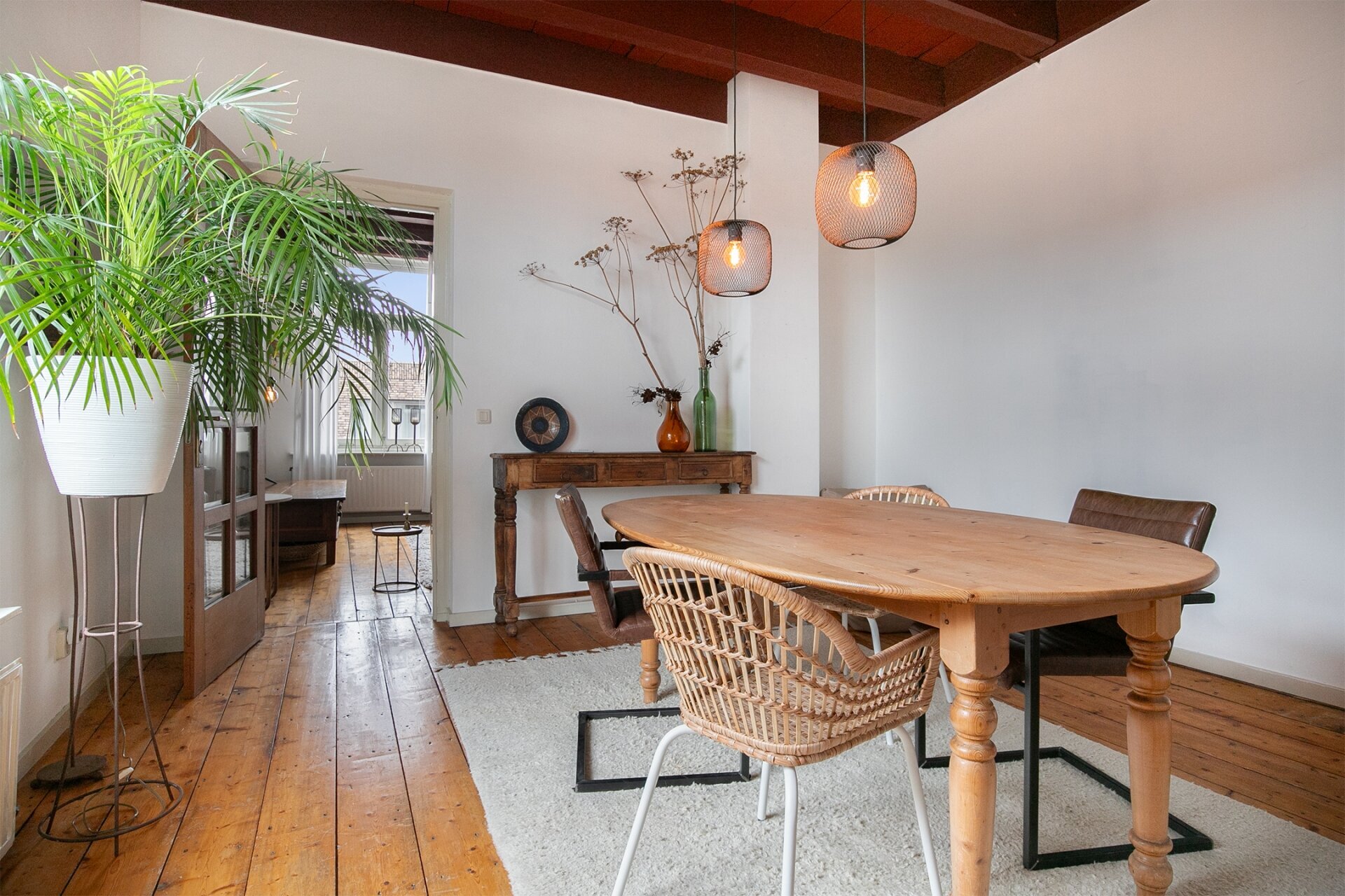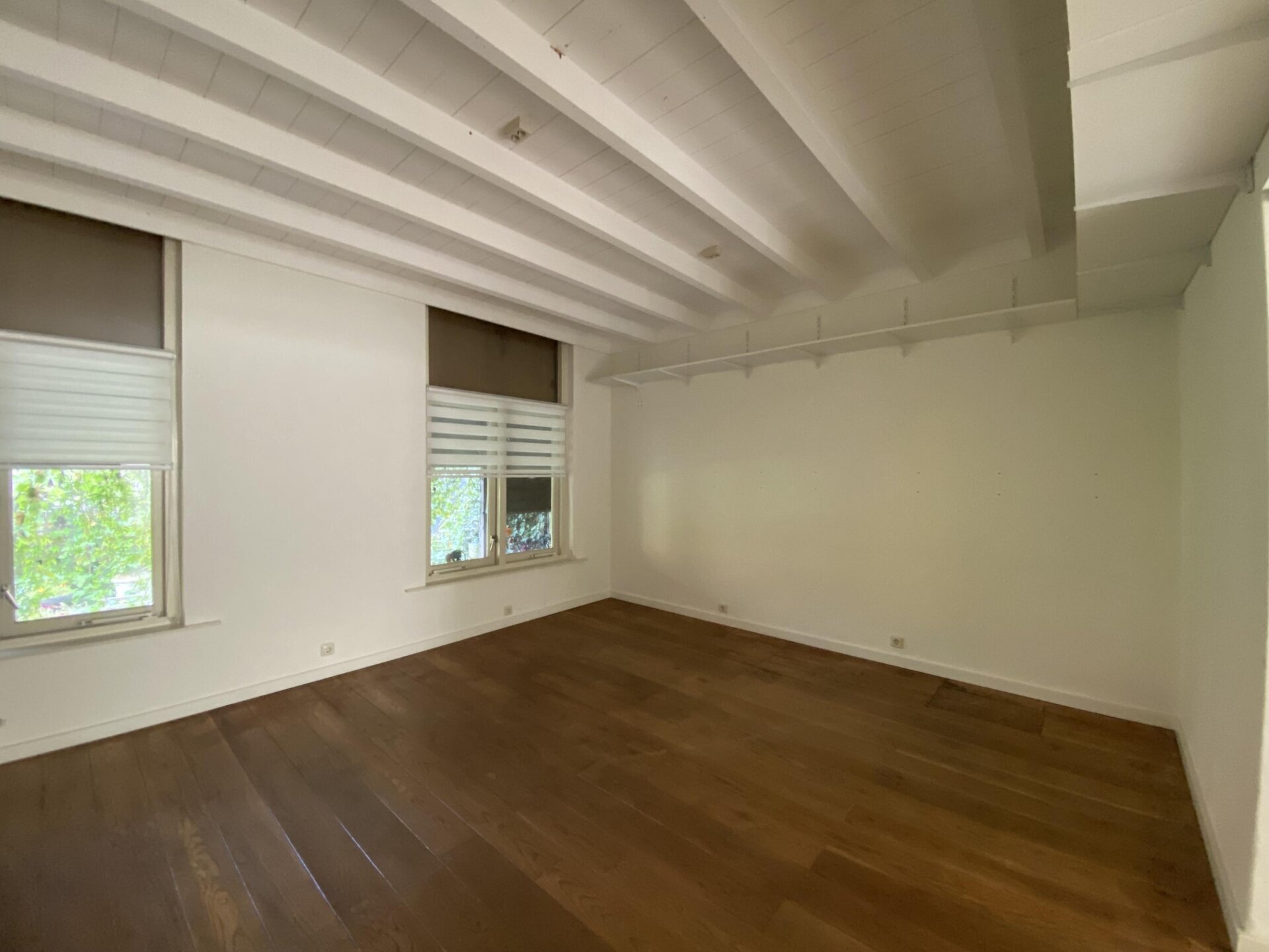 Aan de voorzijde van de woning bevindt zich een eerste slaapkamer, die kan dienen als studeerkamer of babykamer. Direct daarnaast ligt de ruime woonkamer, voorzien van een prachtige houten vloer en veel natuurlijk licht door de hoge ramen aan de voorkant. Vanuit de woonkamer heeft u toegang tot een aparte eetkamer.