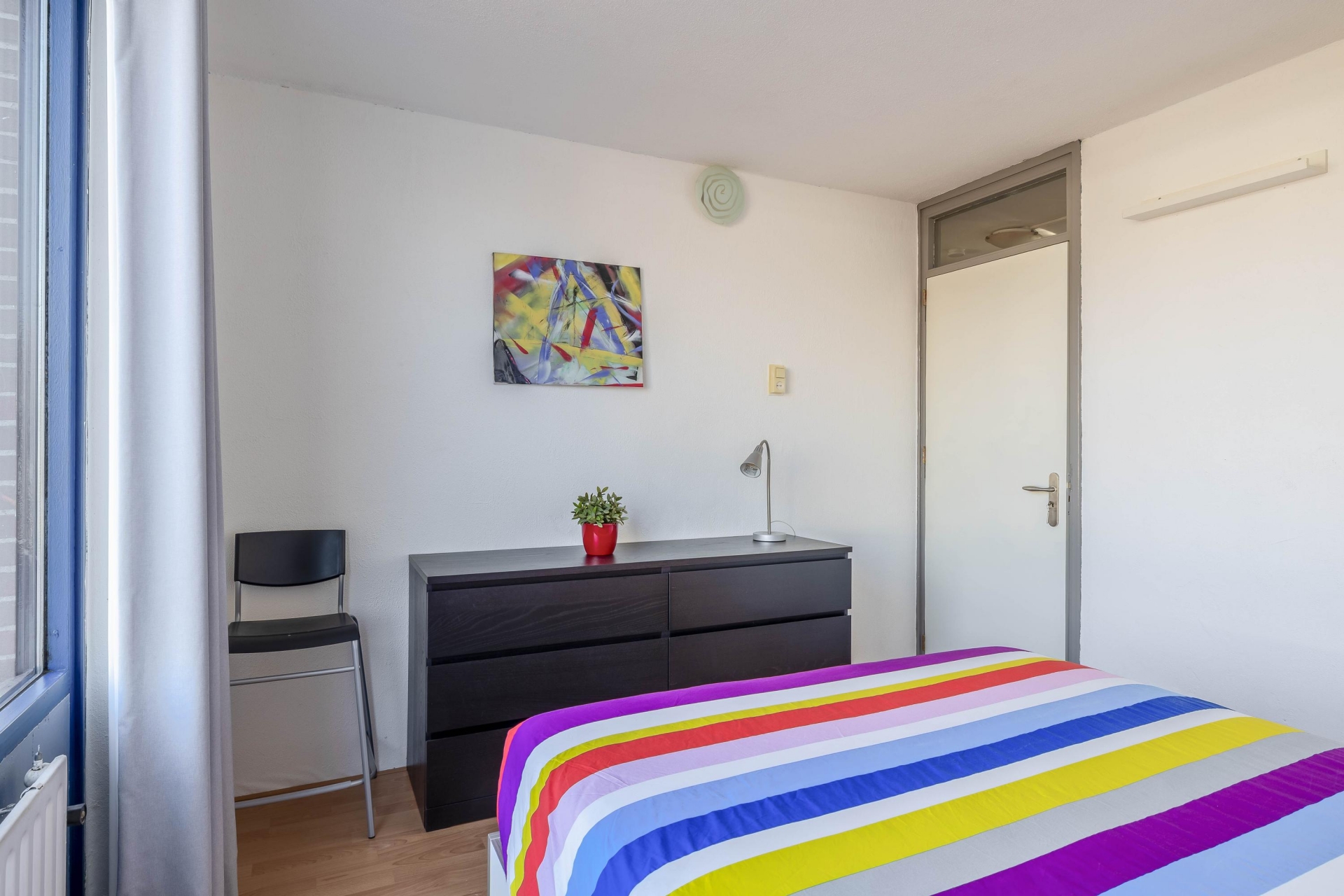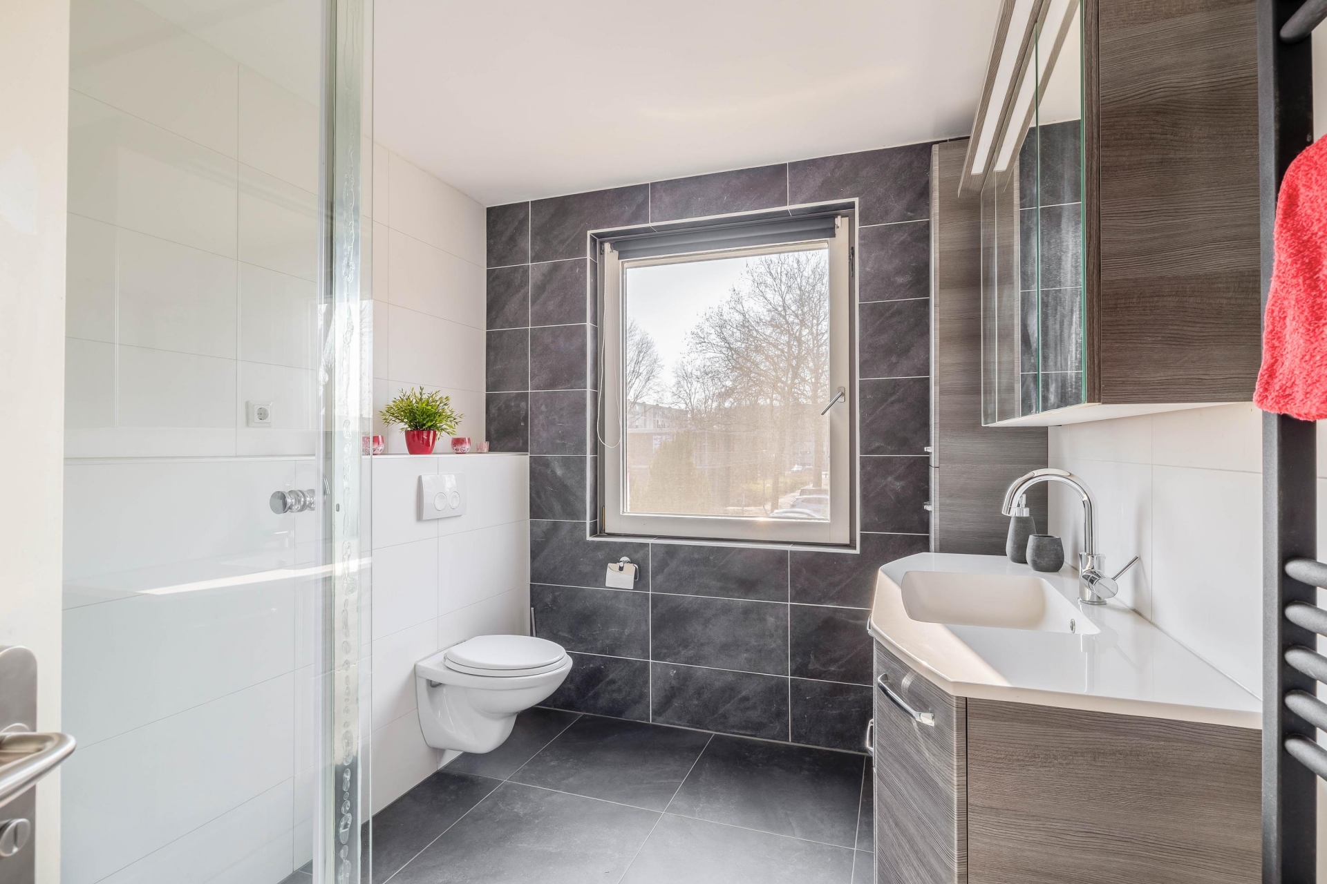 nog twee extra slaapkamers die bijvoorbeeld gebruikt kunnen worden als kinderkamer, logeerkamer of thuiskantoor. De badkamer is in 2018 vernieuwd en heeft een nette en moderne uitstraling. De ruimte is voorzien van een douche, wastafelmeubel en een toilet. Dankzij het aanwezige raam kan de badkamer goed worden geventileerd en komt er