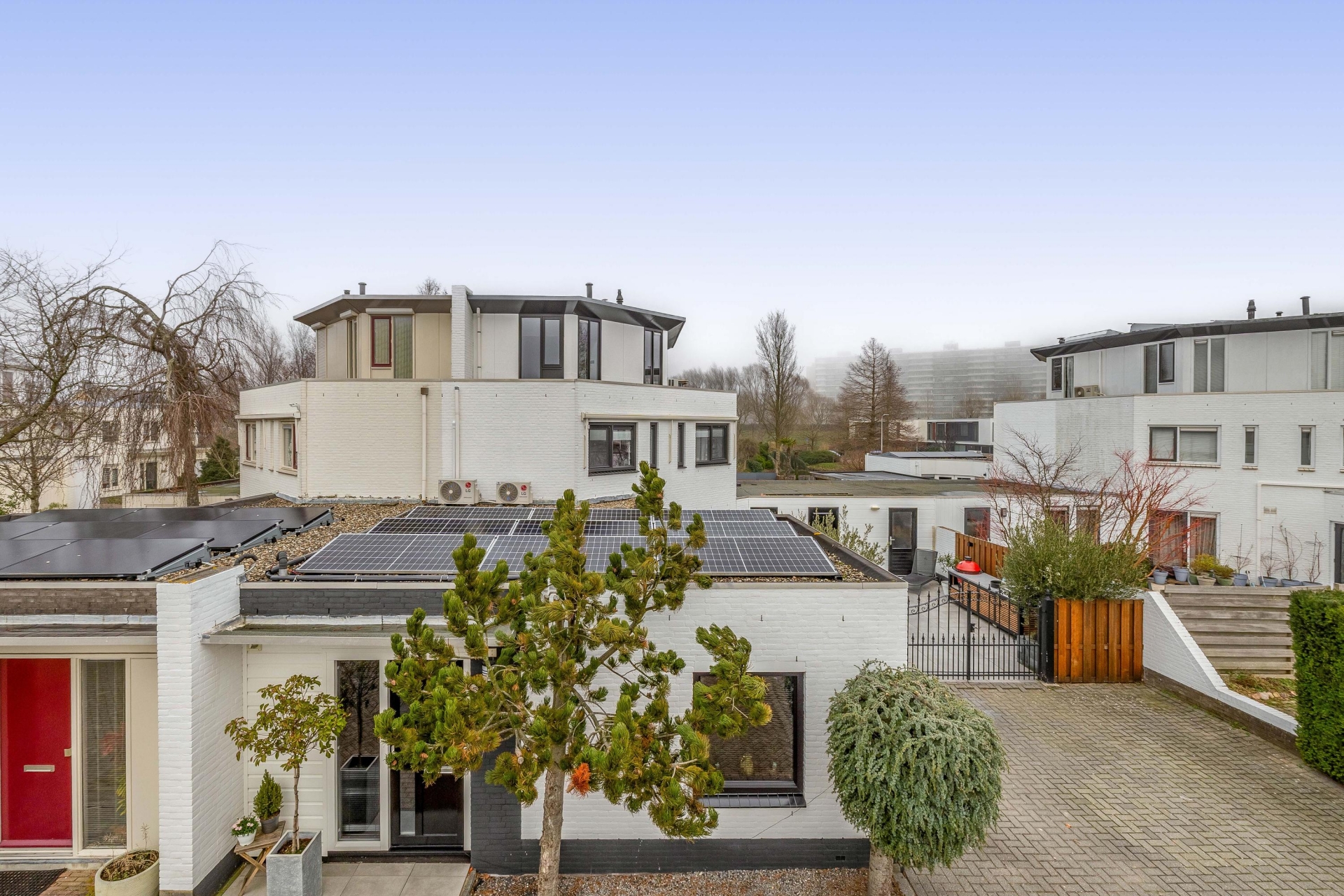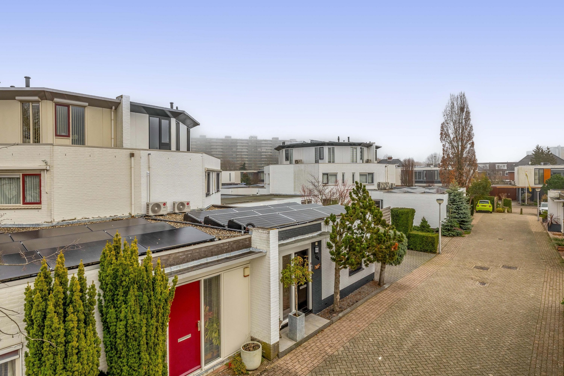 - Er liggen 14 zonnepanelen op het platte dak (2022);