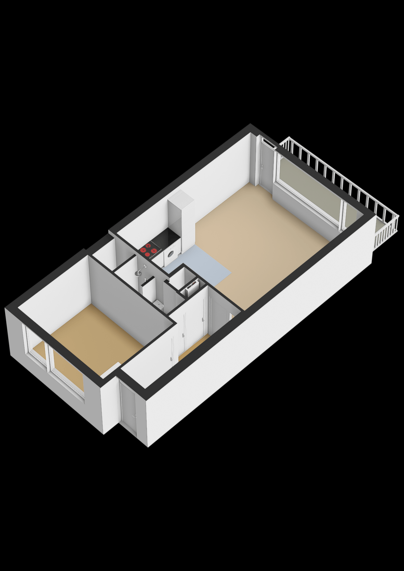 Met de lift bereikt u de 3e verdieping. Binnen is er een lichte woonkamer te vinden met een open keuken. De keuken is voorzien van diverse inbouwapparatuur. Het balkon is gelegen aan de achterzijde en is zonnige gesitueerd, namelijk het zuidwesten. Liever een plek in de schaduw? Dat kan middels het elektrische zonnescherm. Aan de voorzijde van het complex is de slaapkamer te vinden met een vaste kast. Centraal is de badkamer te vinden, deze beschikt over een douche, toilet en een wastafel.