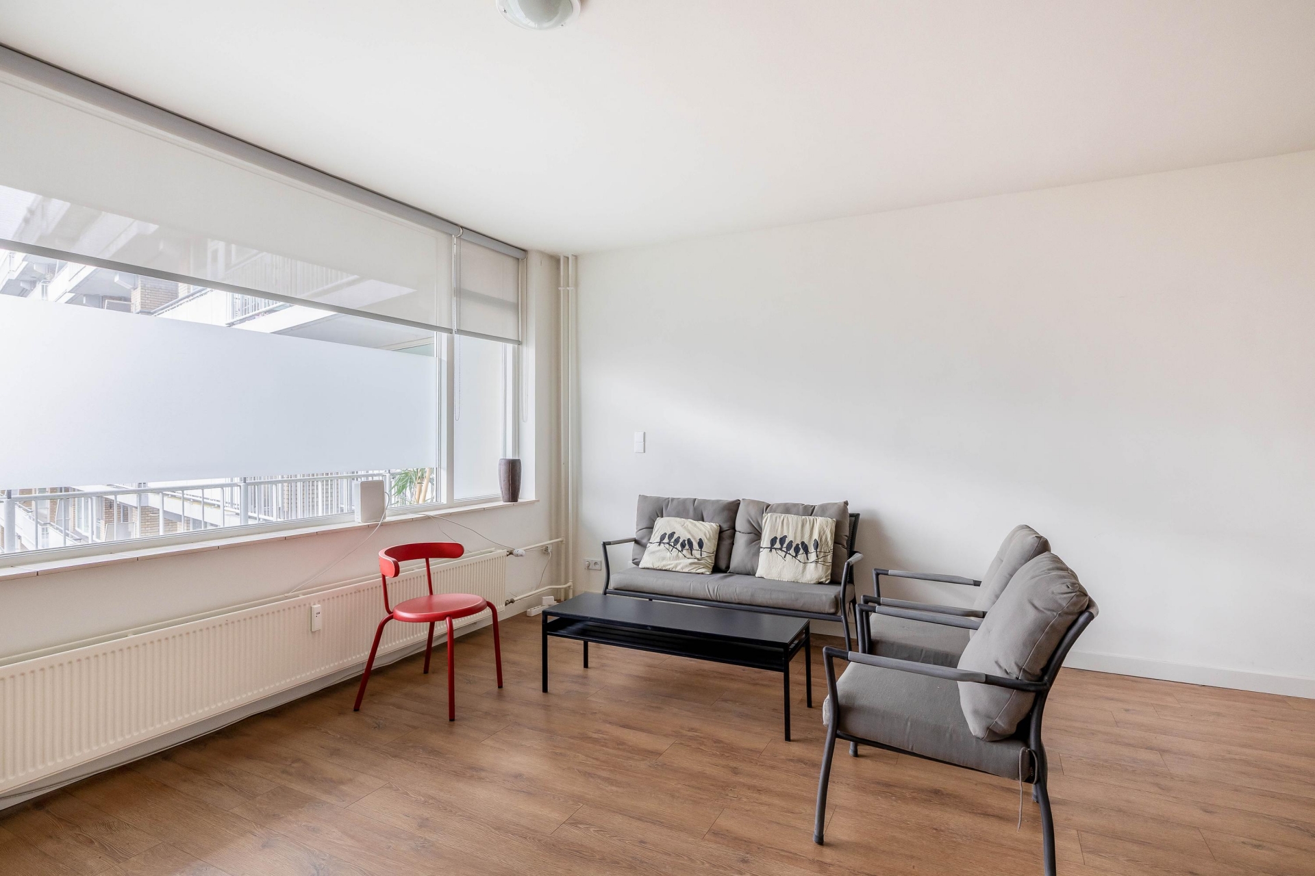 Vanuit de woonkamer stap je zo het balkon op — een heerlijke verlenging van je leefruimte in de warmere maanden.