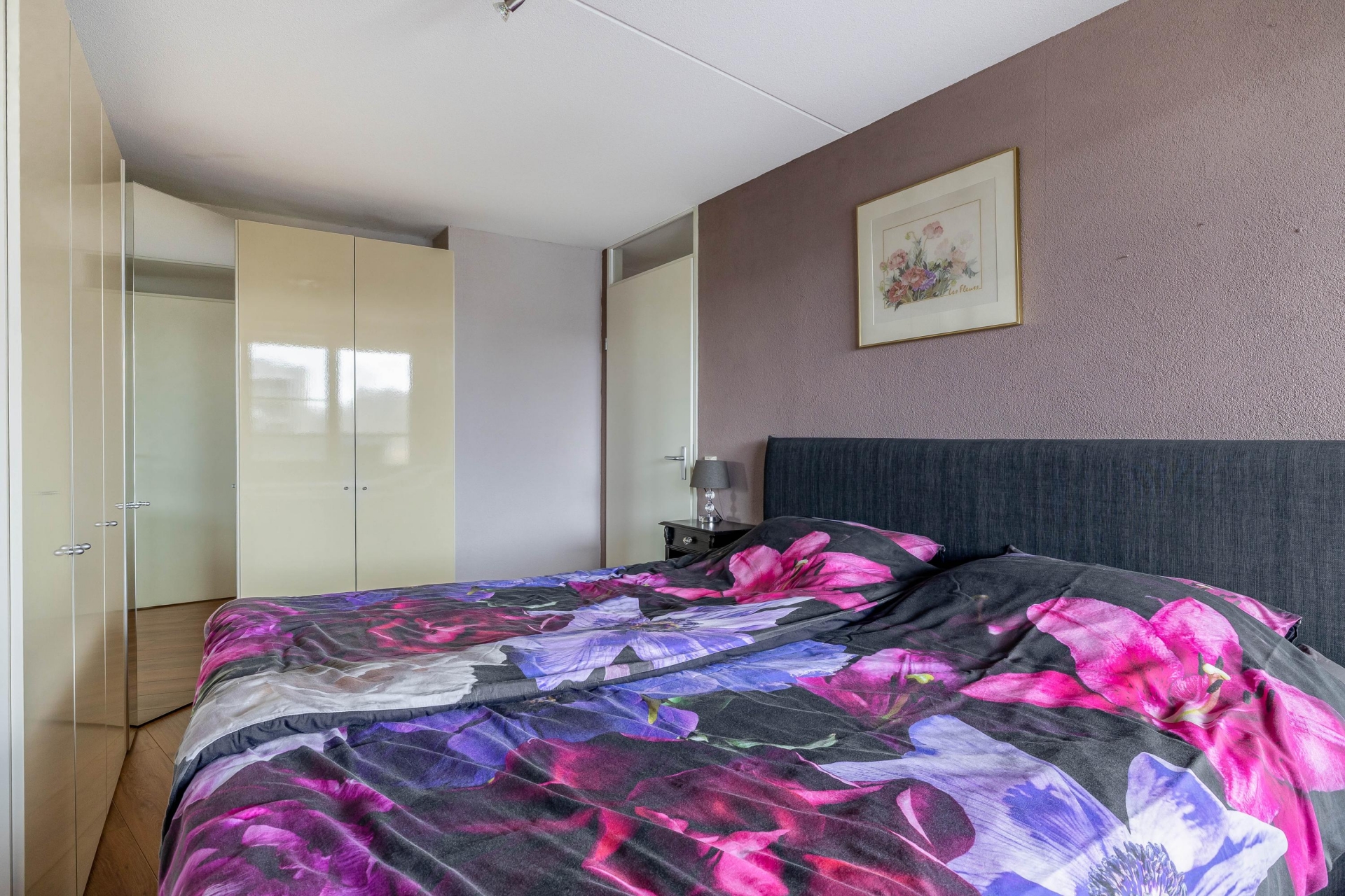 Het appartement beschikt over twee slaapkamers. De grootste slaapkamer biedt voldoende ruimte voor een tweepersoonsbed en een royale kledingkast. Ook hier zorgt het raam voor prettig lichtinval. De tweede slaapkamer is uitstekend geschikt als logeerkamer, hobbyruimte of werkkamer.