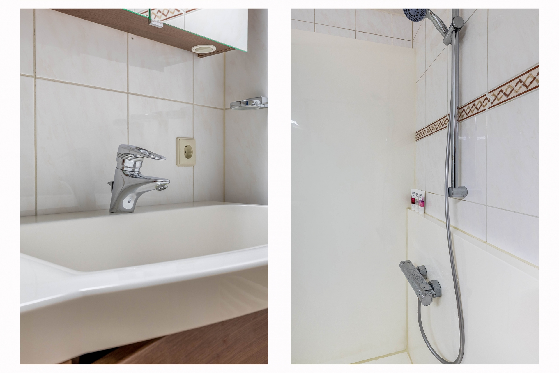 De badkamer is netjes uitgevoerd en voorzien van een inloopdouche en wastafelmeubel. Daarnaast is er een separate toiletruimte. Vanuit de hal vind je bovendien een praktische inpandige berging voor extra opslag en de wasapparatuur.