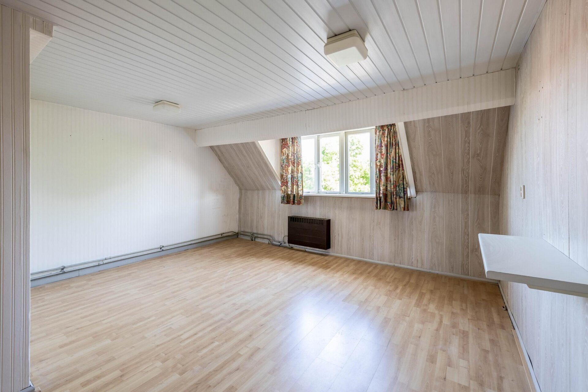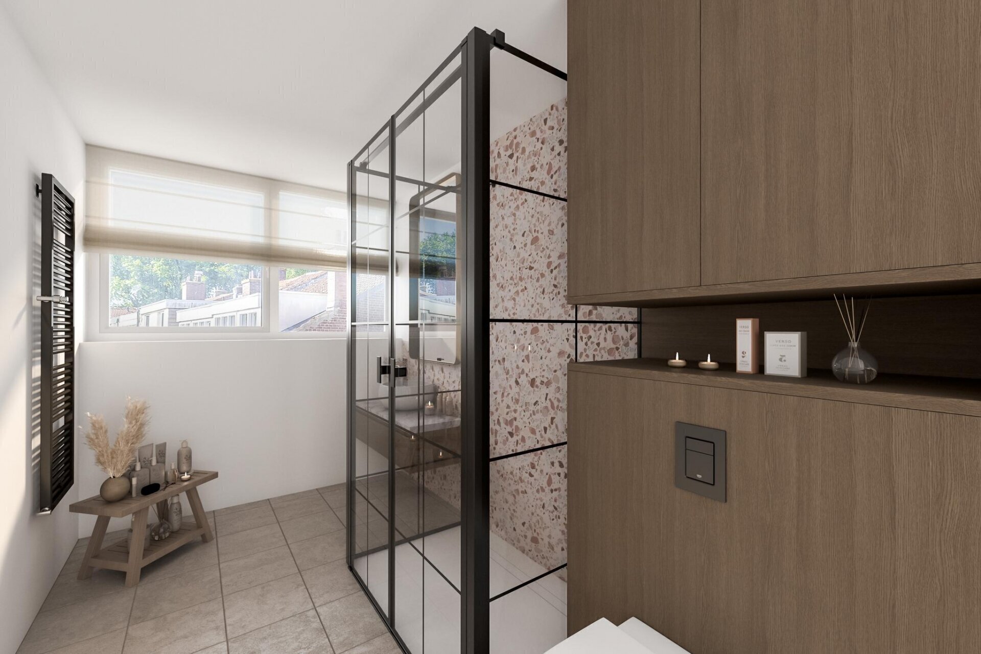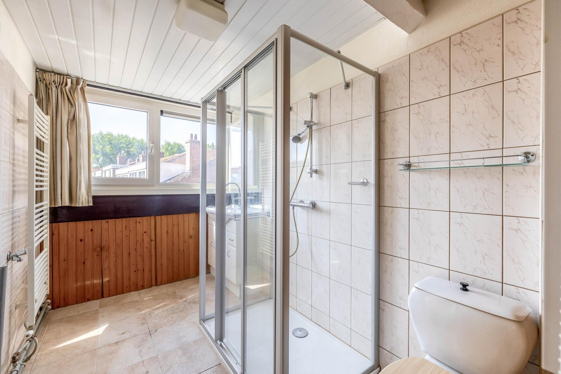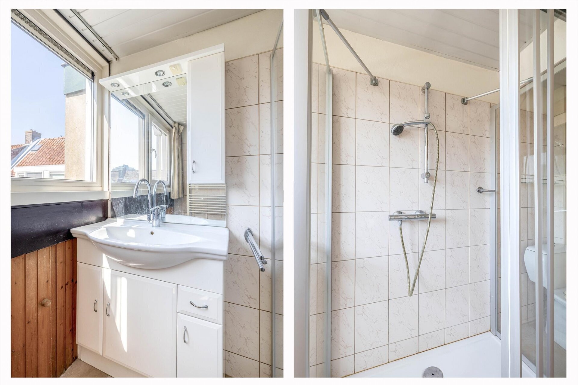Op de tweede verdieping vind je twee ruime slaapkamers, allebei voorzien van een dakkapel voor extra ruimte en licht. De badkamer is uitgerust met een inloopdouche, staand toilet, wastafelmeubel en handdoekradiator. Alles wat je nodig hebt, op één verdieping bij elkaar.