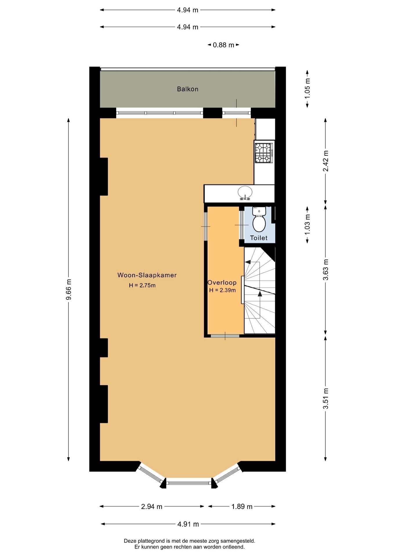“Deze informatie is door ons met de nodige zorgvuldigheid samengesteld. Onzerzijds wordt echter geen enkele aansprakelijkheid aanvaard voor enige onvolledigheid, onjuistheid of anderszins, dan wel de gevolgen daarvan. Alle opgegeven maten en oppervlakten zijn indicatief.”