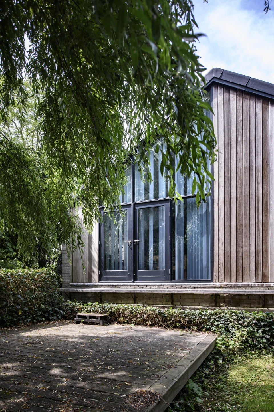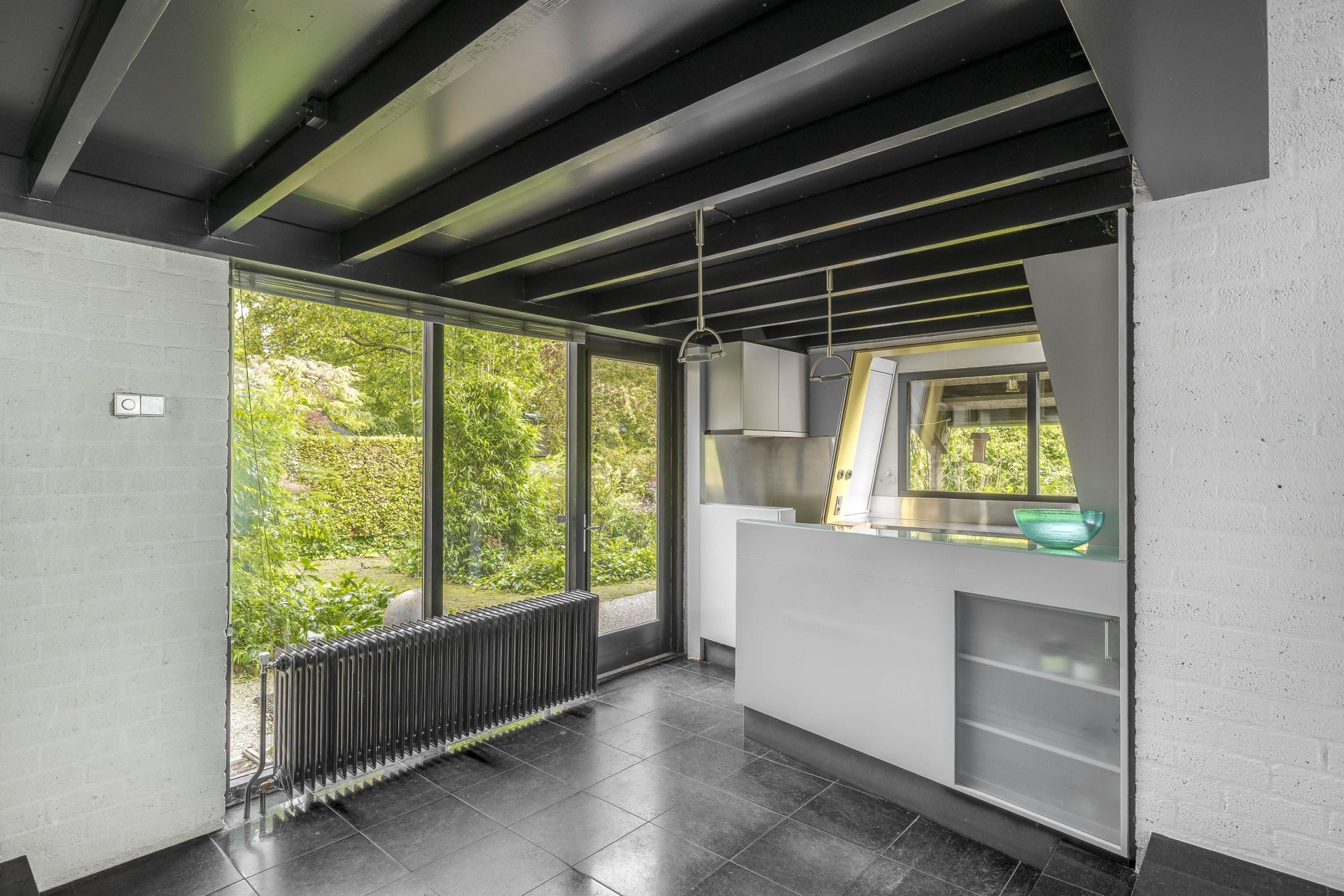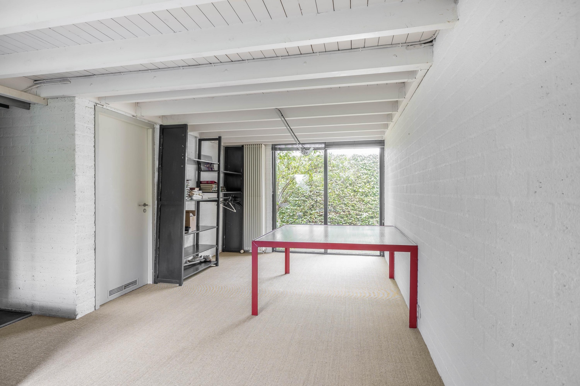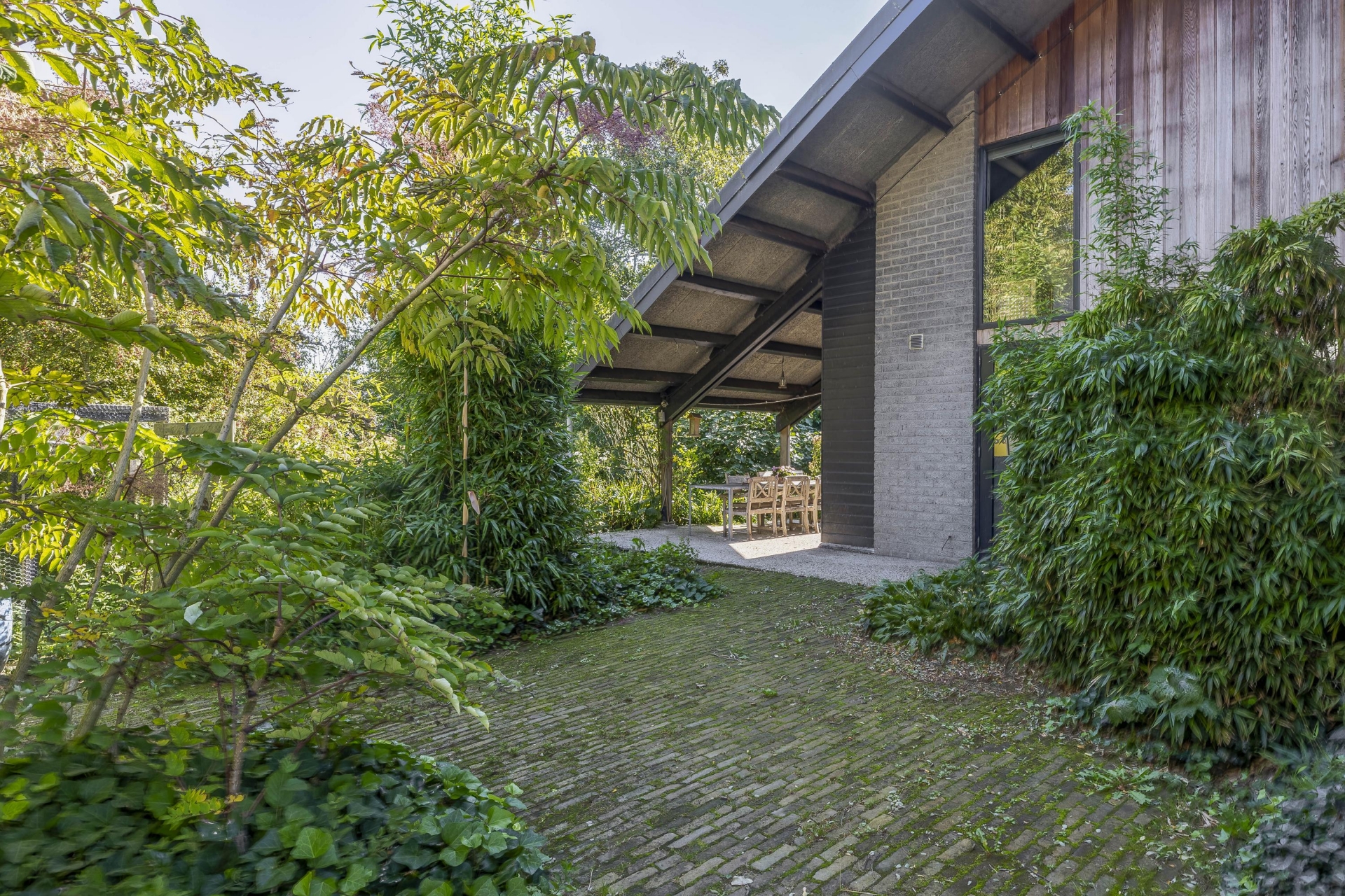 De villa wordt omringd door een schitterende, privacybiedende tuin met twee ruime terrassen, waaronder één overdekt en beschut onder het doorlopende dak. Deze onder architectuur gebouwde woning biedt volop mogelijkheden voor diverse doeleinden, zoals een kantoor, praktijkruimte of atelier aan huis.