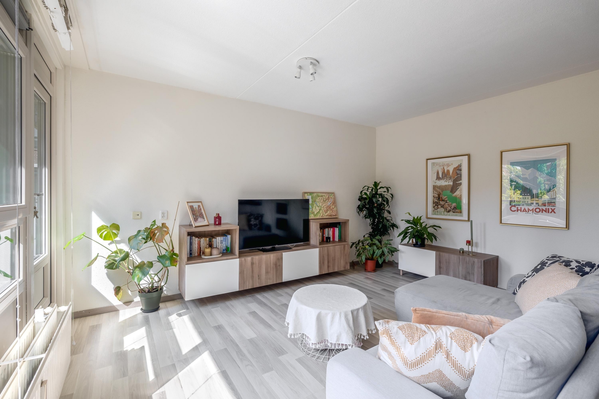 Lichte woonkamer met open keuken: