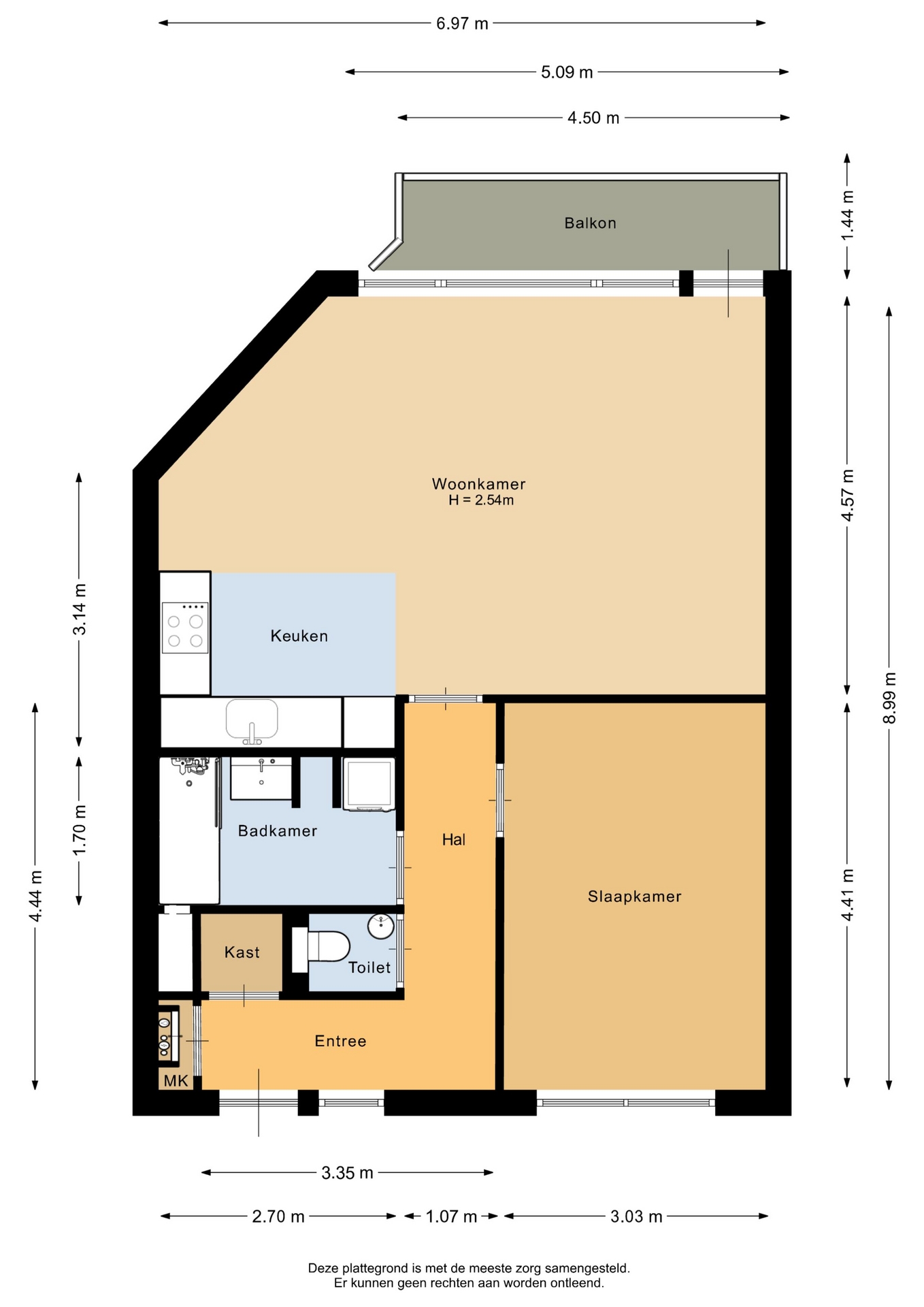 “Deze informatie is door ons met de nodige zorgvuldigheid samengesteld. Onzerzijds wordt echter geen enkele aansprakelijkheid aanvaard voor enige onvolledigheid, onjuistheid of anderszins, dan wel de gevolgen daarvan. Alle opgegeven maten en oppervlakten zijn indicatief.”