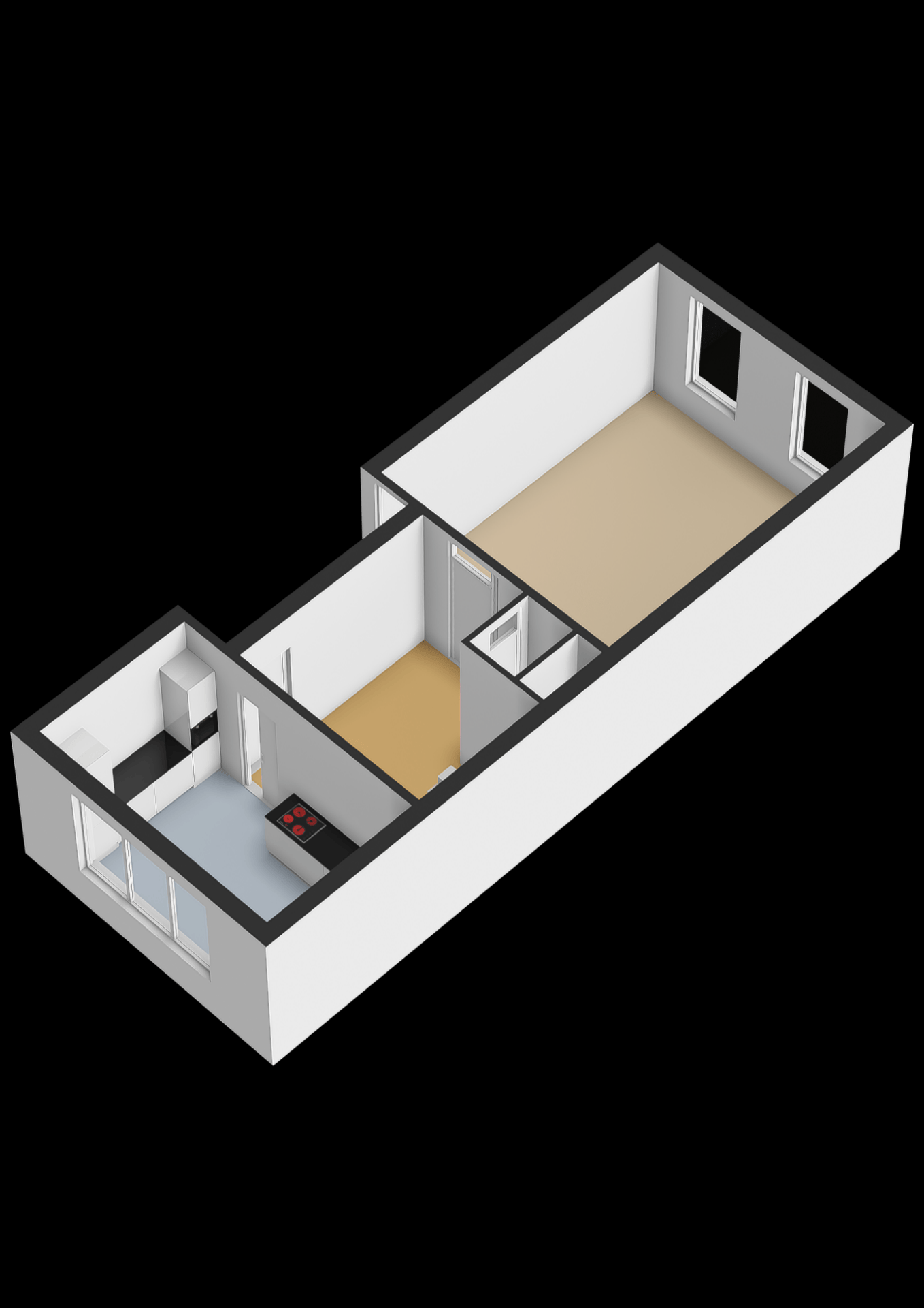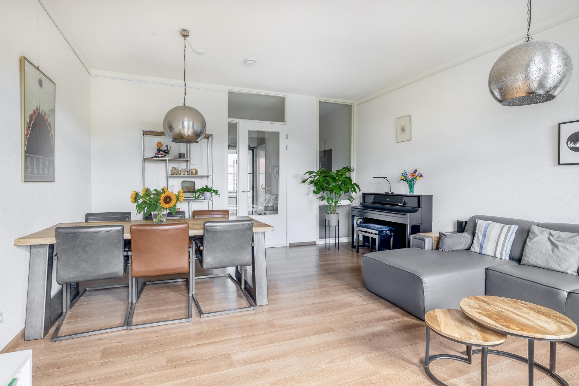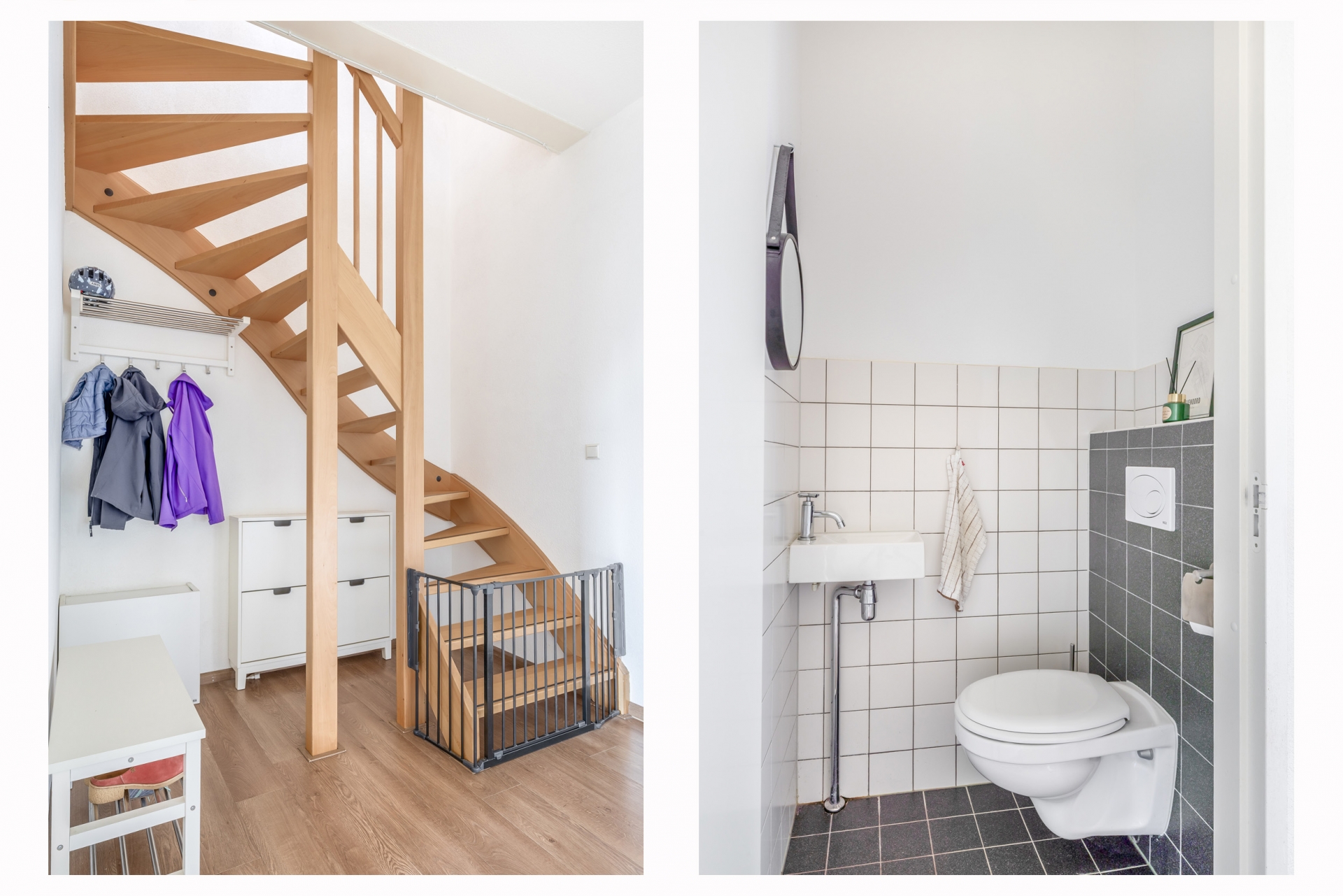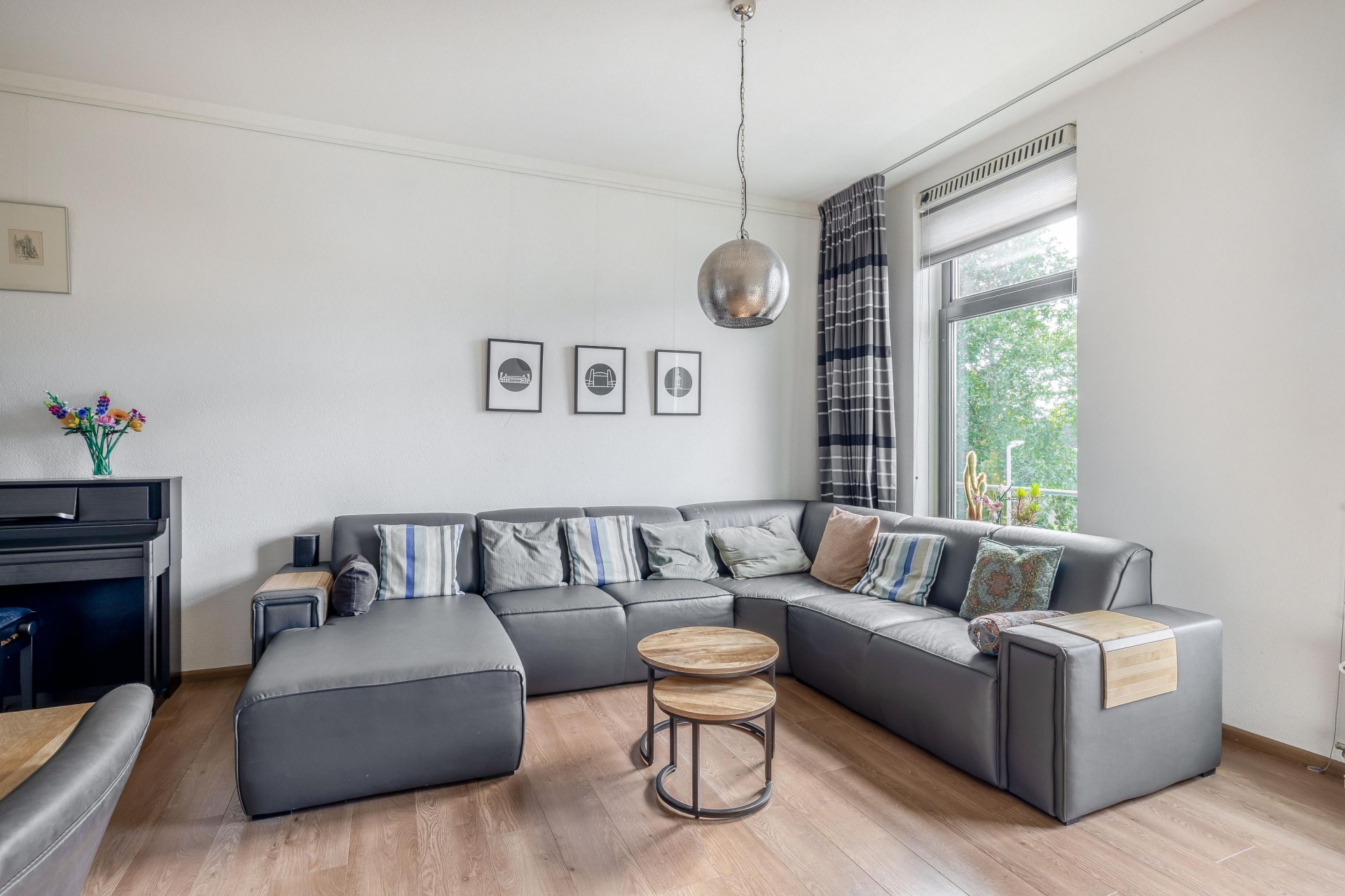 Dit appartement voelt als een volwaardig huis, verdeeld over drie lagen. Op de begane grond vind je een fijne entree met ruimte voor garderobe, waarna je via de trap de woonverdieping bereikt. De woonkamer is ruim en licht, met grote raampartijen en een prachtig zicht op het water.
