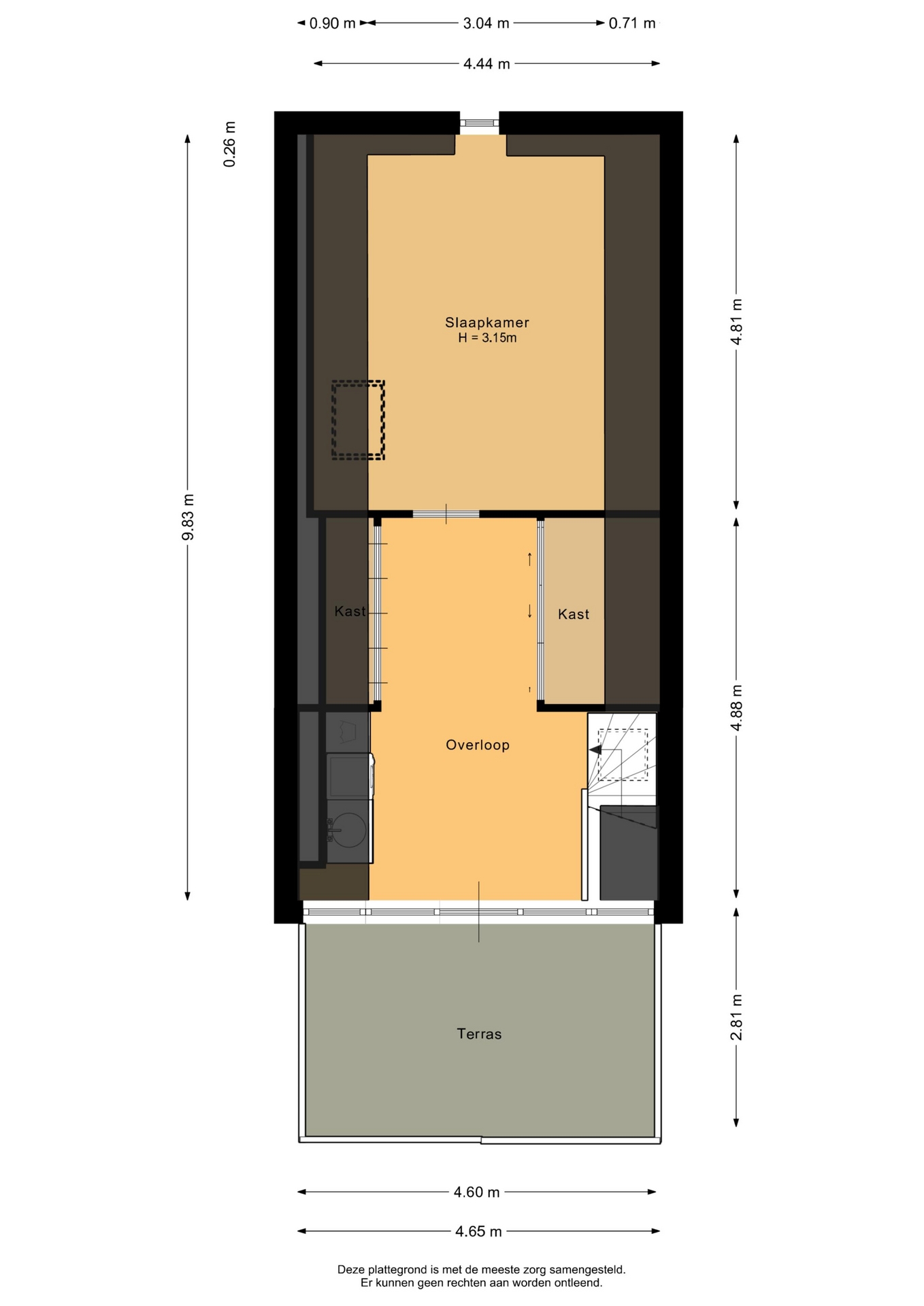 “Deze informatie is door ons met de nodige zorgvuldigheid samengesteld. Onzerzijds wordt echter geen enkele aansprakelijkheid aanvaard voor enige onvolledigheid, onjuistheid of anderszins, dan wel de gevolgen daarvan. Alle opgegeven maten en oppervlakten zijn indicatief.”