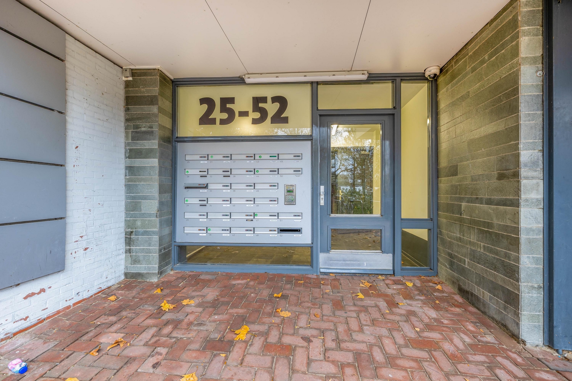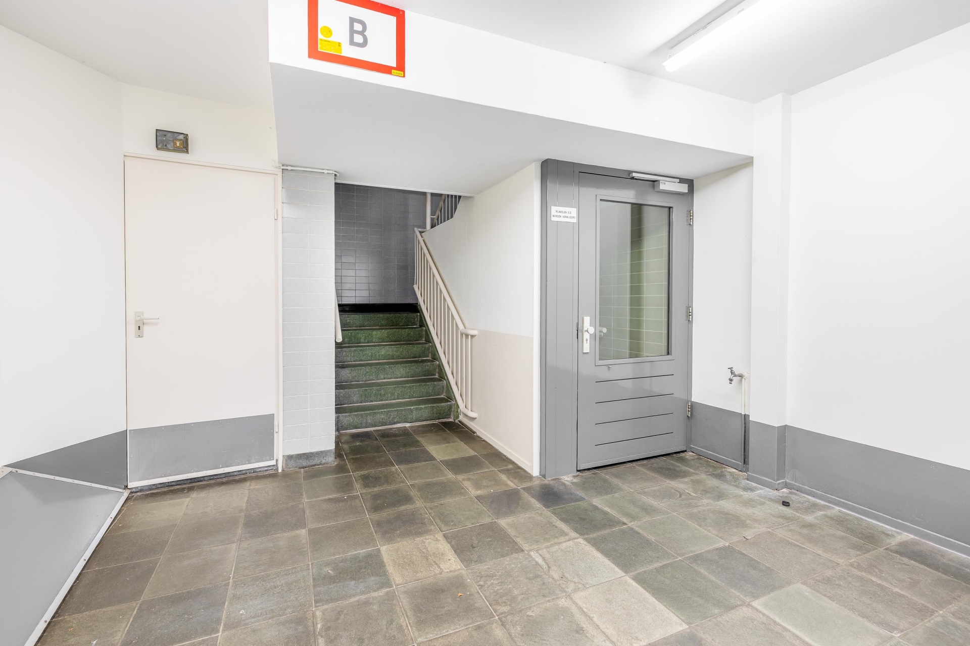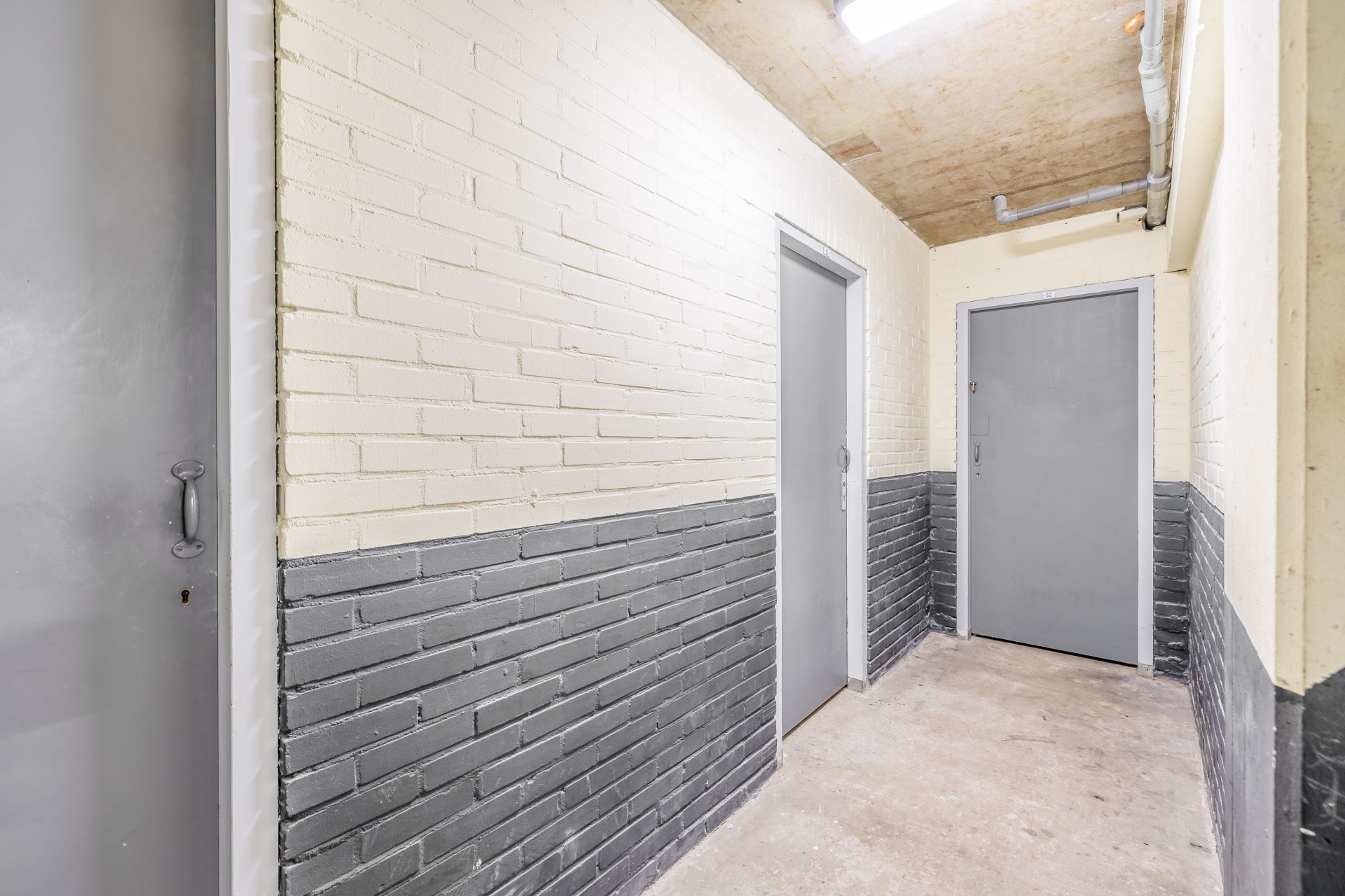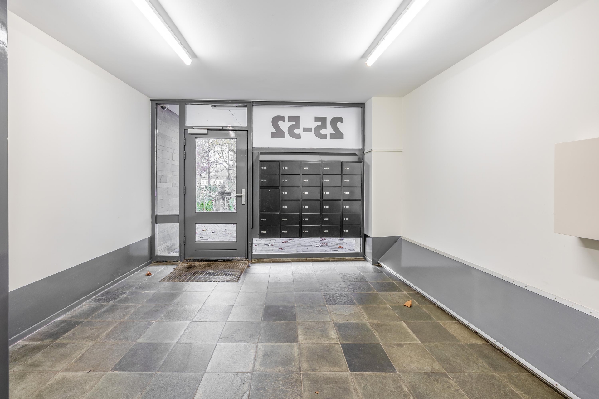 Afgesloten centrale entree met bellenplateau en brievenbussen. Vanuit de hal is er toegang tot het trappenhuis én tot de bergingen in het souterrain.