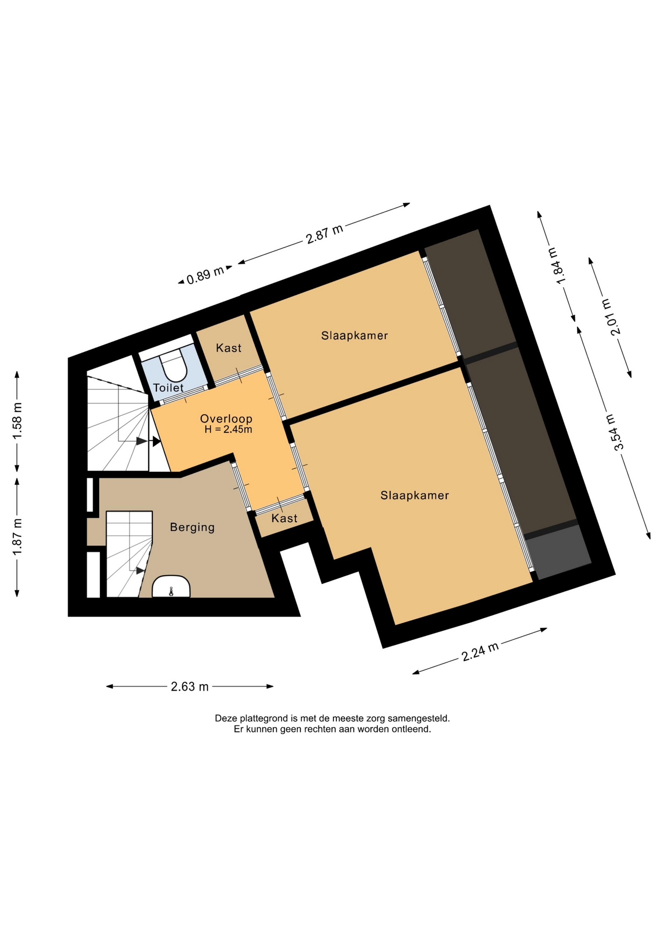 Op de halve derde verdieping vind je twee comfortabele slaapkamers. De indeling is praktisch, met volop bergruimte en een extra toilet voor extra gemak. Vanuit deze verdieping leidt een trap naar de vliering.