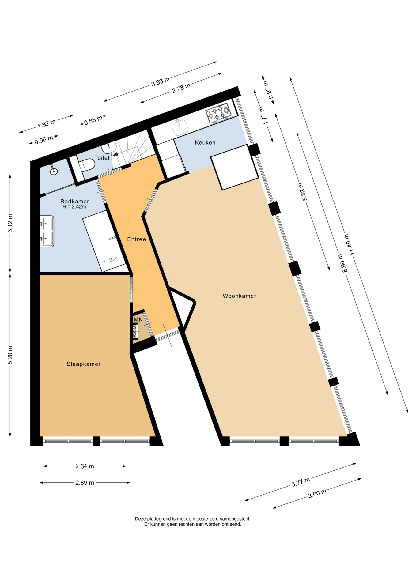 “Deze informatie is door ons met de nodige zorgvuldigheid samengesteld. Onzerzijds wordt echter geen enkele aansprakelijkheid aanvaard voor enige onvolledigheid, onjuistheid of anderszins, dan wel de gevolgen daarvan. Alle opgegeven maten en oppervlakten zijn indicatief.”