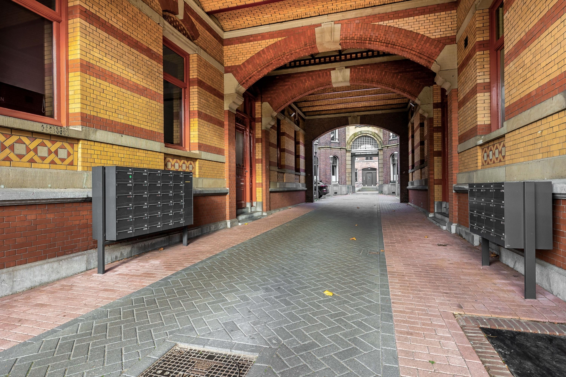 Bovendien beschikt het complex over een lift, een gezamenlijke binnentuin én een fietsenstalling. De entree is beveiligd en afgesloten, en via de monumentale poort wandel je direct de lommerrijke singel op.