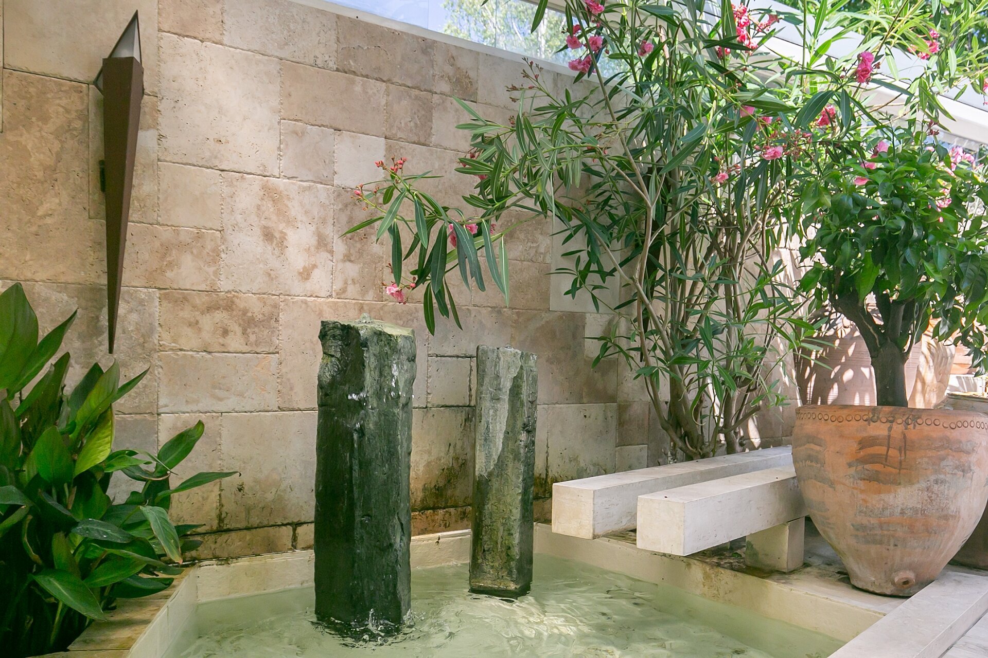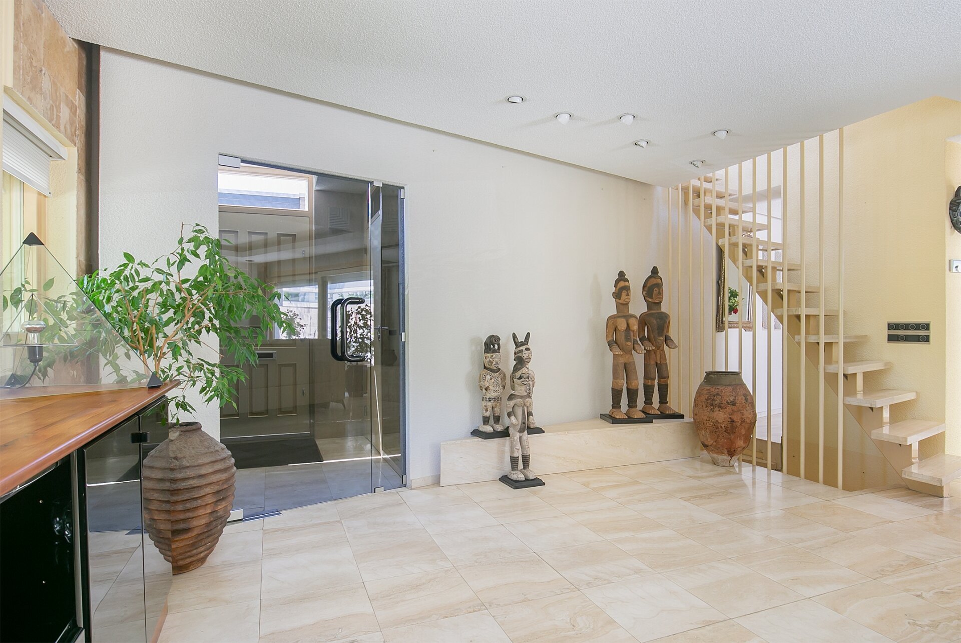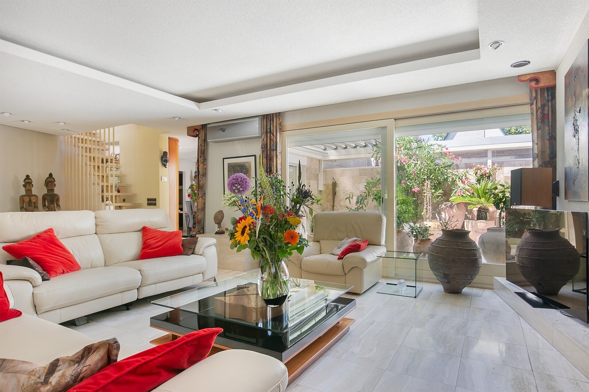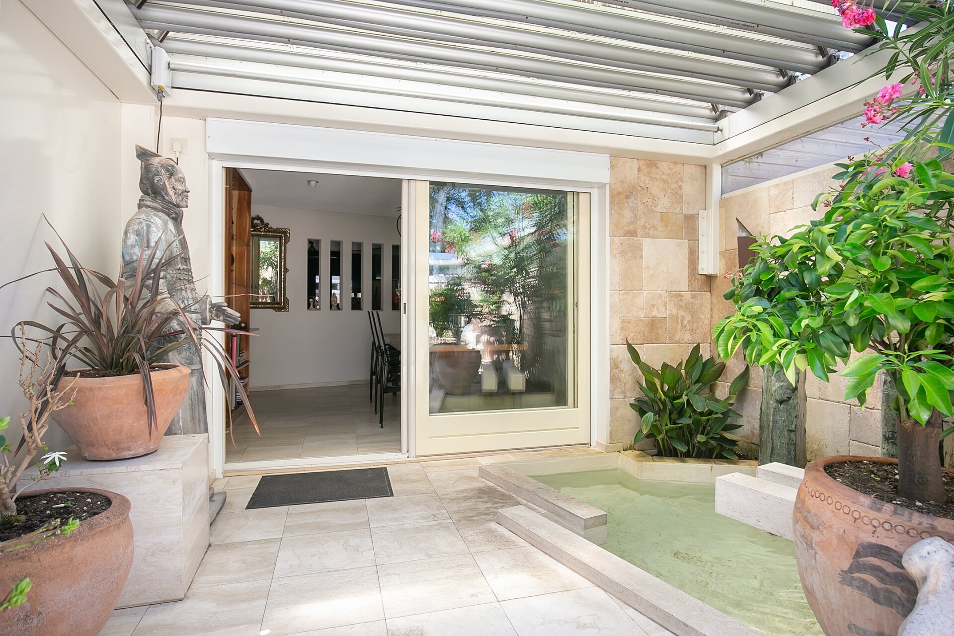From the living room and dining room there is a good connection to the subtropical garden with many container plants. You can also sit on the patio when the sun is shining. Even when it rains, the patio doors can remain open and you can experience the pleasant pattering rain on the patio roof.
