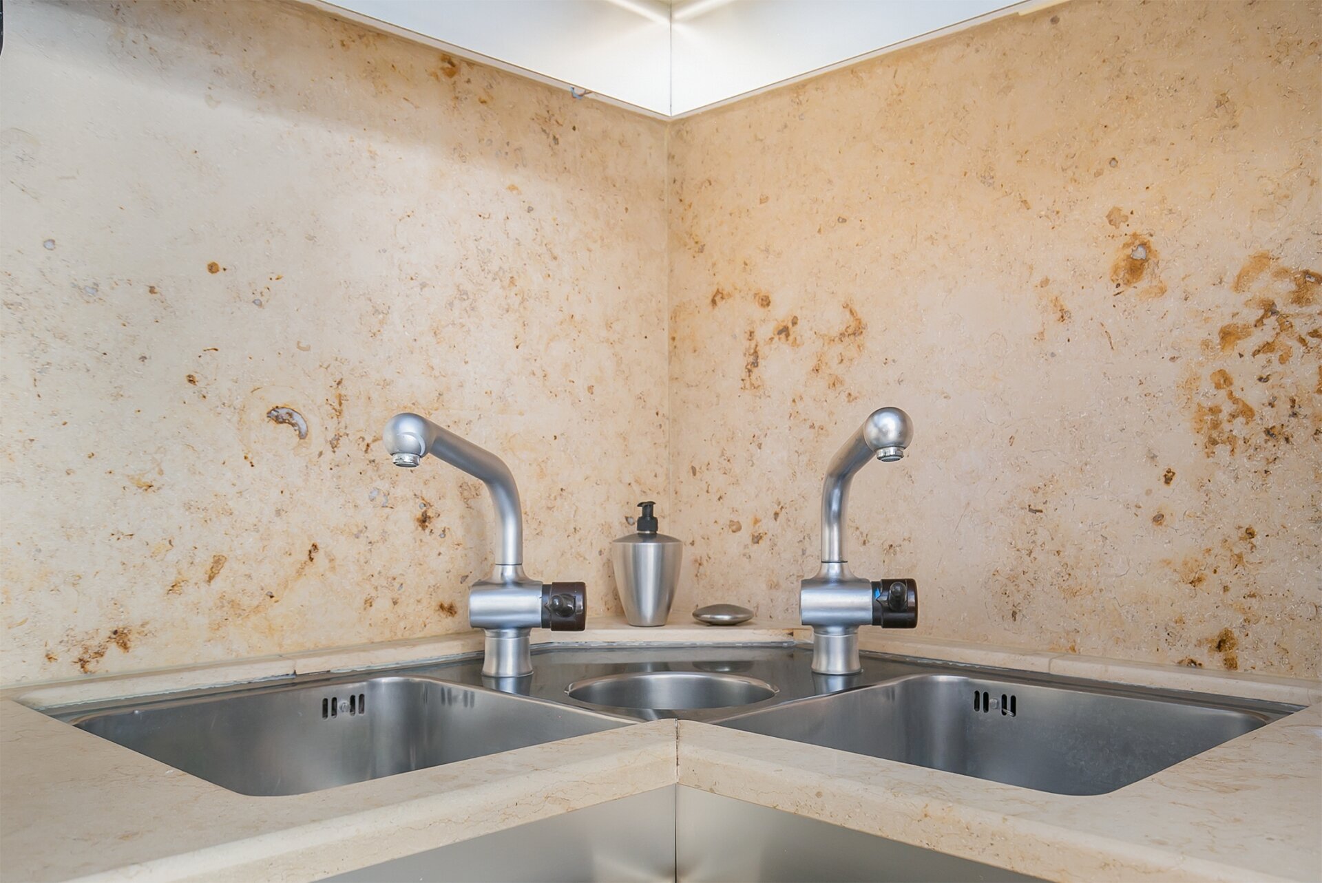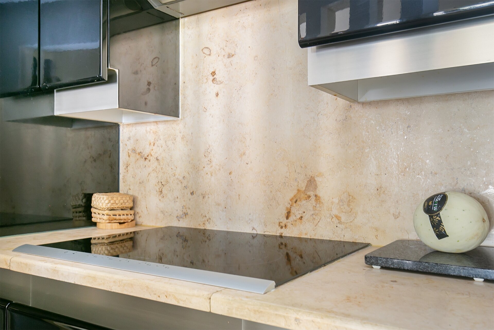 - Italiaanse (Boffi) keuken en bijkeuken voorzien van een vaatwasser (Siemens), koel-vries combinatie, 4 pits inductiekookplaat (Siemens), oven (Smeg) en magnetron (Siemens);