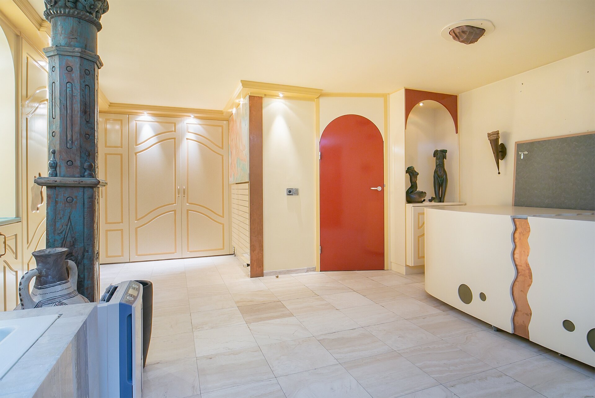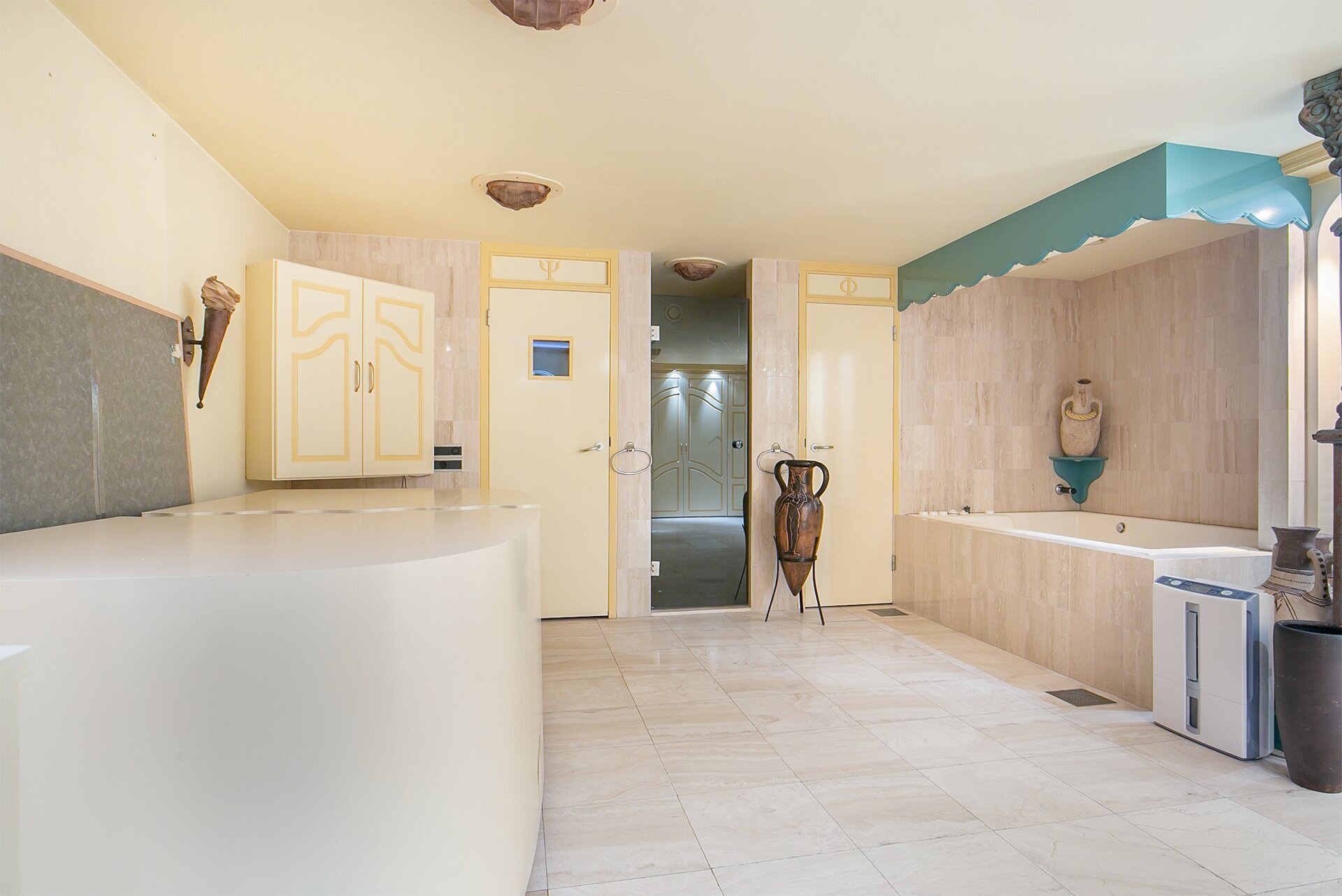 The ground floor is also unique. In addition to a spacious laundry and ironing room and a double guest bed, there is a relaxation/wellness area with, among other things, a double bath, double sauna, (2nd) shower, washbasin, height sun and TV connection. The central heating boiler (Remeha), water drainage and air circulation are located in a separate room. The entire ground floor has a lot of cupboard space, so you can neatly store enough things. As a bonus, you will also find a 'walk in closet' and spacious insulated wine cellar.