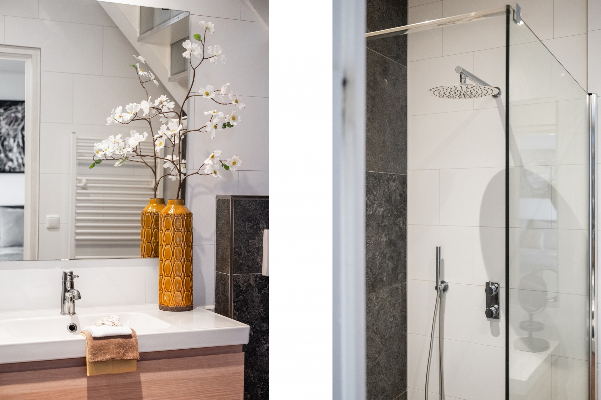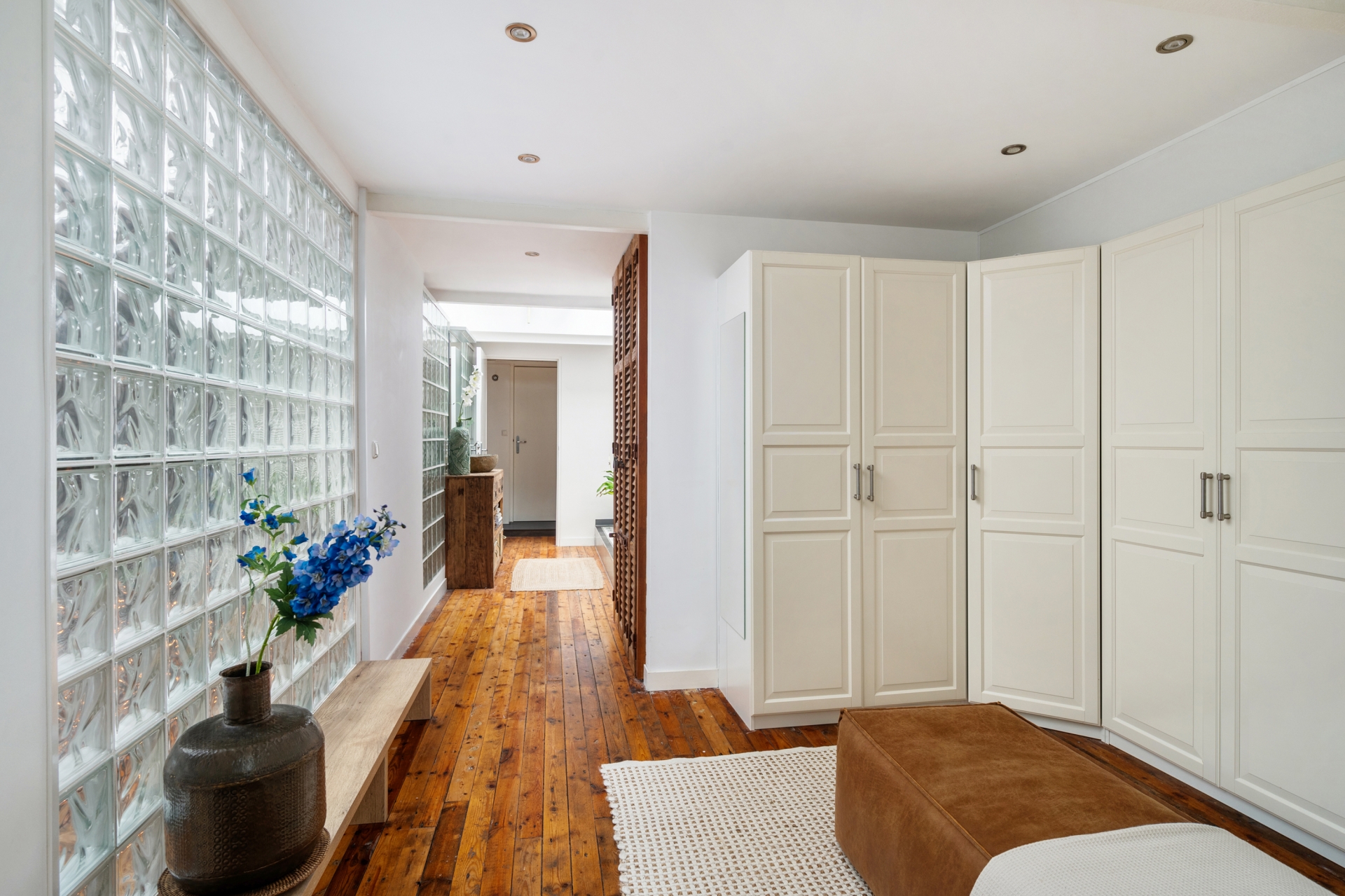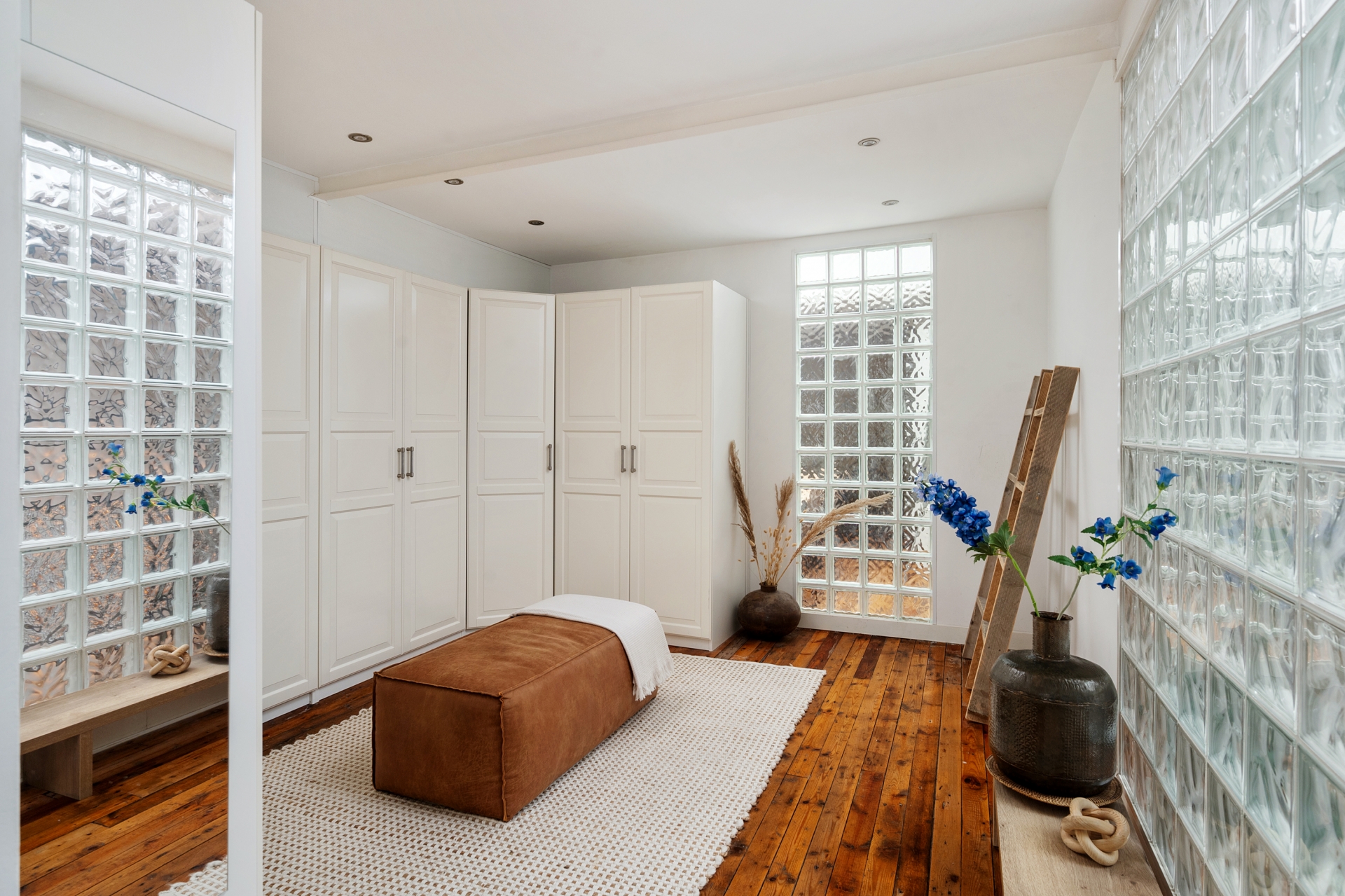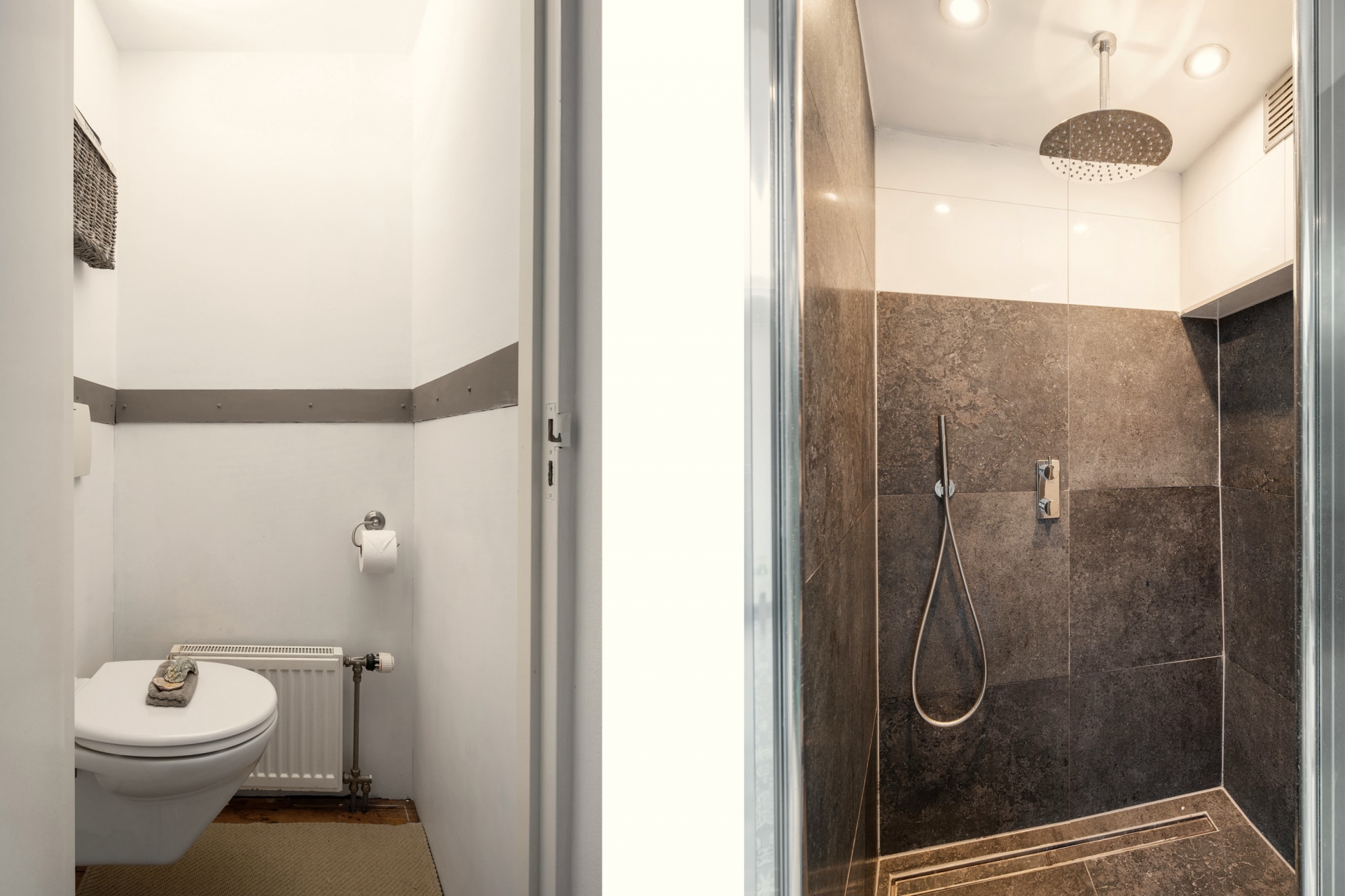 De loft beschikt over drie ruime slaapkamers, elk met een eigen sfeer en veel daglicht. Daarnaast kan in de royale kledingruimte eenvoudig een vierde kamer worden gerealiseerd - ideaal voor gezinnen of thuiswerkers die extra ruimte wensen. Daarnaast beschikt de woning over twee badkamer; er is een luxe badkamer die perfect aansluit, met zijn moderne afwerking en serene uitstraling, bij de industriële stijl van de woning. De tweede badkamer is modern en beschikt ook over een toilet, deze badkamer is gelegen aan de voorzijde (logeerkamer).