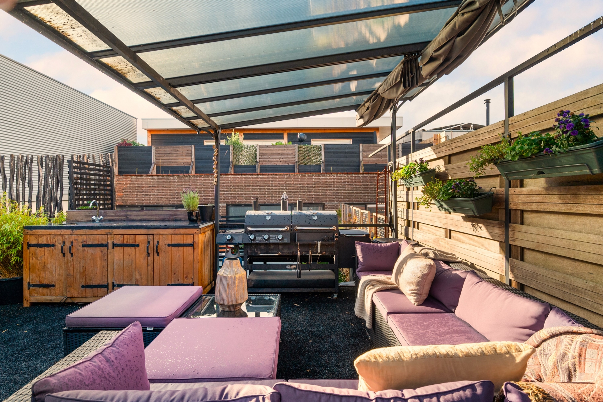 Het dakterras is zonder twijfel het kroonjuweel van deze woning. Met volledige privacy en zon van ’s ochtends vroeg tot zonsondergang, biedt deze buitenruimte een ongeëvenaarde ervaring. De voorzieningen maken het geheel compleet: een hottub, een buitenkeuken, een verwarmde buitendouche en weelderig groen creëren het gevoel van een resort midden in de stad. Een plek waar je tot rust komt, geniet en het leven viert.