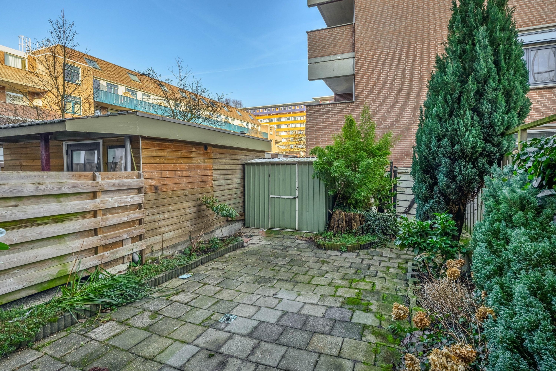 De achtertuin is een groot pluspunt van deze woning. Hier heb je alle ruimte om te ontspannen na een werkdag of om in het weekend gezellig buiten te zitten. De tuin is overzichtelijk, biedt privacy en is onderhoudsvriendelijk - ideaal voor wie graag buiten is, maar niet teveel tijd aan tuinonderhoud wil besteden.