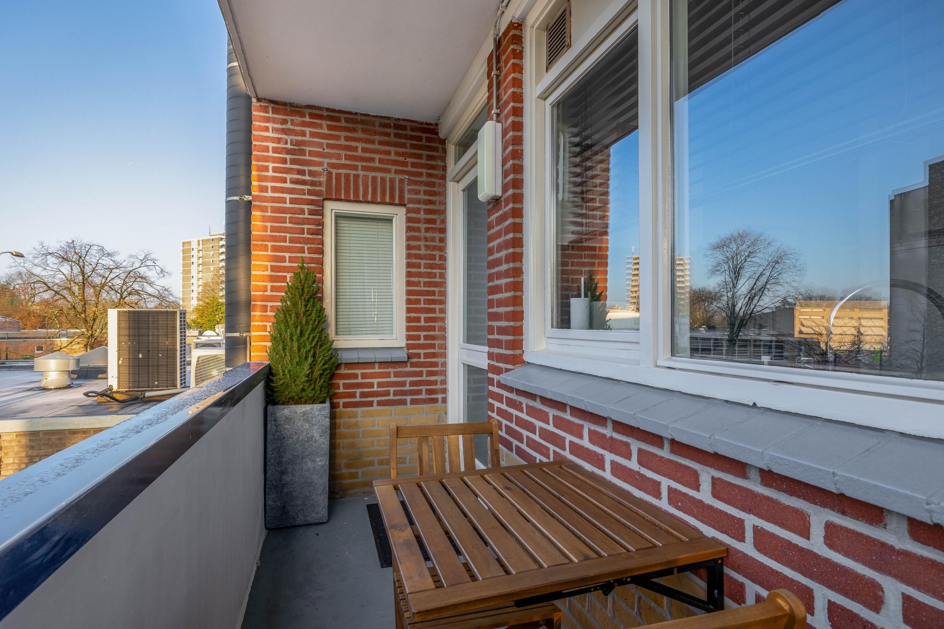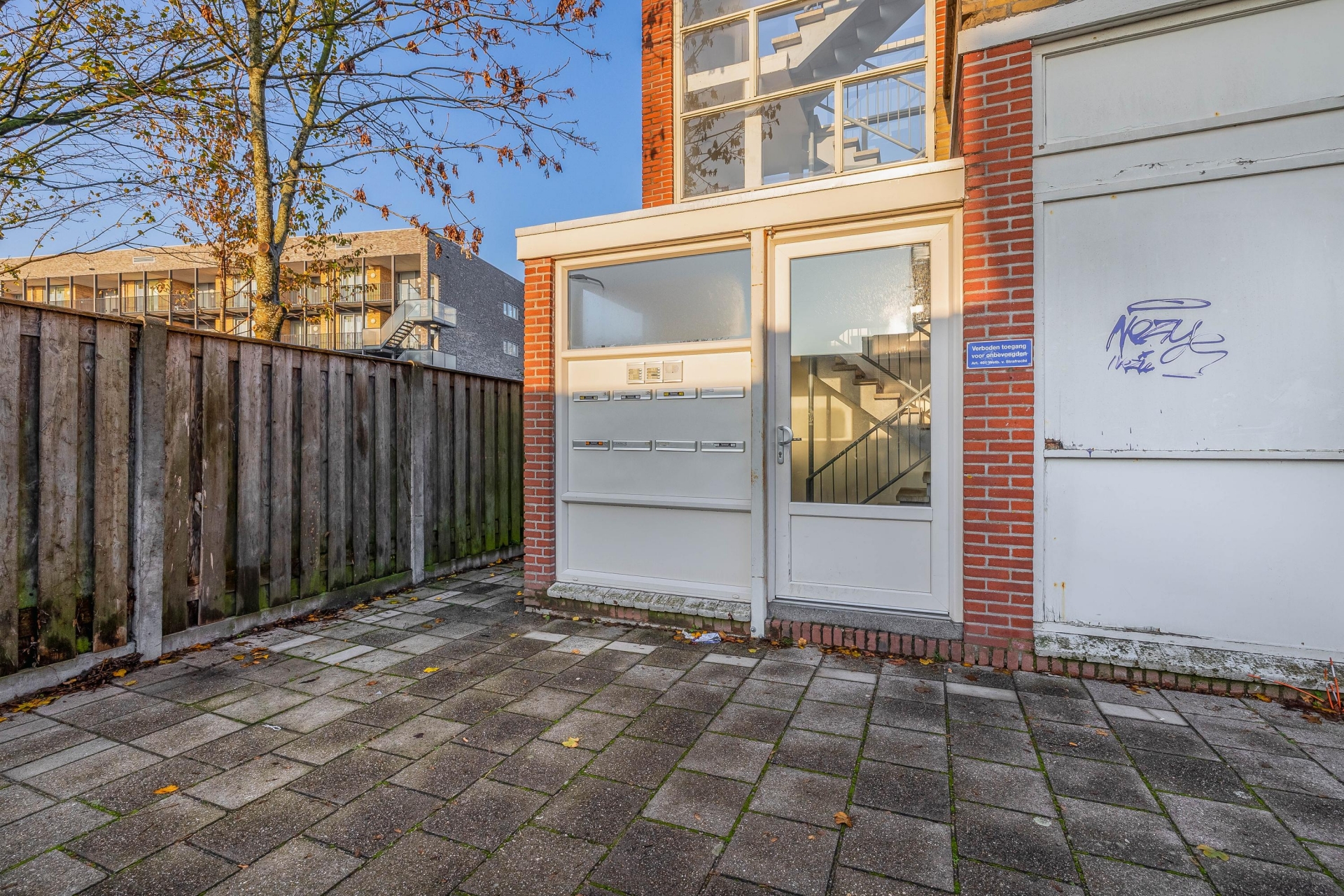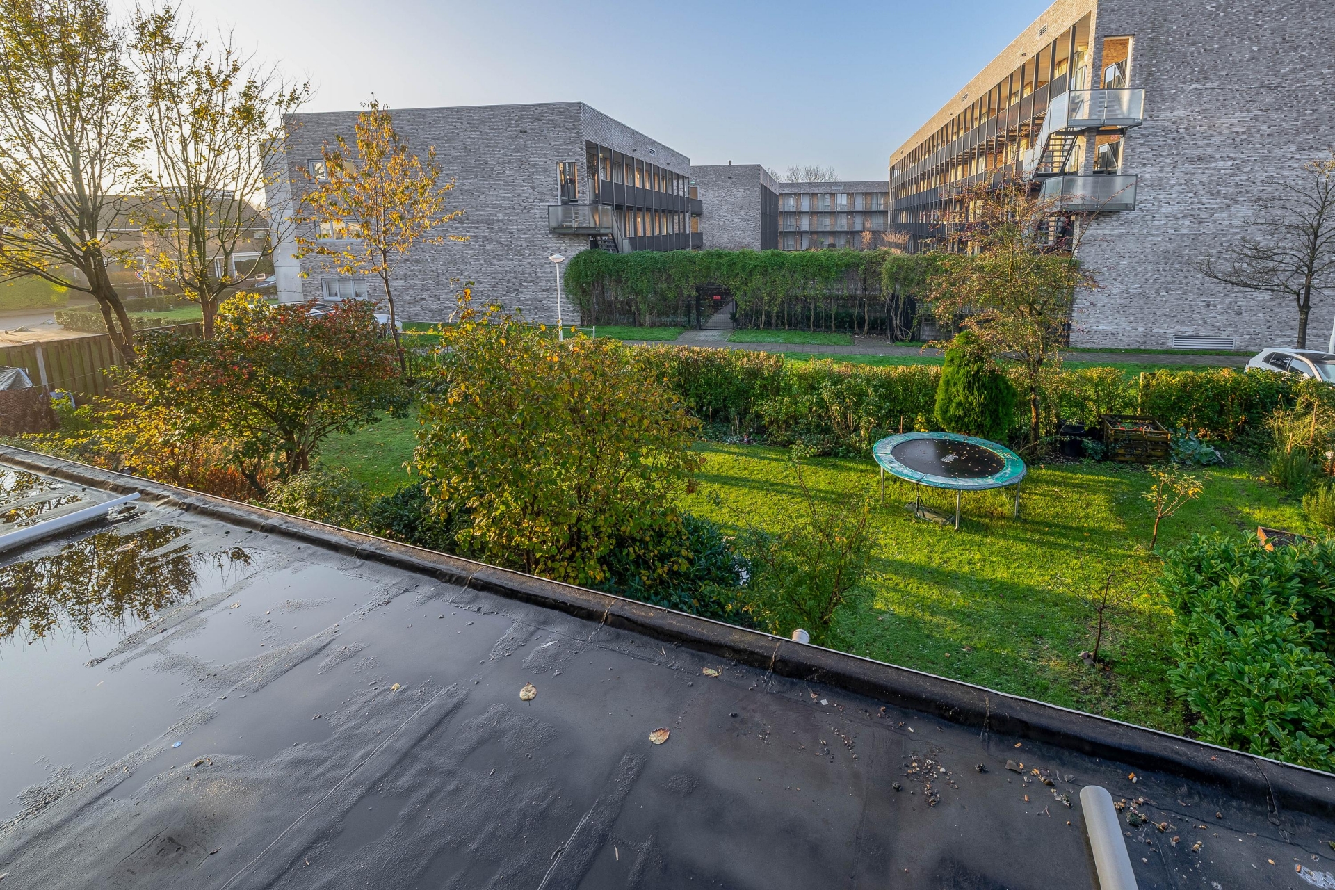 Buiten genieten? Dat kan op je eigen balkon, gelegen op het noordoosten, perfect voor een koffiemoment in de ochtendzon of een ontspannen avond. Daarnaast is er nog een ruime, groene achtertuin die gedeeld wordt met de andere bewoners van het complex. Dit geeft een extra gevoel van ruimte én gezelligheid, zeker op zonnige dagen. Het complex is kleinschalig en rustig, met fijne buren die elkaar kennen.