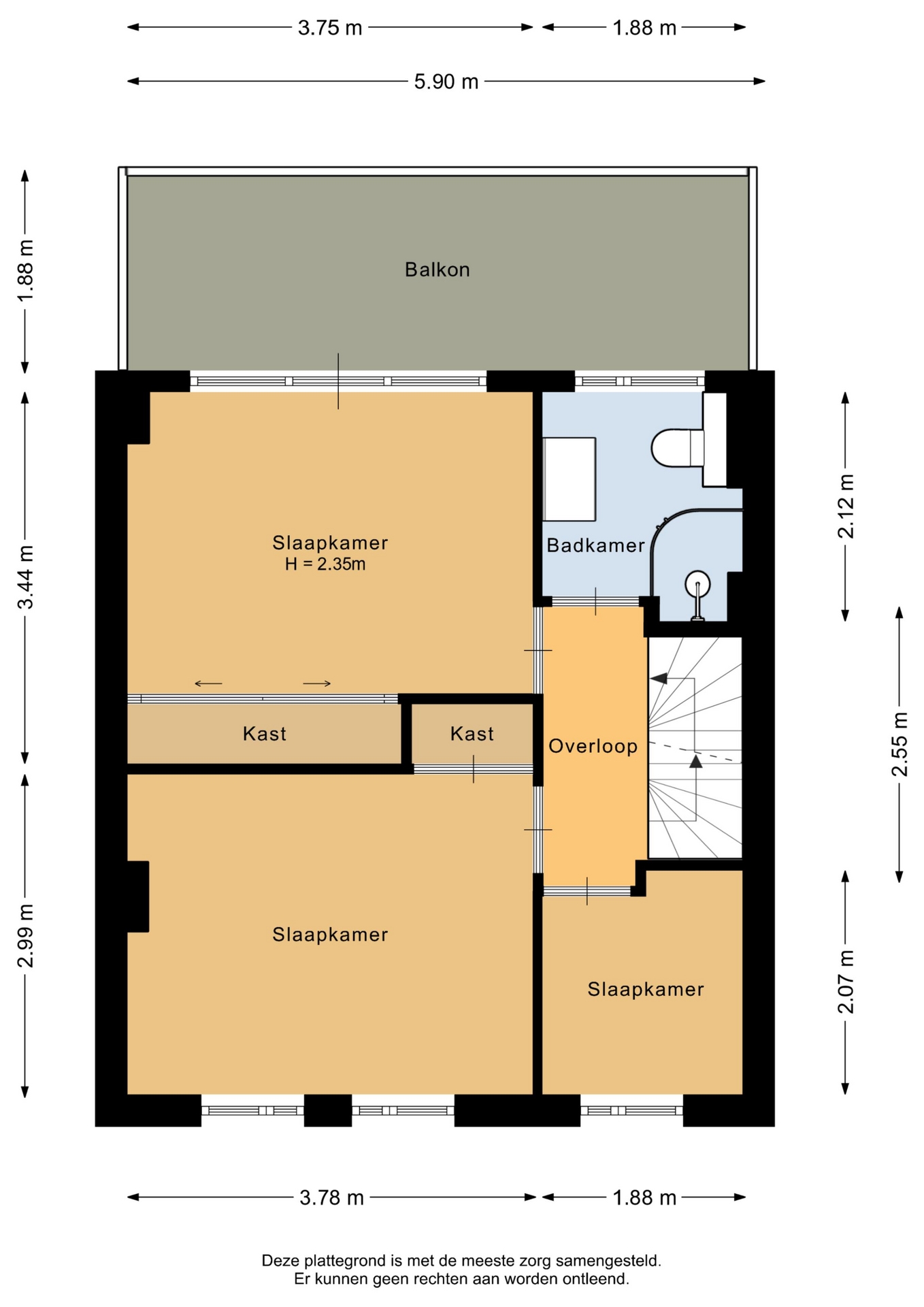 “Deze informatie is door ons met de nodige zorgvuldigheid samengesteld. Onzerzijds wordt echter geen enkele aansprakelijkheid aanvaard voor enige onvolledigheid, onjuistheid of anderszins, dan wel de gevolgen daarvan. Alle opgegeven maten en oppervlakten zijn indicatief.”