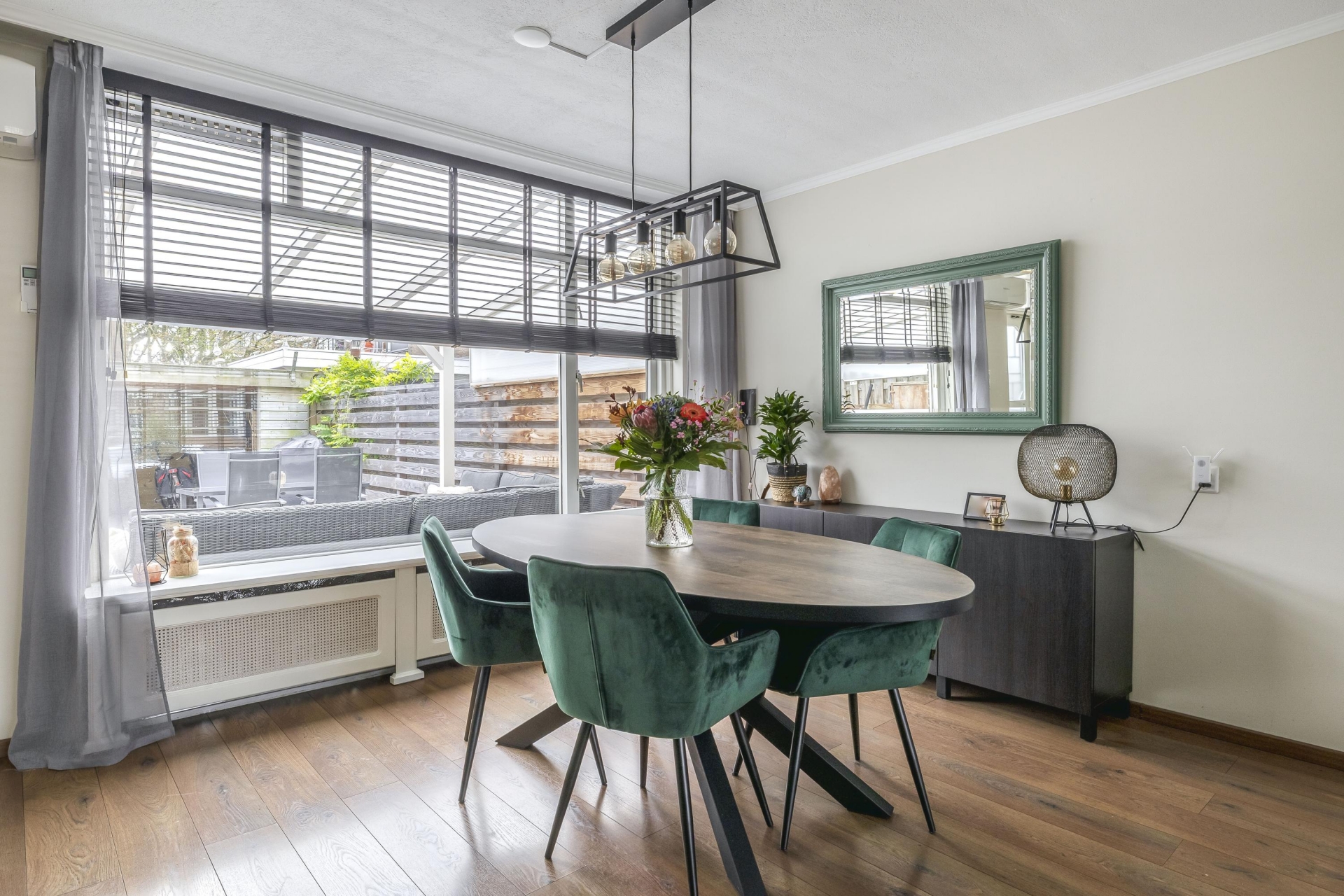 De woning is volledig voorzien van dubbele beglazing, heeft een airco-unit op de begane grond voor extra comfort en een fraaie voortuin die recent opnieuw is aangelegd. Aan de achterzijde ligt een zonnige tuin op het zuidoosten mét een aangebouwde overkapping. Hierdoor kun je tot laat in het seizoen buiten zitten, ongeacht de weersomstandigheden.