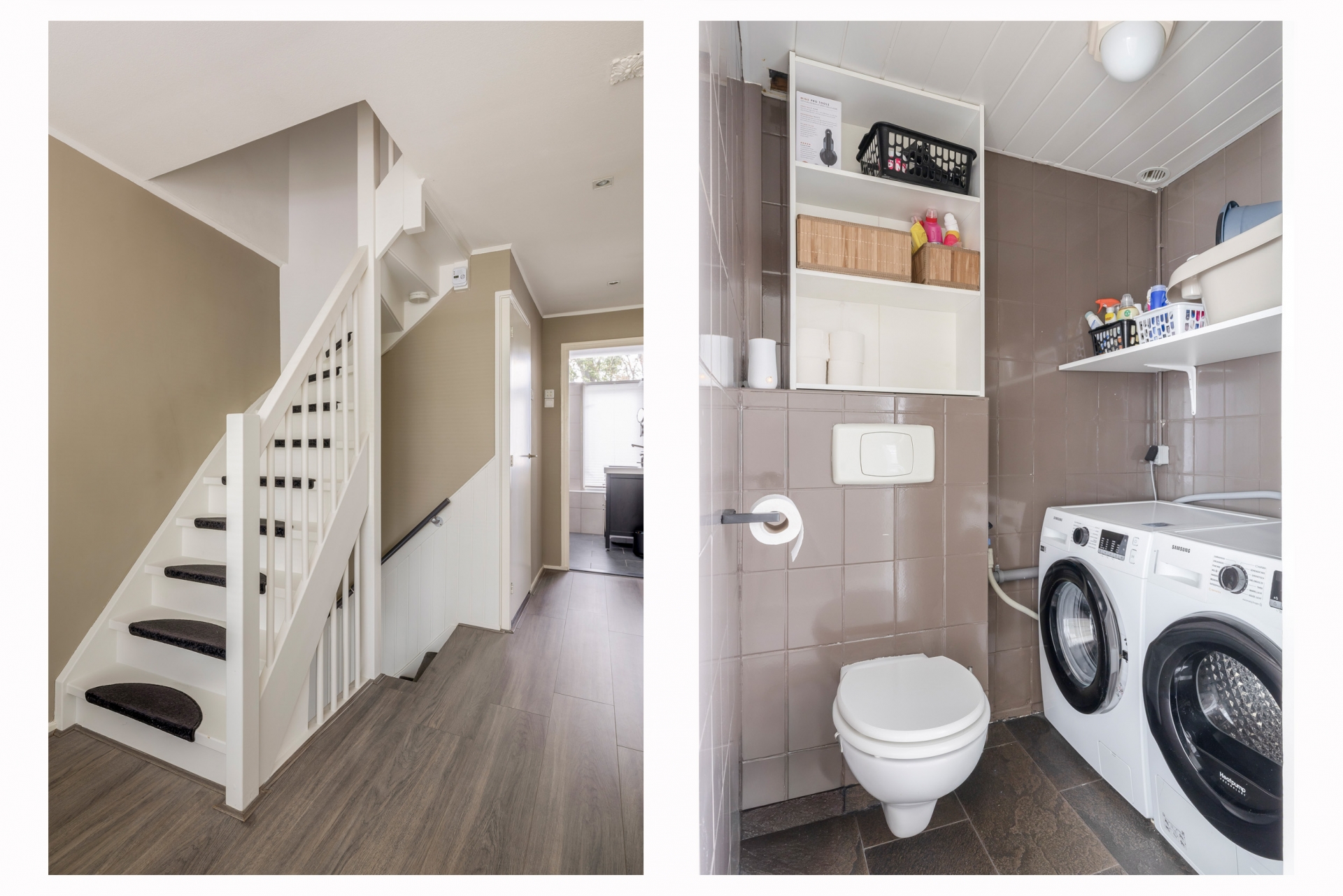 De badkamer is modern en fris, voorzien van douche en wastafel, en het toilet is separaat – een praktische plus! Op deze verdieping bevindt zich ook een aparte wasruimte, zodat je niet met wasmanden hoeft te sjouwen.