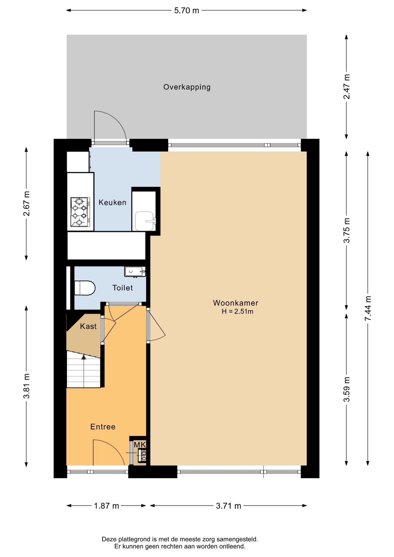 “Deze informatie is door ons met de nodige zorgvuldigheid samengesteld. Onzerzijds wordt echter geen enkele aansprakelijkheid aanvaard voor enige onvolledigheid, onjuistheid of anderszins, dan wel de gevolgen daarvan. Alle opgegeven maten en oppervlakten zijn indicatief.”