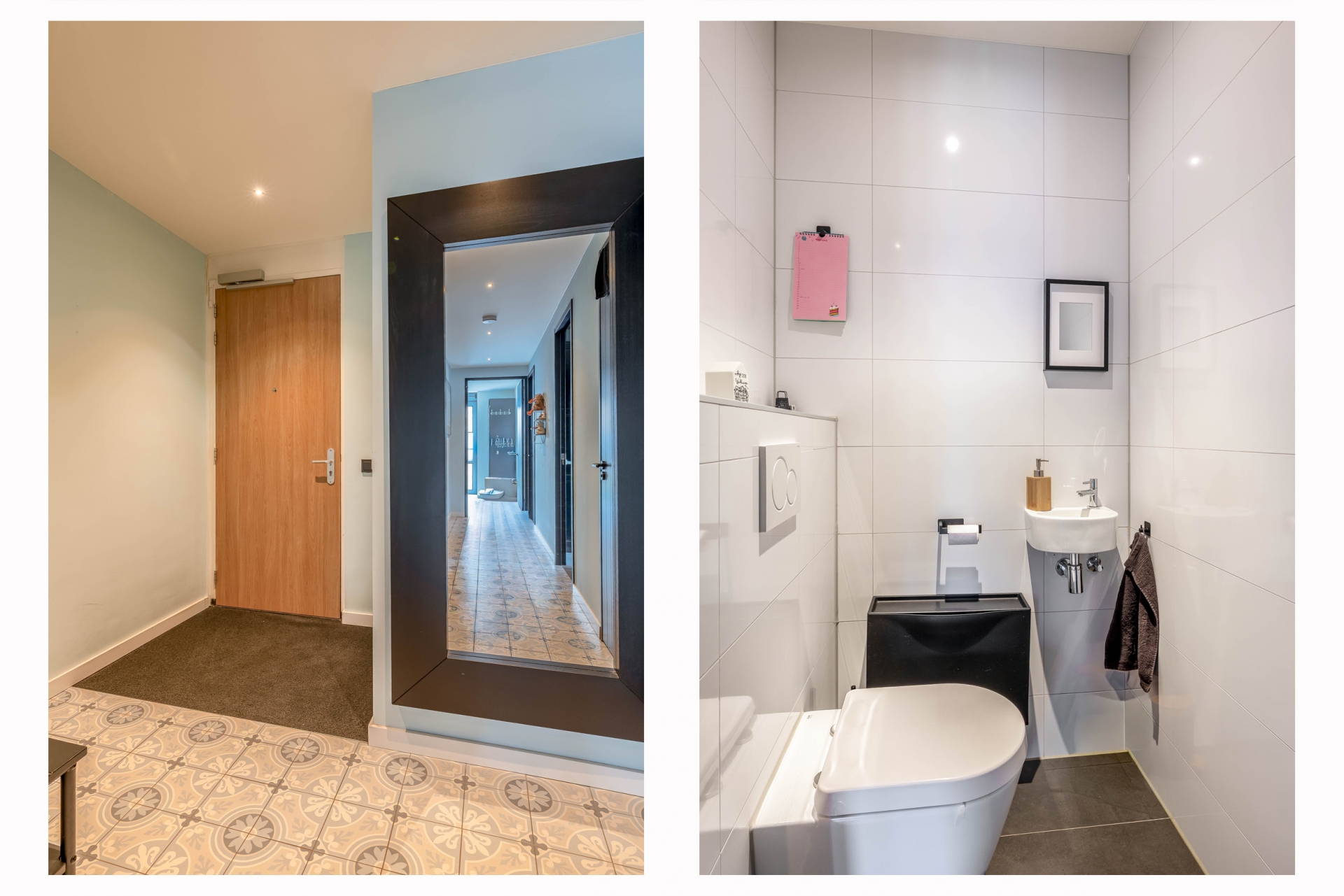 De badkamer is modern en volledig betegeld in lichte tinten. Voorzien van een ruime inloopdouche, tweede toilet, strak wastafelmeubel en wasmachine- en drogeraansluiting. Alles is nieuw en fris, precies wat je verwacht bij een appartement uit 2024. Daarnaast is er een separaat toilet aanwezig. Ook hier zie je de zorgvuldige afwerking.