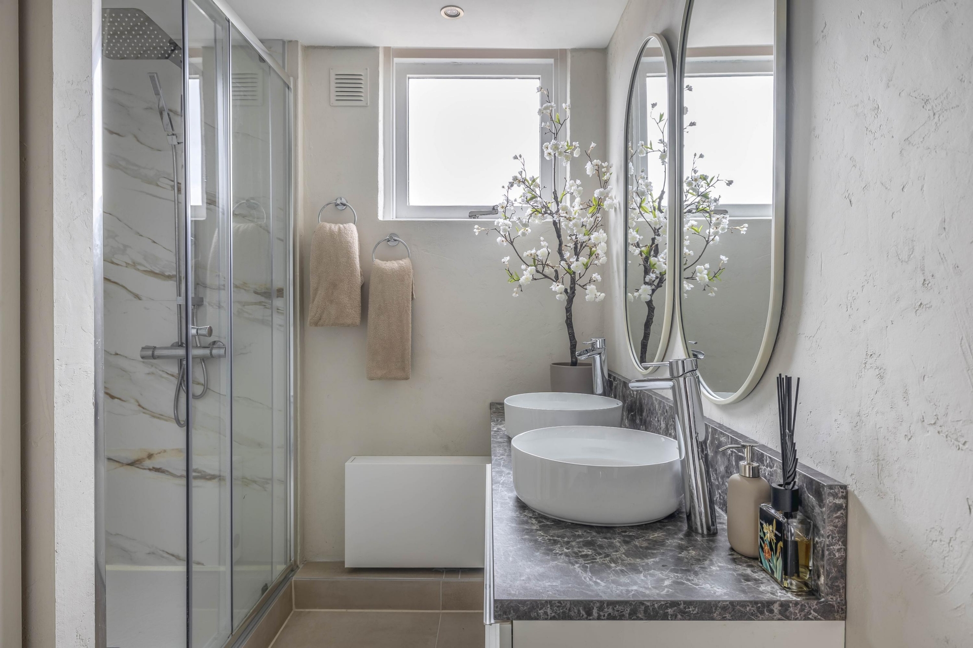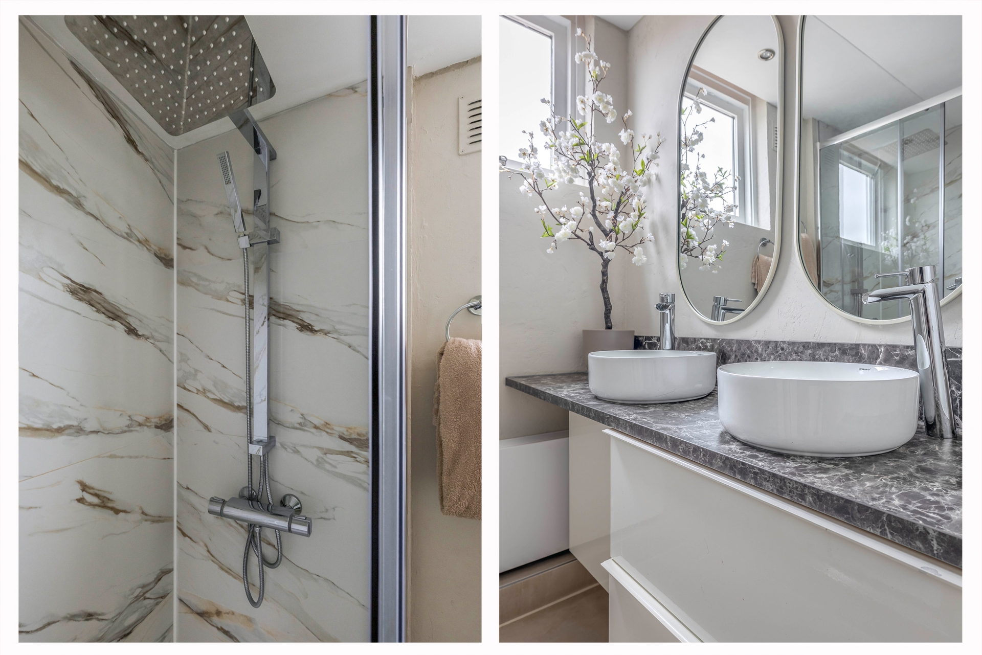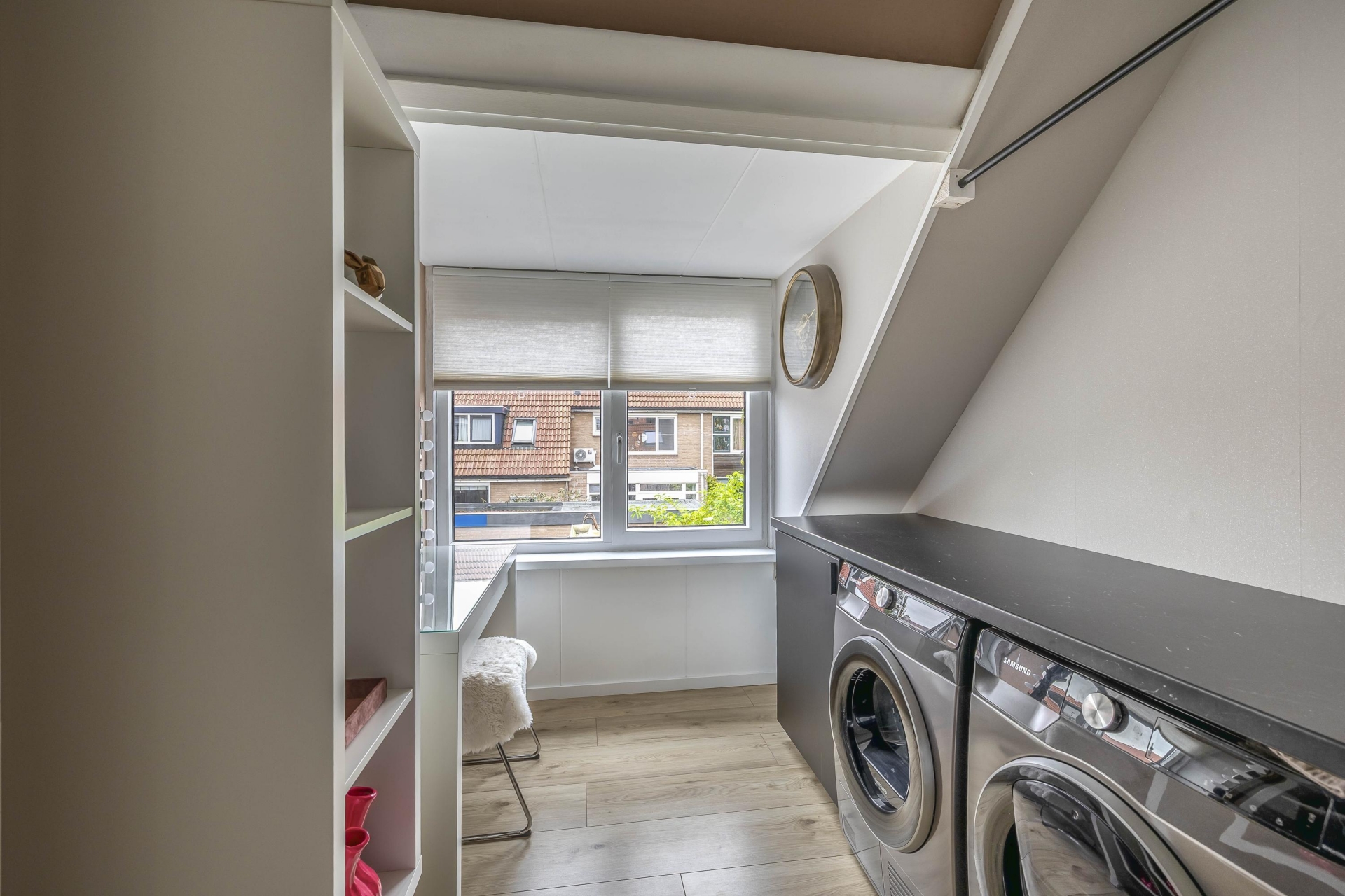 Overloop met toegang tot de 1e slaapkamer aan de achterzijde van de woning. De 1e slaapkamer is voorzien van een dakkapel en vaste kasten; de 2e slaapkamer aan de achterzijde is op dit moment in gebruik als wasruimte. De nette badkamer is uitgevoerd met een douche, dubbele wastafel met badkamermeubel en 2e toilet; slaapkamer 3 ligt aan de voorzijde van de woning. Bergkast met opstelplaats voor de CV combiketel.