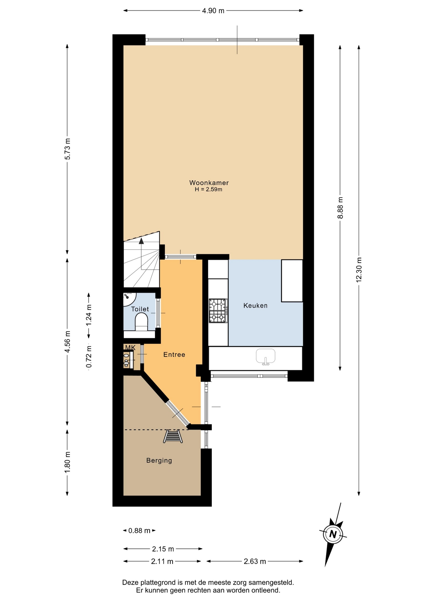 “Deze informatie is door ons met de nodige zorgvuldigheid samengesteld. Onzerzijds wordt echter geen enkele aansprakelijkheid aanvaard voor enige onvolledigheid, onjuistheid of anderszins, dan wel de gevolgen daarvan. Alle opgegeven maten en oppervlakten zijn indicatief.”