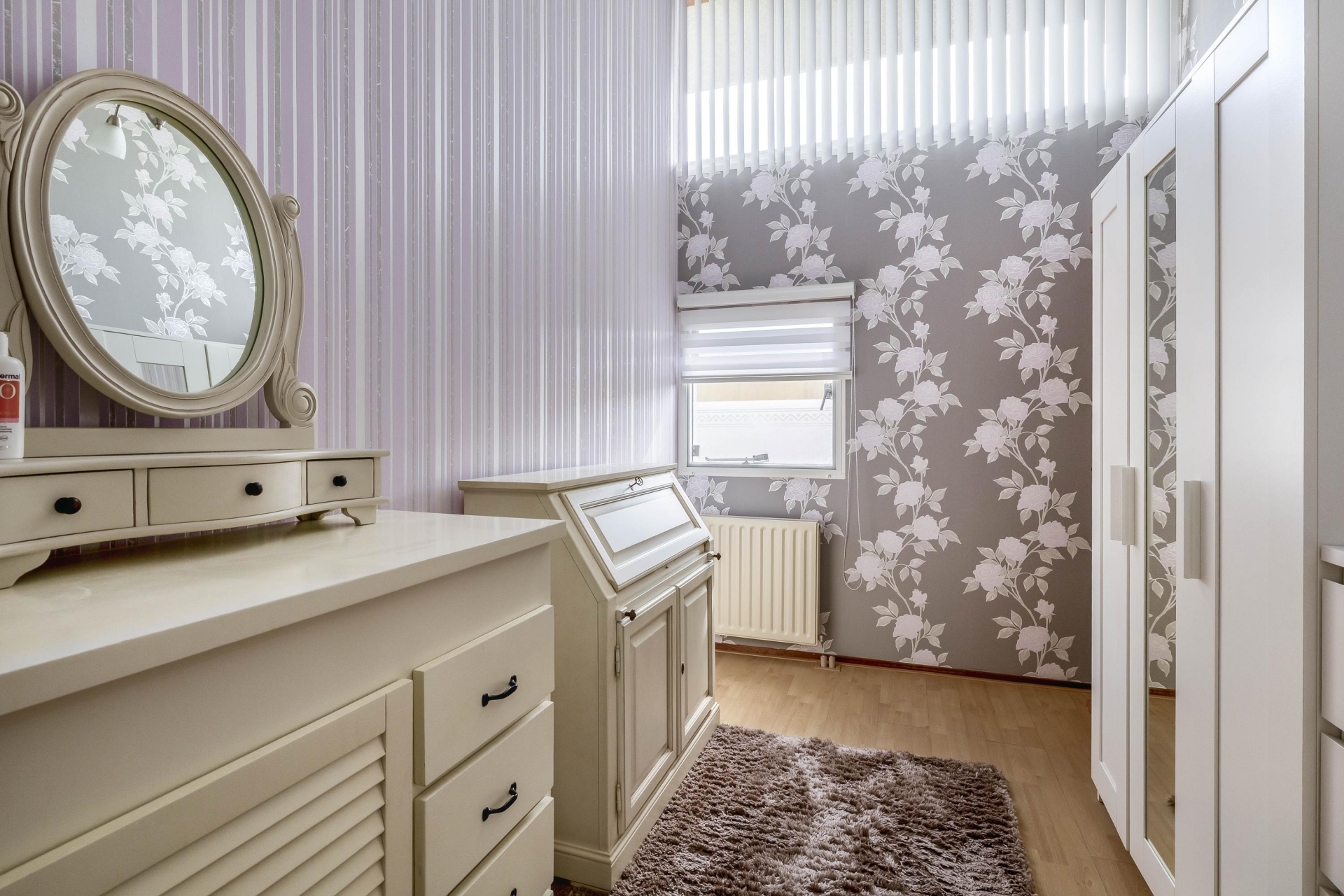 De ruime master bedroom ligt aan de voorzijde en strekt zich uit over de volledige breedte van de woning, met een oppervlakte van circa 12 m².