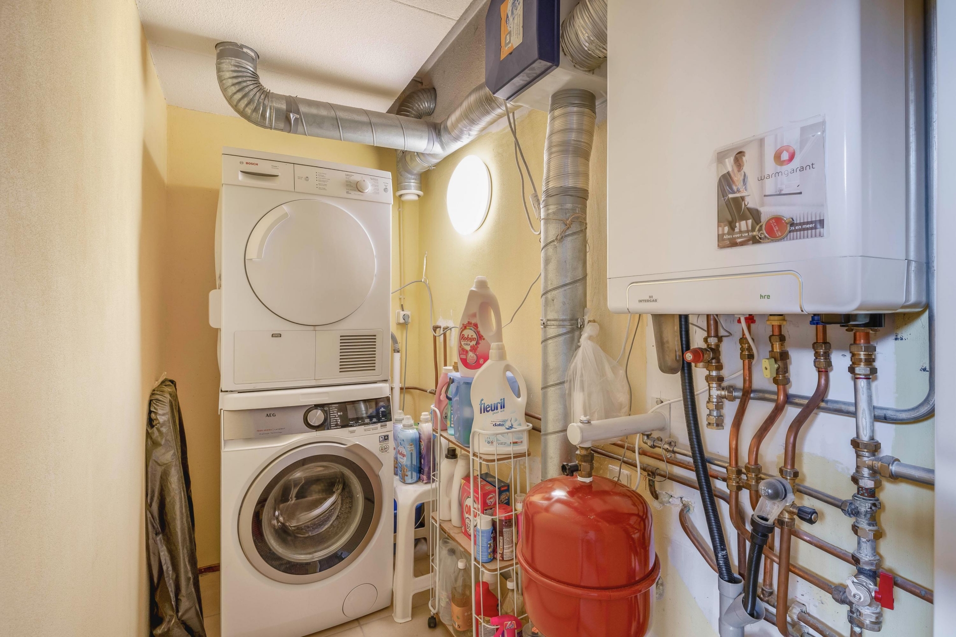 Daarnaast is er een praktische berging met de opstelling van de cv-ketel (2020) en aansluitingen voor de wasmachine en droger.
