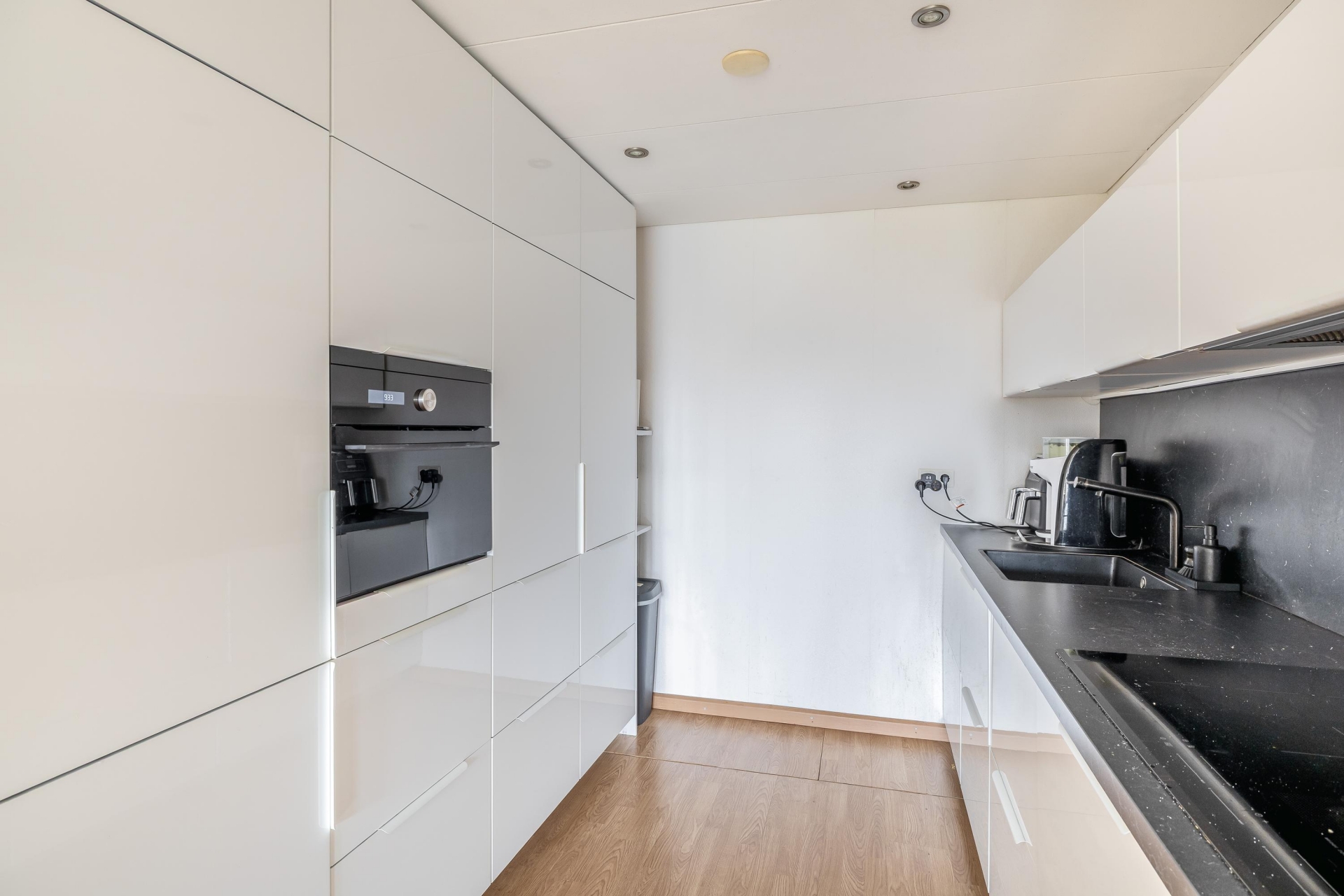 Aan de woonkamer grenst de keuken. Deze is vernieuwd in 2023 en modern uitgevoerd met strakke fronten en een eigentijdse uitstraling. Alles wat je nodig hebt is aanwezig en het geheel oogt fris en verzorgd. Ideaal voor wie graag kookt, maar ook voor wie gewoon een fijne, nette ruimte wil zonder werk.