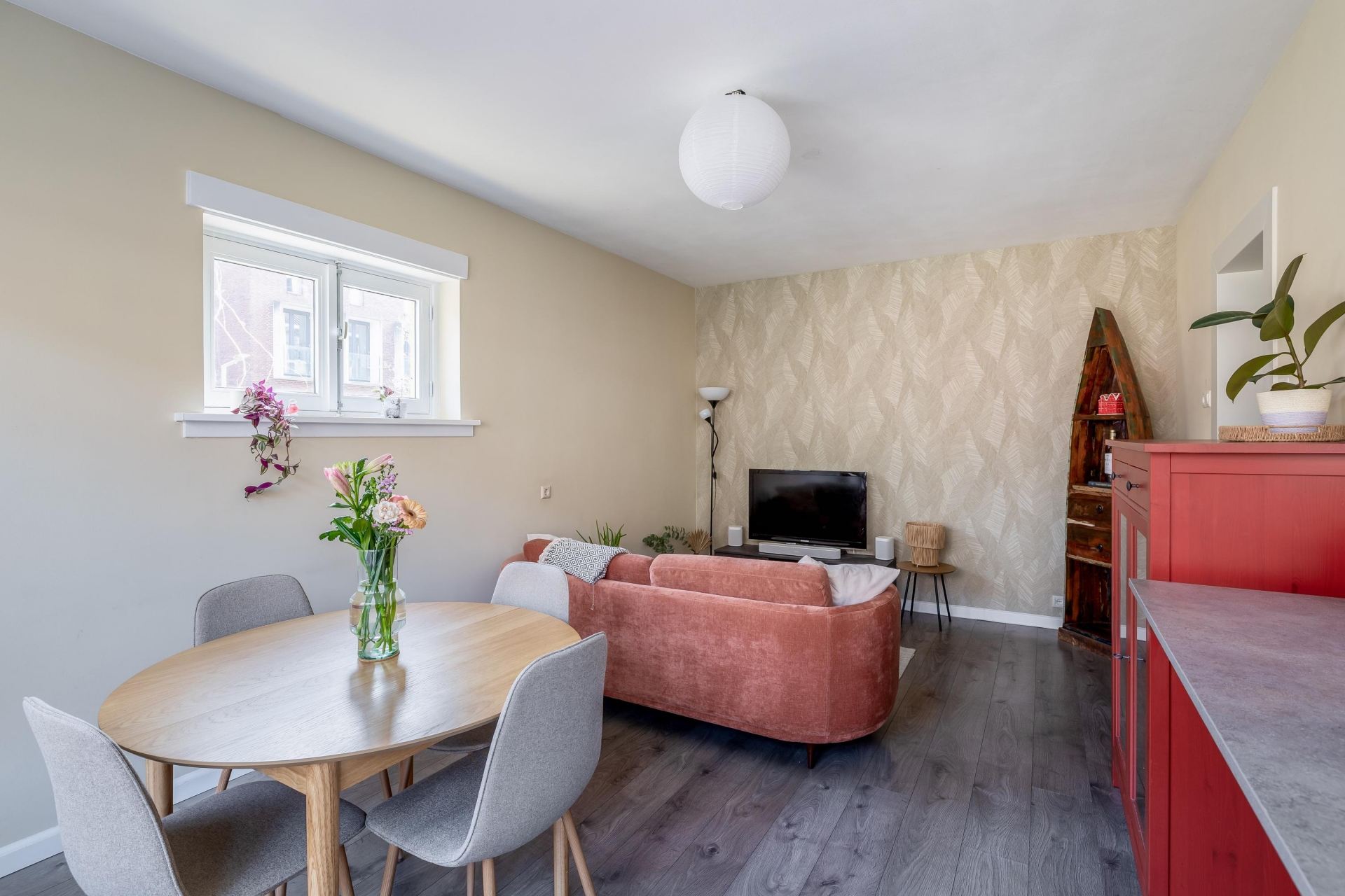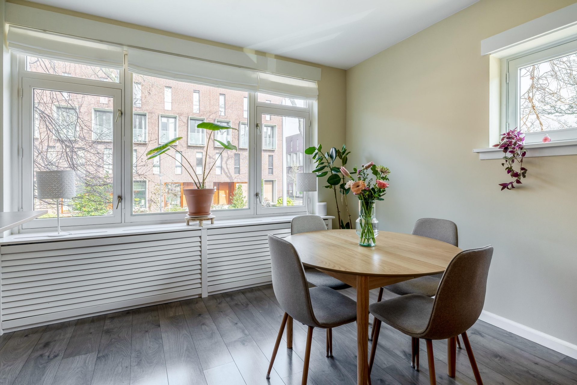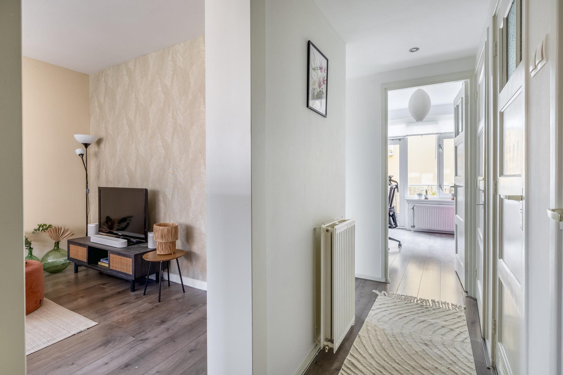 Bij binnenkomst merk je direct dat het appartement een prettige en lichte sfeer heeft. De woonkamer vormt het hart van het huis en biedt voldoende ruimte voor zowel een gezellige zithoek als een eethoek. Dankzij de ramen komt er veel daglicht naar binnen, wat zorgt voor een fijne en open uitstraling.