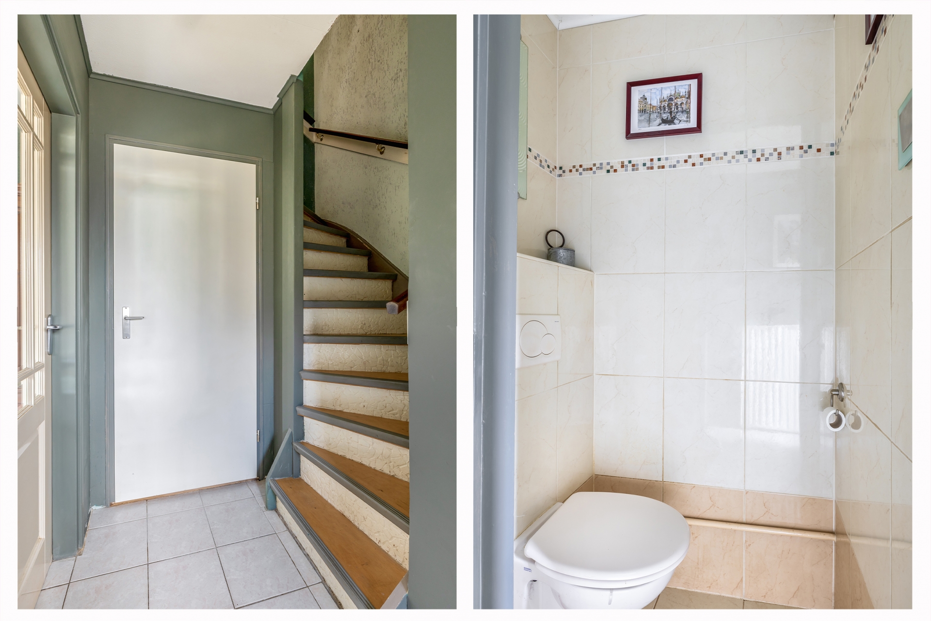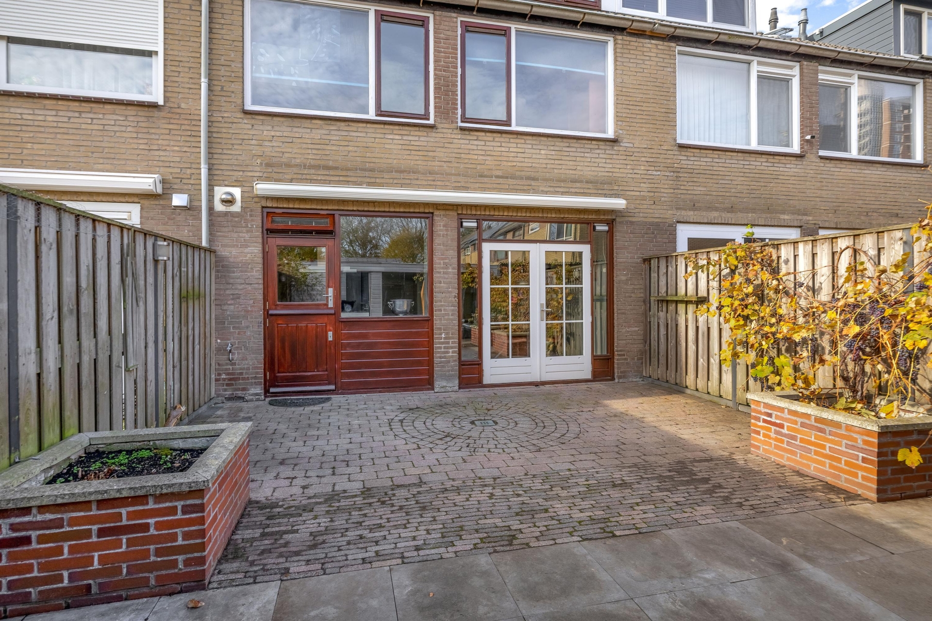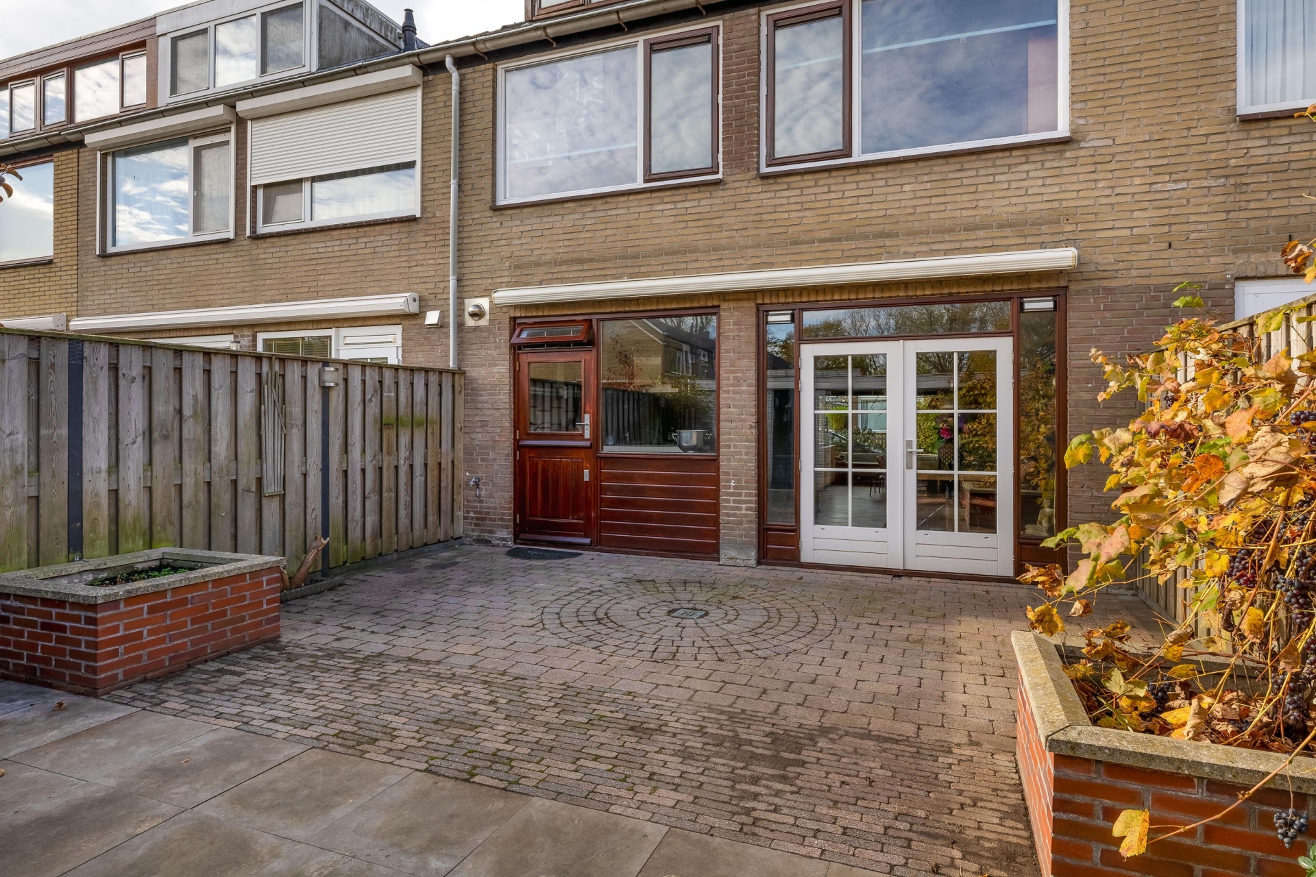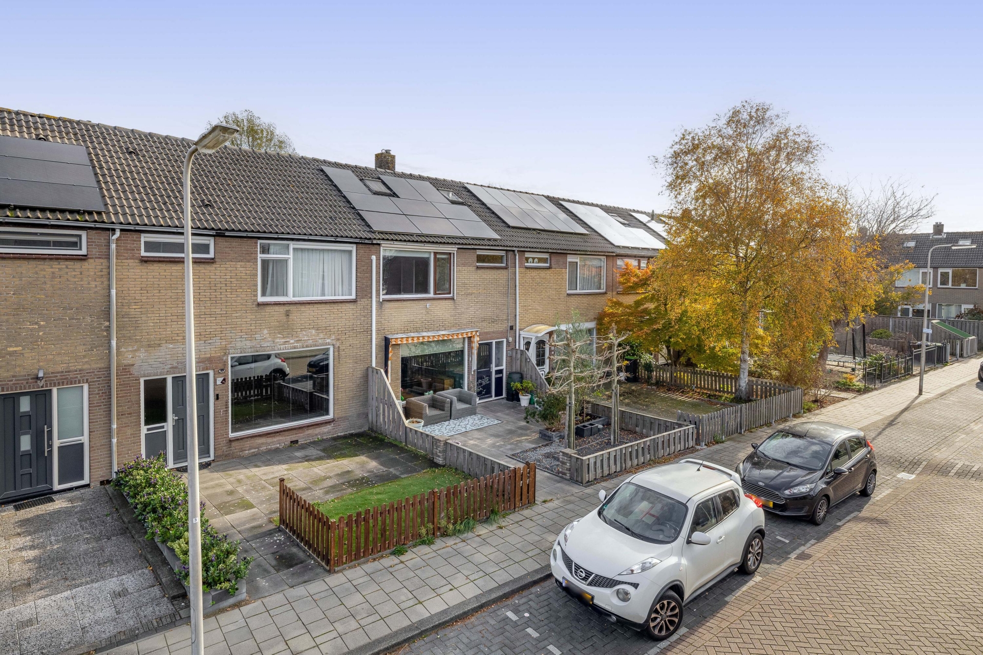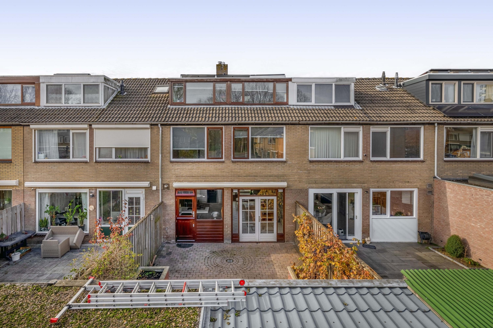 Een van de grote pluspunten van deze woning is de diepe achtertuin op het oosten. Hier geniet je in de ochtend en vroege middag van de zon, maar dankzij de diepte is er ook later op de dag nog genoeg lichtinval. Achterin de tuin vind je een praktische stenen berging, bekleed met rabatdelen en een overkapping met gezellige zithoek, perfect voor lange zomeravonden of als speelruimte voor kinderen. De tuin is grotendeels bestraat en voorzien van groenblijvende borders en klimplanten, wat zorgt voor sfeer en onderhoudsgemak. Ook de voortuin is verzorgd aangelegd en biedt ruimte voor bijvoorbeeld een zithoek.