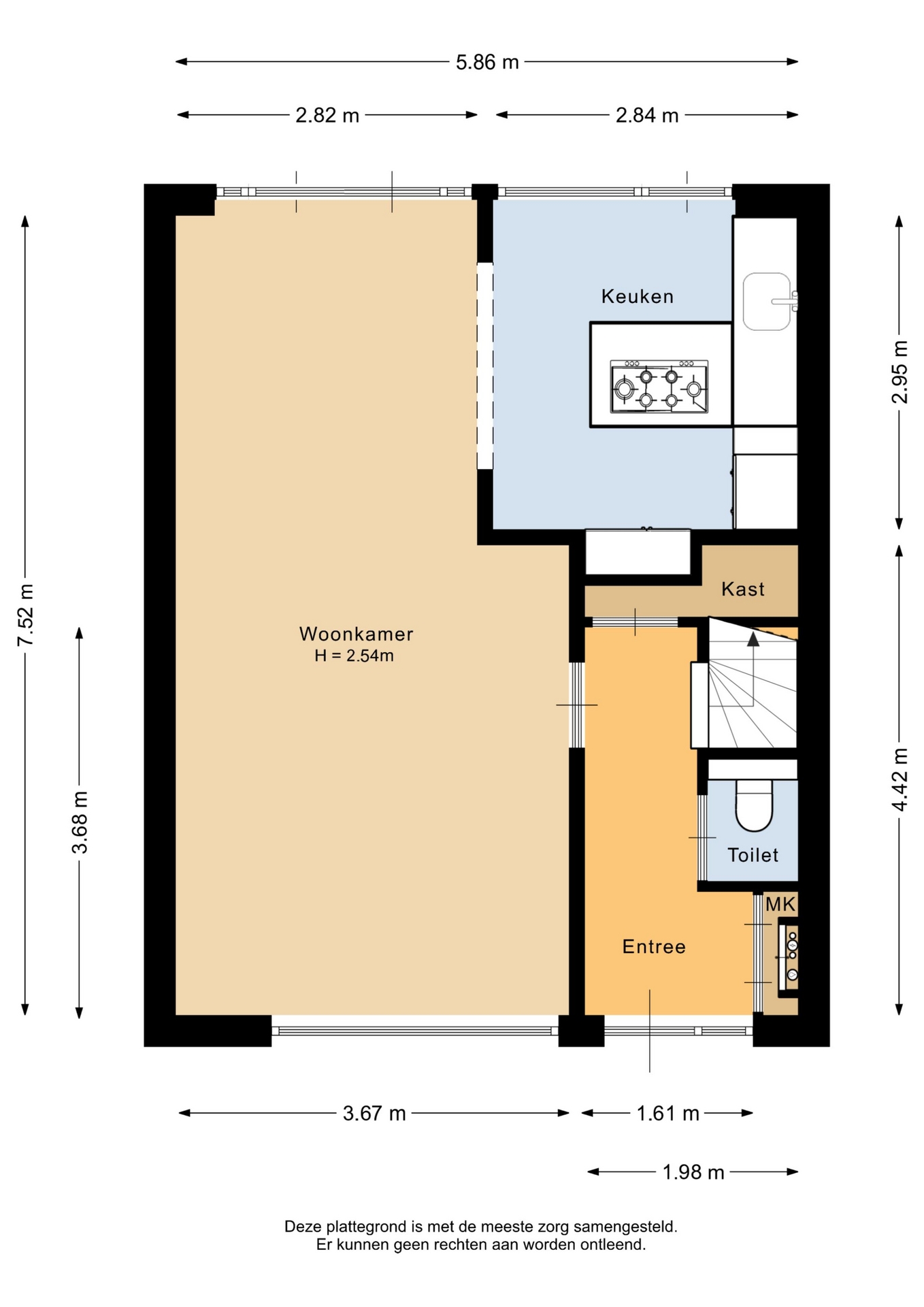 “Deze informatie is door ons met de nodige zorgvuldigheid samengesteld. Onzerzijds wordt echter geen enkele aansprakelijkheid aanvaard voor enige onvolledigheid, onjuistheid of anderszins, dan wel de gevolgen daarvan. Alle opgegeven maten en oppervlakten zijn indicatief.”
