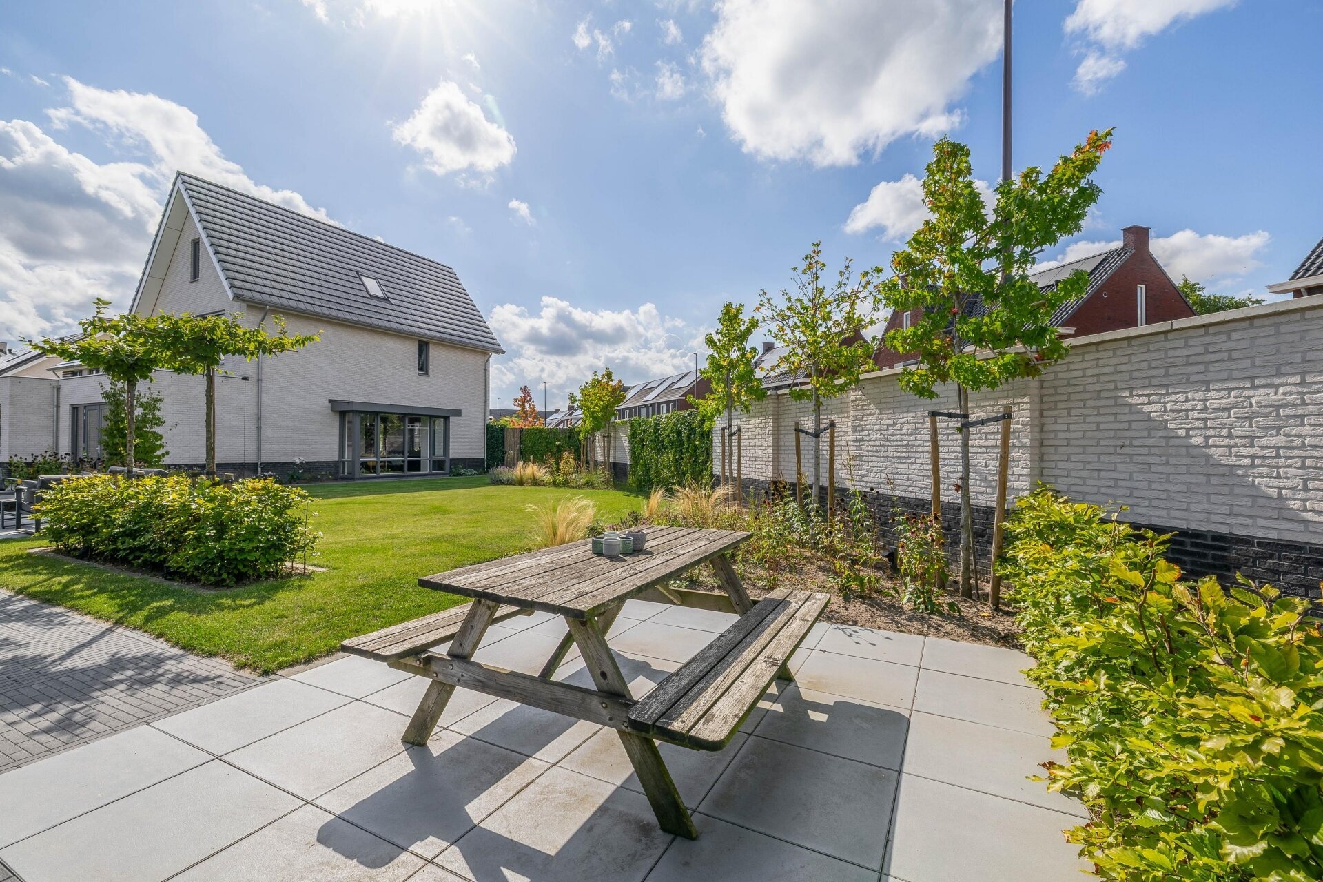 De tuin rondom het huis is een echte troef. Door de ligging op het noordoosten geniet je de gehele dag van de zon.