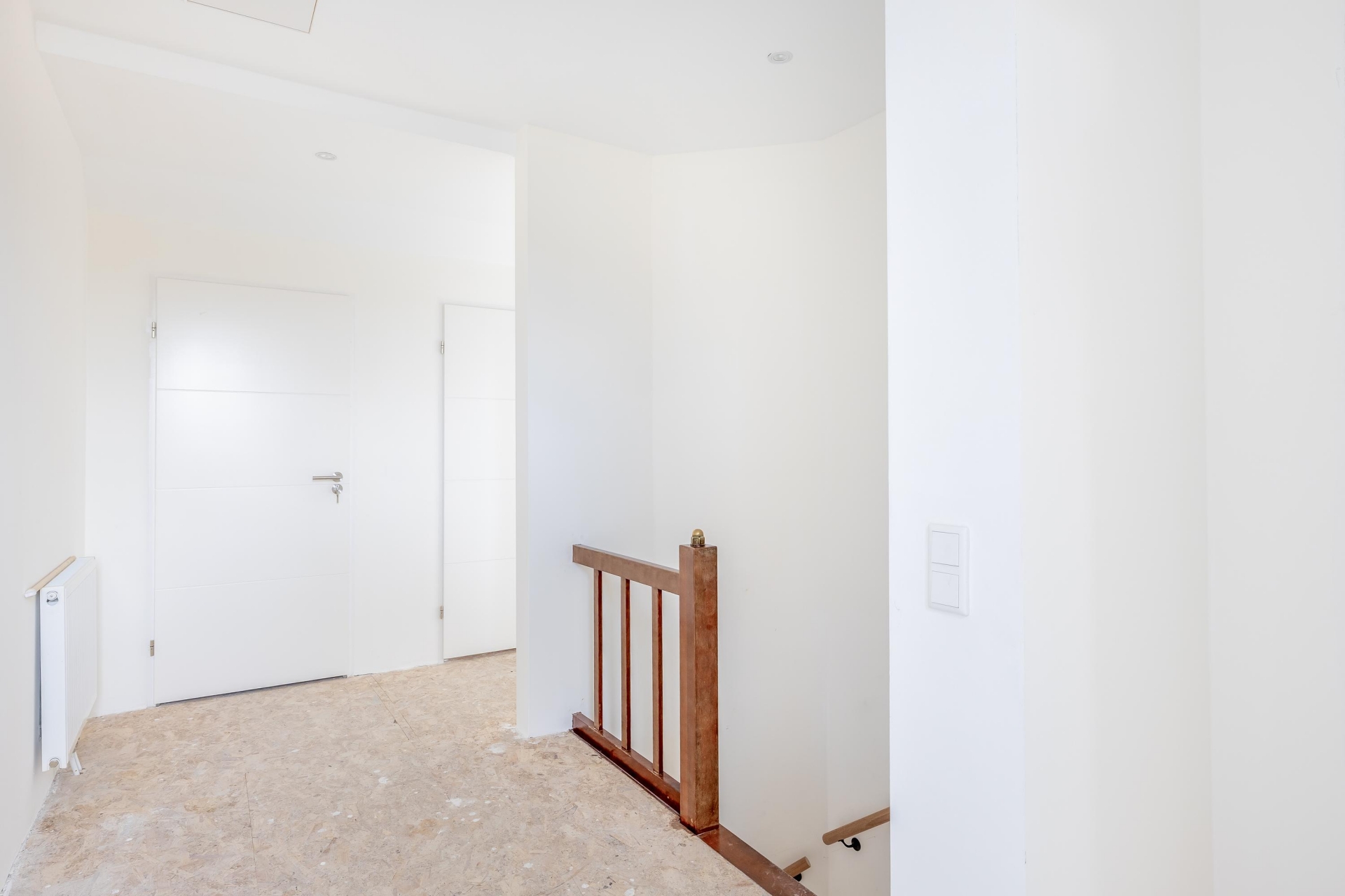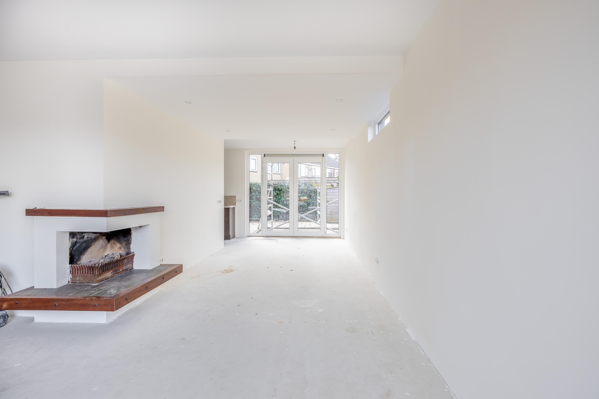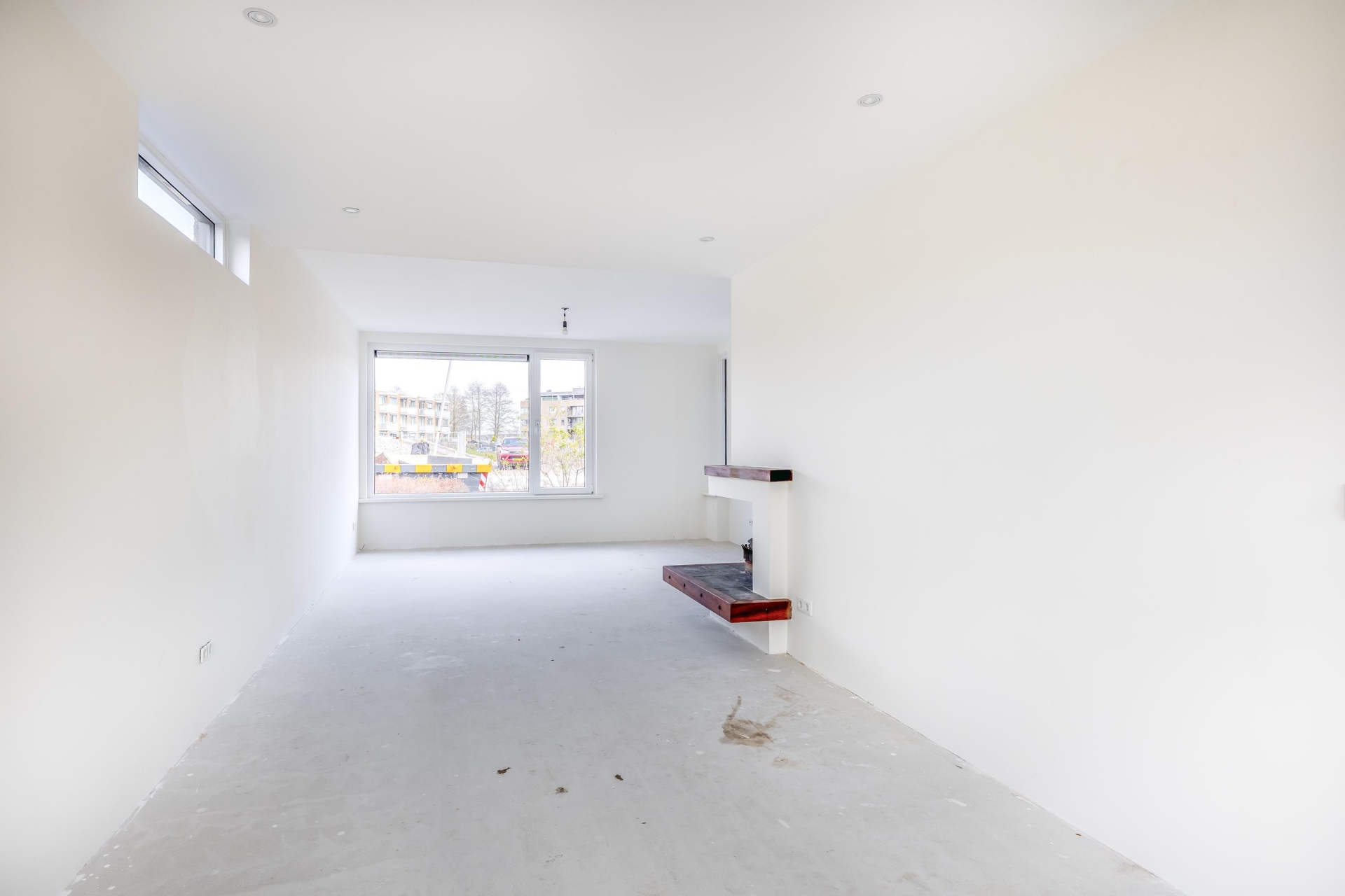 De woonkamer is ruim opgezet en dankzij de grote raampartijen heerlijk licht. De strakke afwerking met gladde wanden en plafonds zorgt voor een rustige basis, waardoor je het helemaal naar eigen smaak kunt inrichten. De open haard vormt een subtiel, maar sfeervol middelpunt in de ruimte. Vanuit de woonkamer heb je een fijne verbinding met de rest van het huis, wat zorgt voor een prettig leefgevoel.