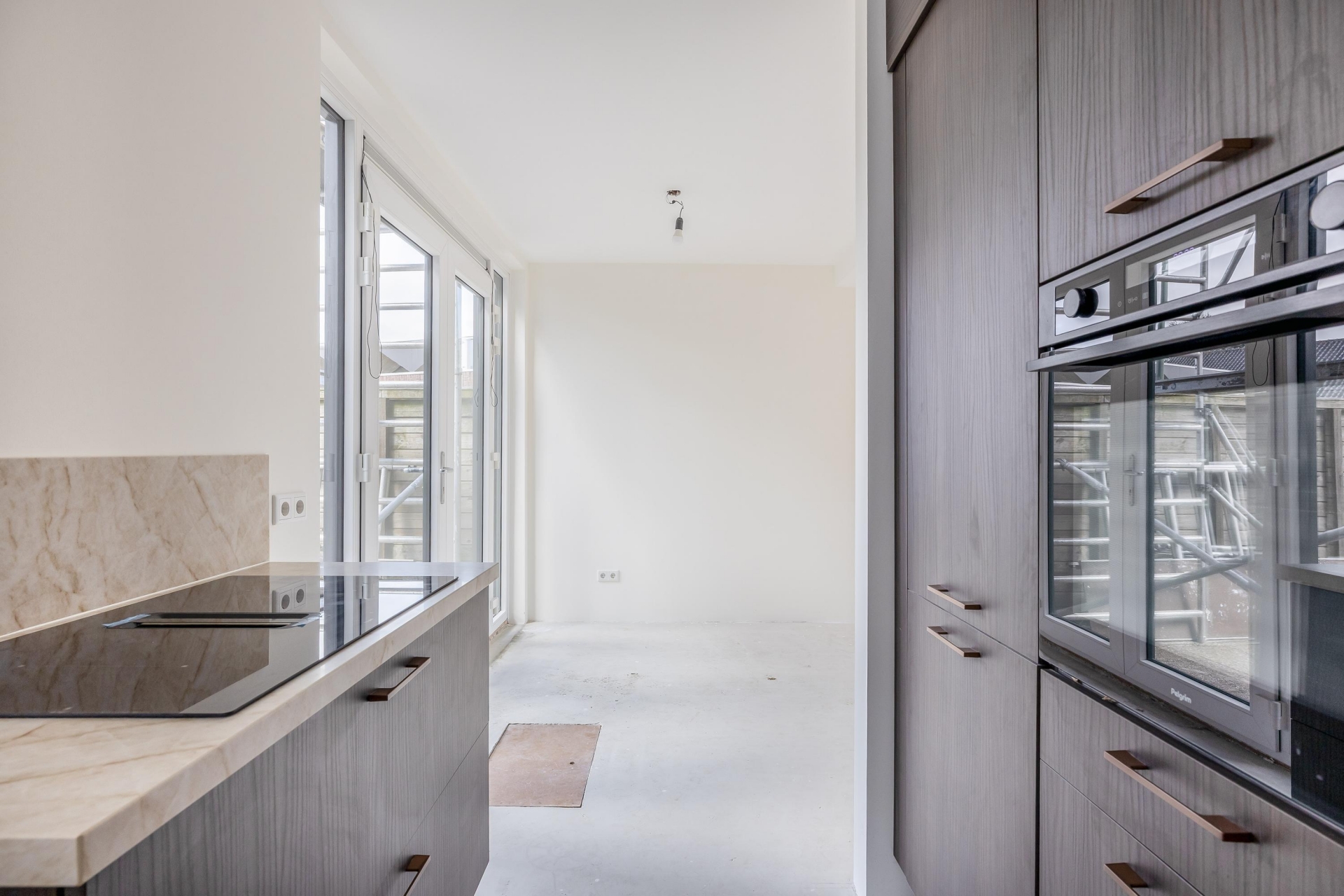 De keuken is van alle gemakken voorzien, met onder andere een inductiekookplaat met geïntegreerde afzuiging, een combi-oven en veel kastruimte. De opstelling biedt volop werkruimte en is praktisch ingericht, waardoor koken hier echt leuk wordt. Vanuit de keuken heb je bovendien een fijne connectie met de woonruimte, ideaal voor gezellige avonden met vrienden of familie.