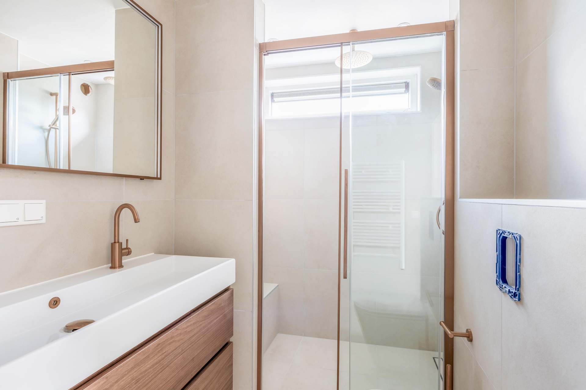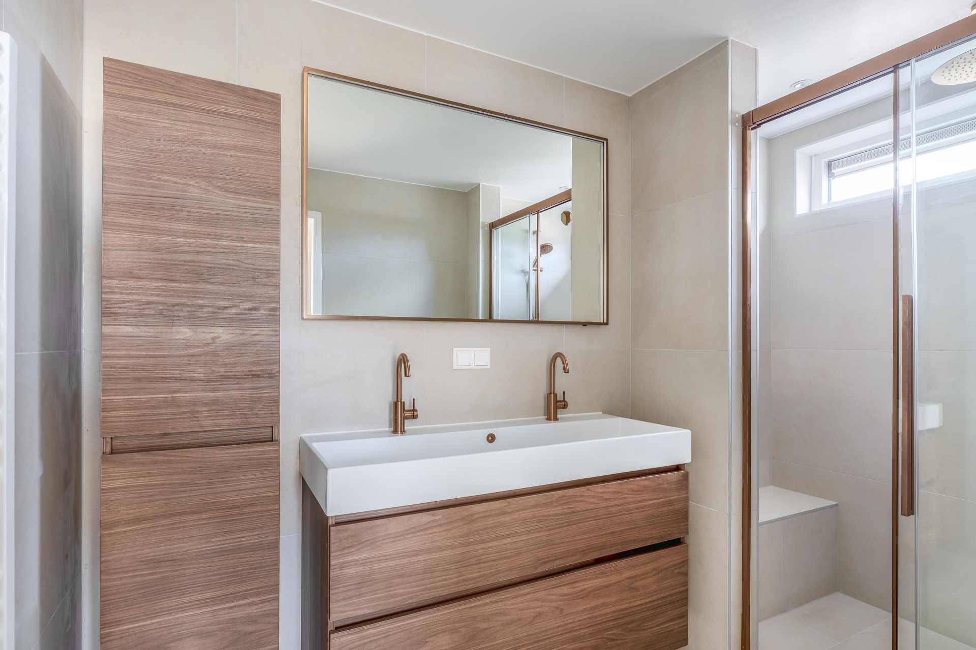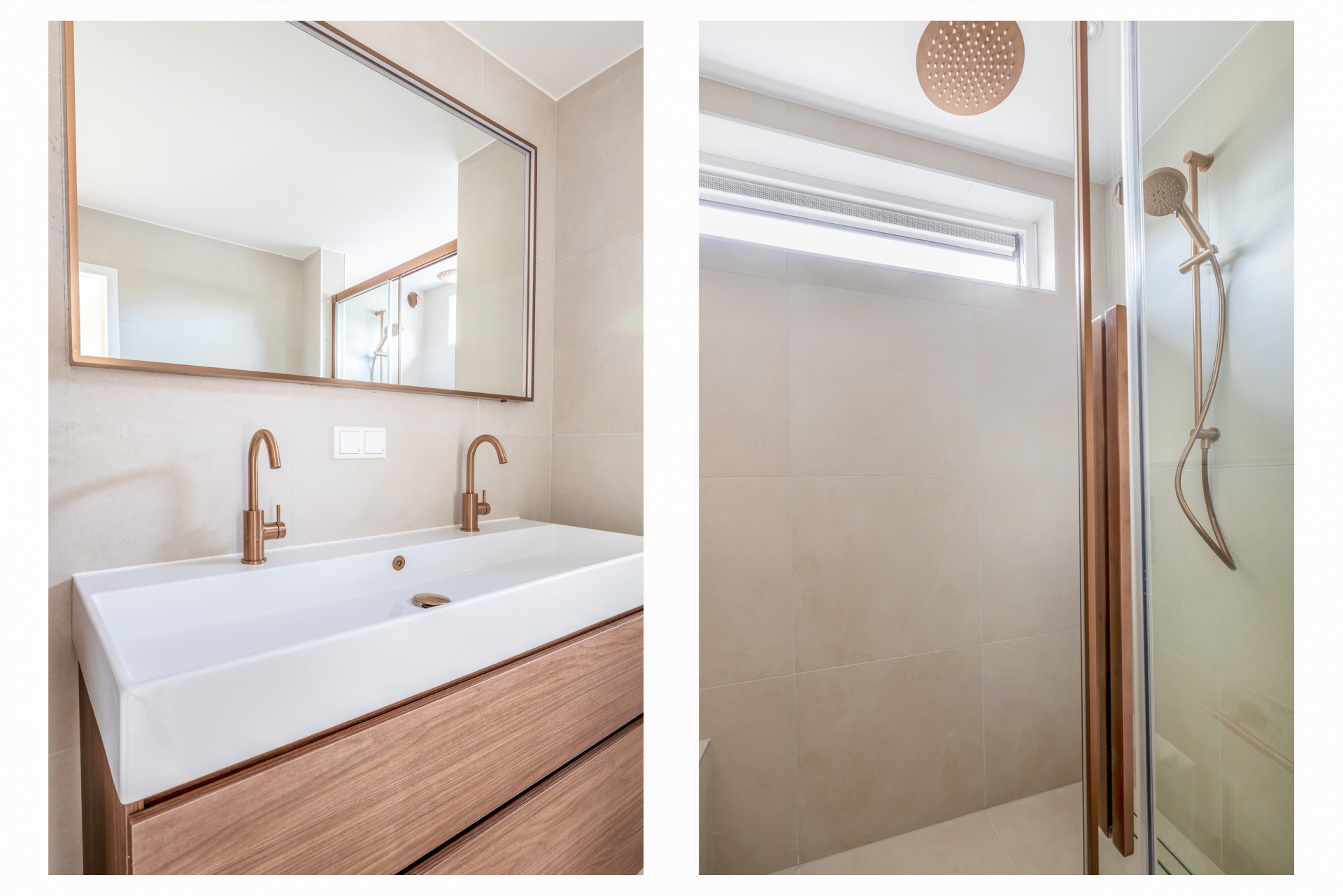 Dit huis beschikt over maar liefst twee badkamers, wat het ideaal maakt voor gezinnen of mensen die graag extra comfort willen. Beide badkamers zijn modern uitgevoerd en sluiten qua stijl naadloos aan op de rest van het huis, met dezelfde warme materialen en strakke afwerking.