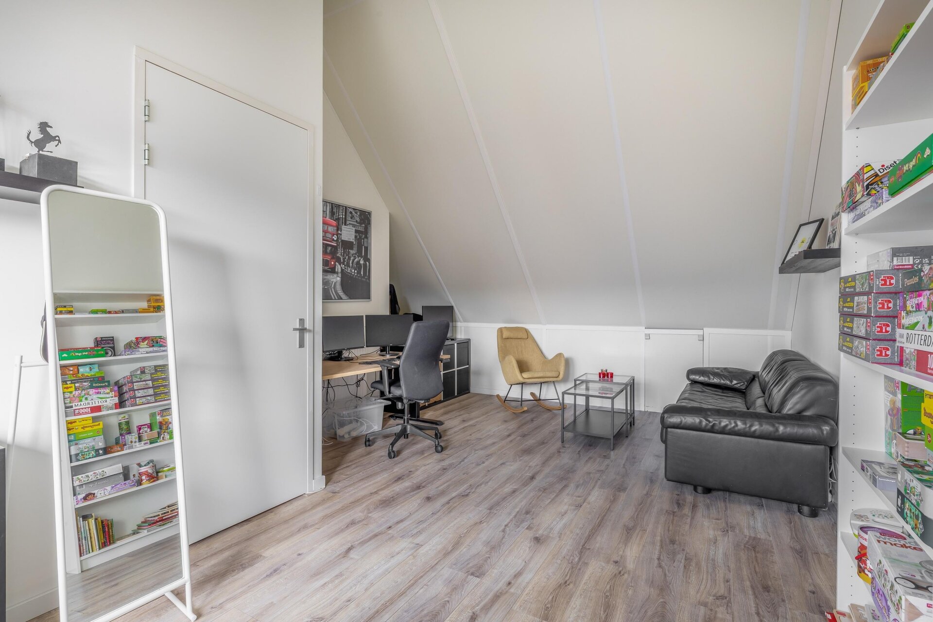 De tweede verdieping verrast met een enorme zolderkamer met dakkapel. Ook deze ruimte is groot genoeg om op te splitsen in twee kamers. Daarnaast is er een aparte wasruimte en veel bergruimte achter de knieschotten.