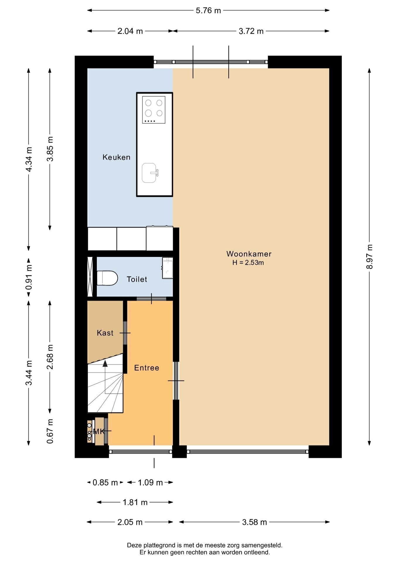 Deze informatie is door ons met de nodige zorgvuldigheid samengesteld. Onzerzijds wordt echter geen enkele aansprakelijkheid aanvaard voor enige onvolledigheid, onjuistheid of anderszins, dan wel de gevolgen daarvan. Alle opgegeven maten en oppervlakten zijn indicatief. Van toepassing zijn de NVM voorwaarden.