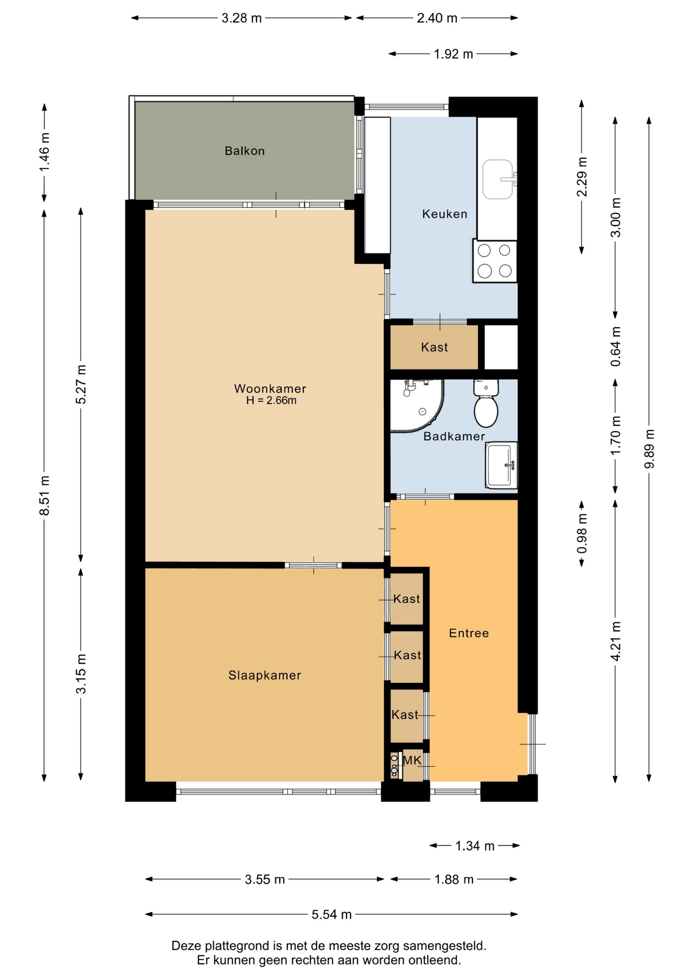 “Deze informatie is door ons met de nodige zorgvuldigheid samengesteld. Onzerzijds wordt echter geen enkele aansprakelijkheid aanvaard voor enige onvolledigheid, onjuistheid of anderszins, dan wel de gevolgen daarvan. Alle opgegeven maten en oppervlakten zijn indicatief.”