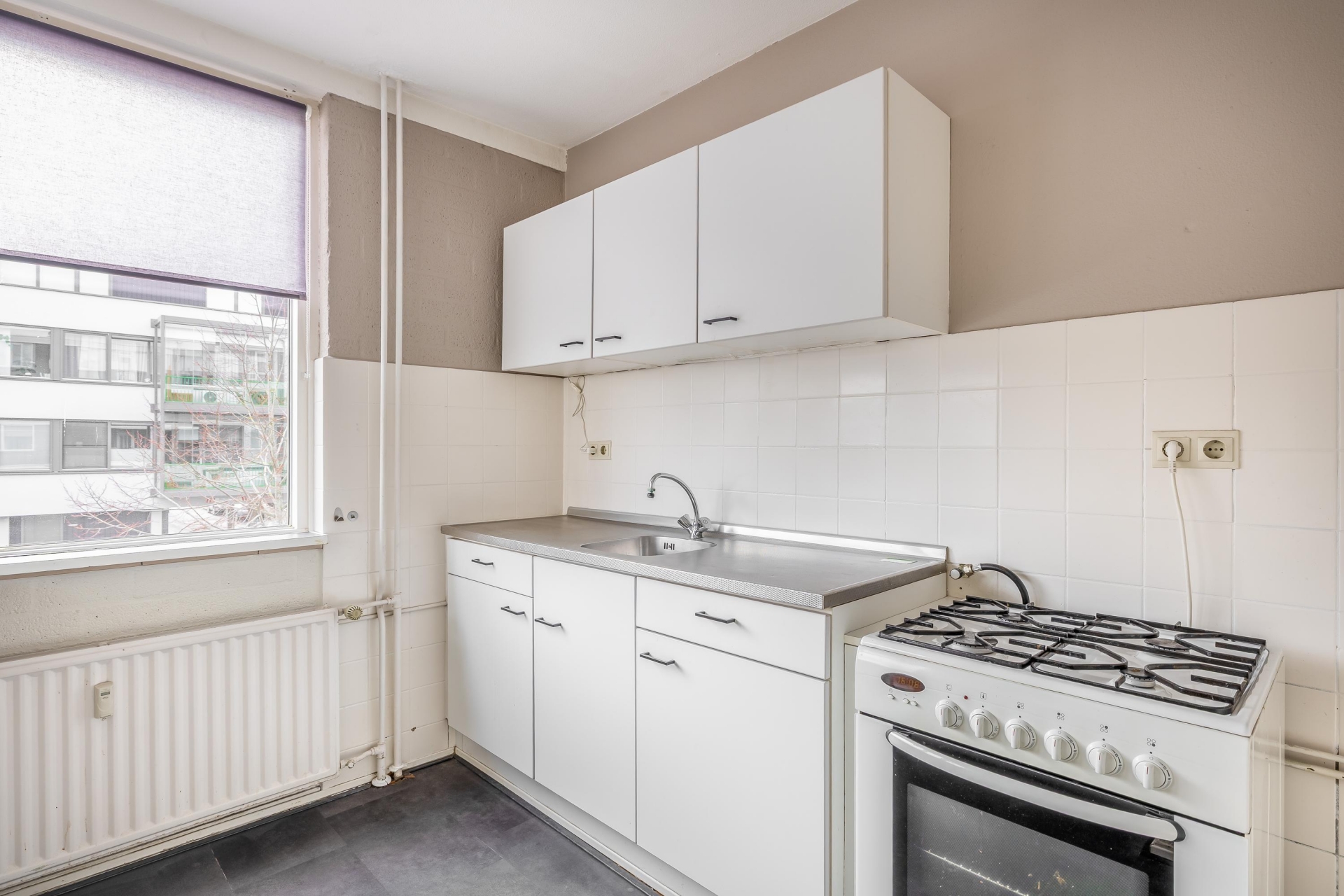 Dit appartement is perfect voor starters die op zoek zijn naar een fijne, comfortabele woonplek op een heel centrale locatie, dichtbij het centrum en allerlei voorzieningen! De lichte woonkamer heeft een prettige sfeer en biedt voldoende ruimte. Vanuit de woonkamer stap je zo het zonnige balkon op, dat ideaal op het zuiden ligt. De keuken bevindt zich naast de woonkamer, een beetje afgescheiden maar toch fijn contact met de woonkamer. Hier is veel lichtinval en er is een handige bergkast aanwezig met daarin de opstelplaats van de boiler. De slaapkamer is ruim en voorzien van vaste kasten. De badkamer is netjes betegeld en functioneel ingedeeld met een douchecabine, wastafel met meubel en een toilet. Op de begane grond is een eigen berging aanwezig, handig voor het stallen van fietsen of het opbergen van extra spullen.