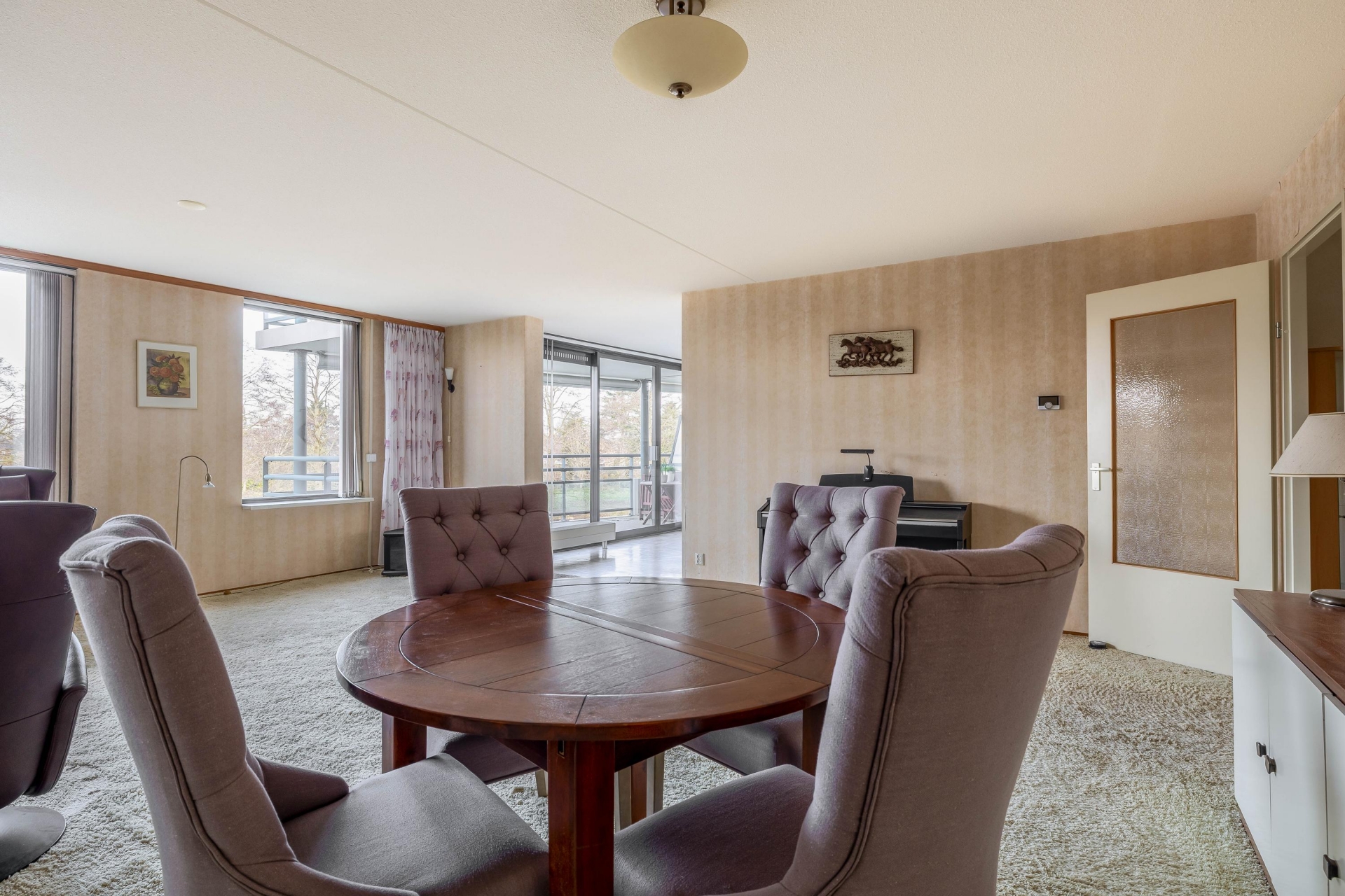 Bij binnenkomst ervaar je direct de ruimte. De woonkamer is royaal opgezet en dankzij de grote raampartijen bijzonder licht. Vanuit de zithoek kijk je vrij uit over het water, waar eenden rustig voorbij zwemmen en het groen zorgt voor een ontspannen sfeer.
