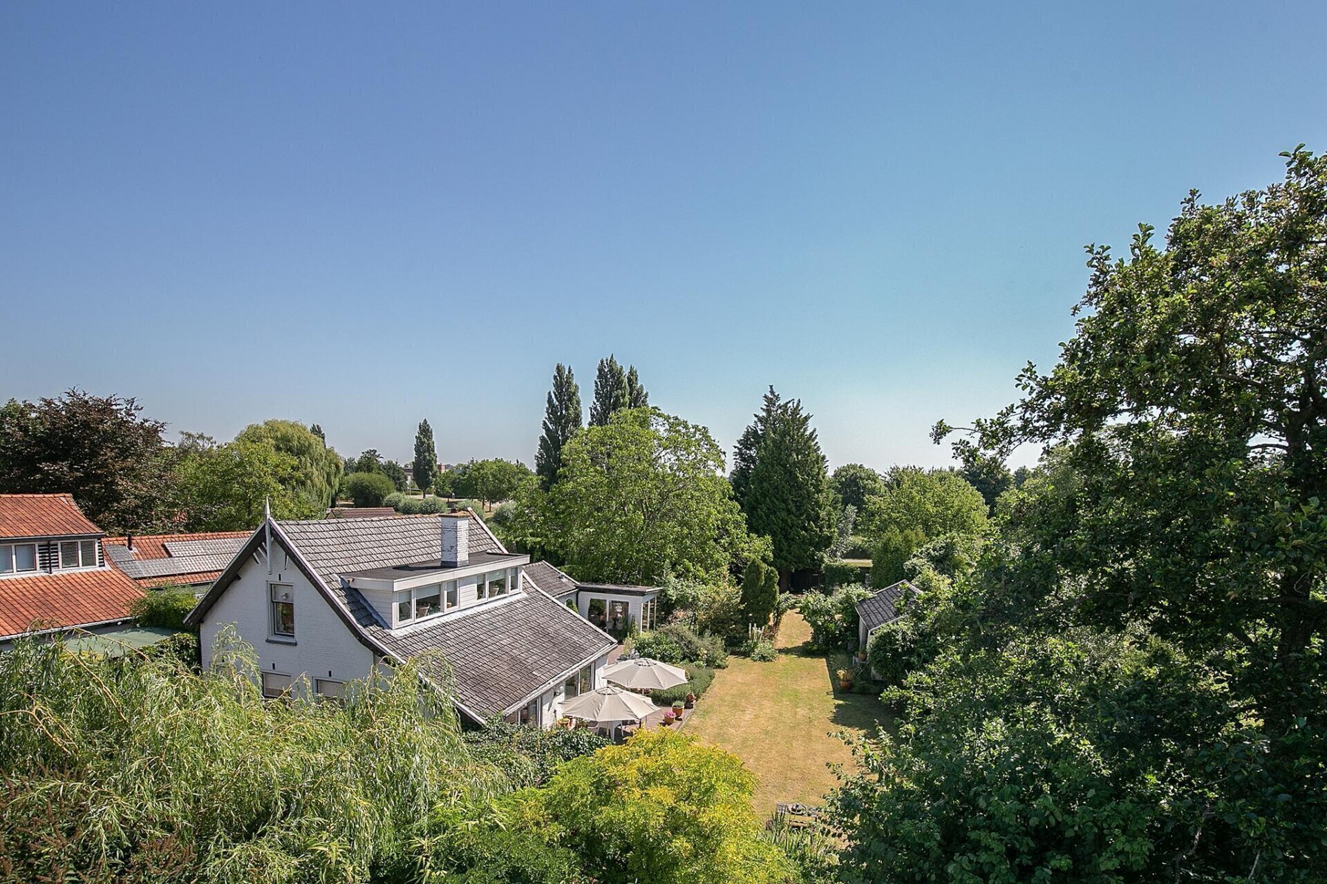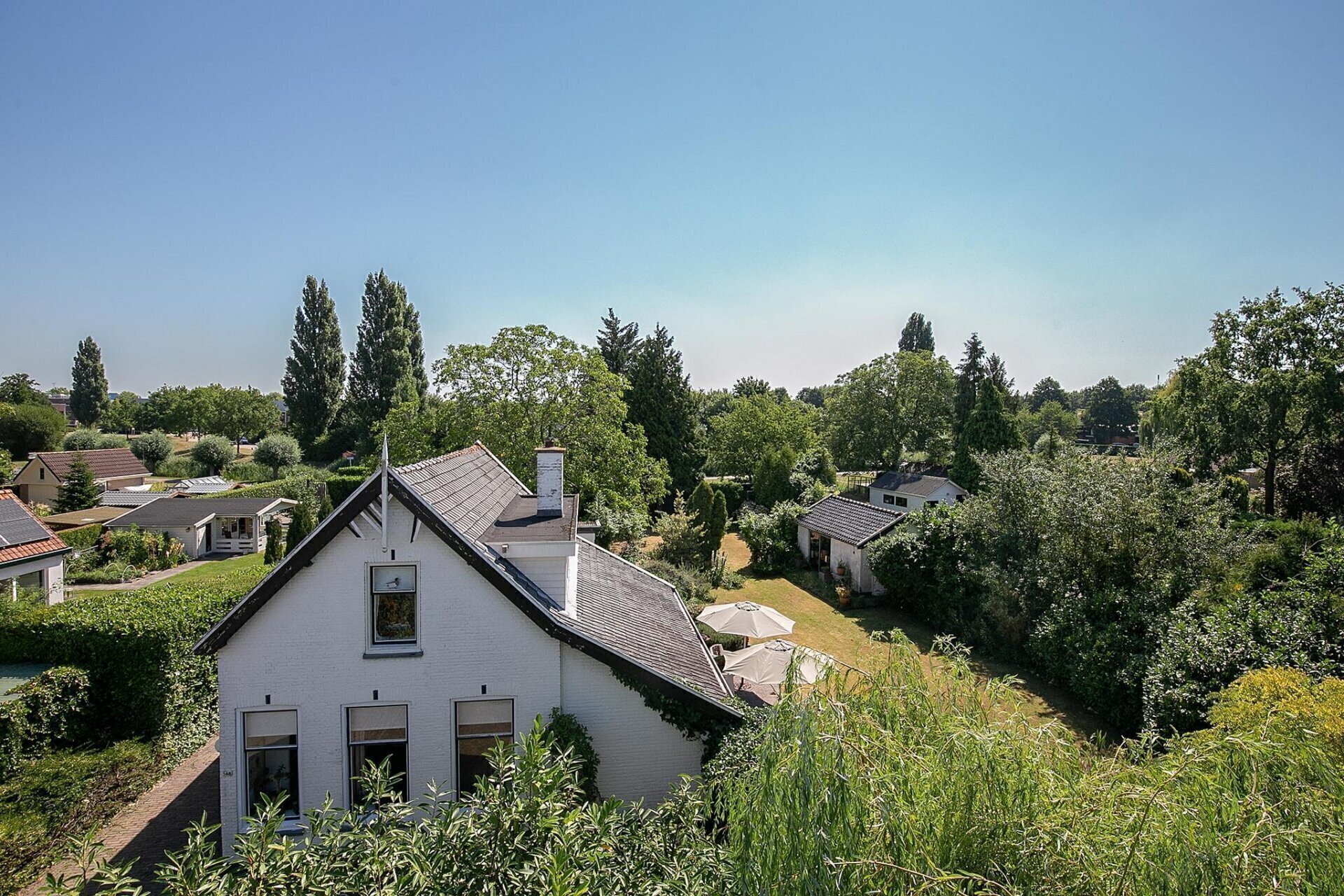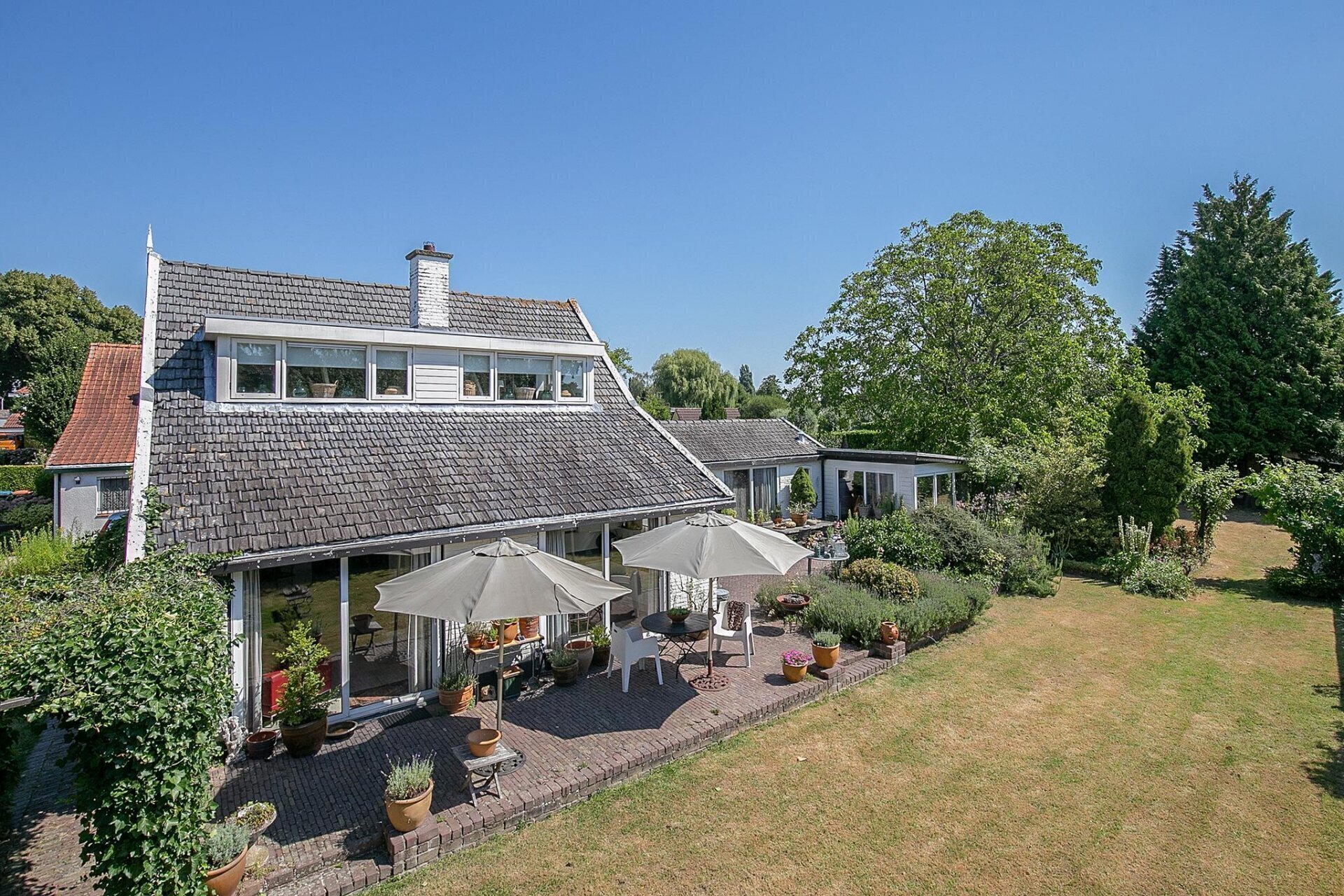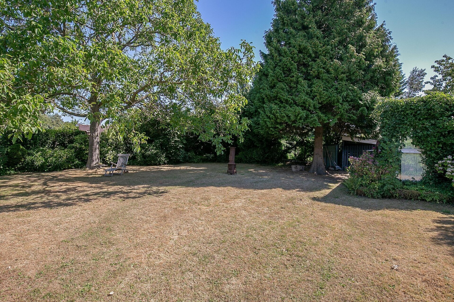 Een grote tuin zoals deze, biedt op ieder moment van de dag zon. De tuin is netjes onderhouden en er zijn diverse zitjes gecreëerd, zodat u gedurende de dag altijd een plekje in de zon of schaduw kunt opzoeken. Mocht u woon-werken willen combineren, de 2 grote schuren die gesitueerd zijn op de achterzijde van het perceel zijn zeer geschikt als werkplek. De uitrit aan de achterzijde van het perceel geeft u de mogelijkheid werk en privé toch gescheiden te houden.